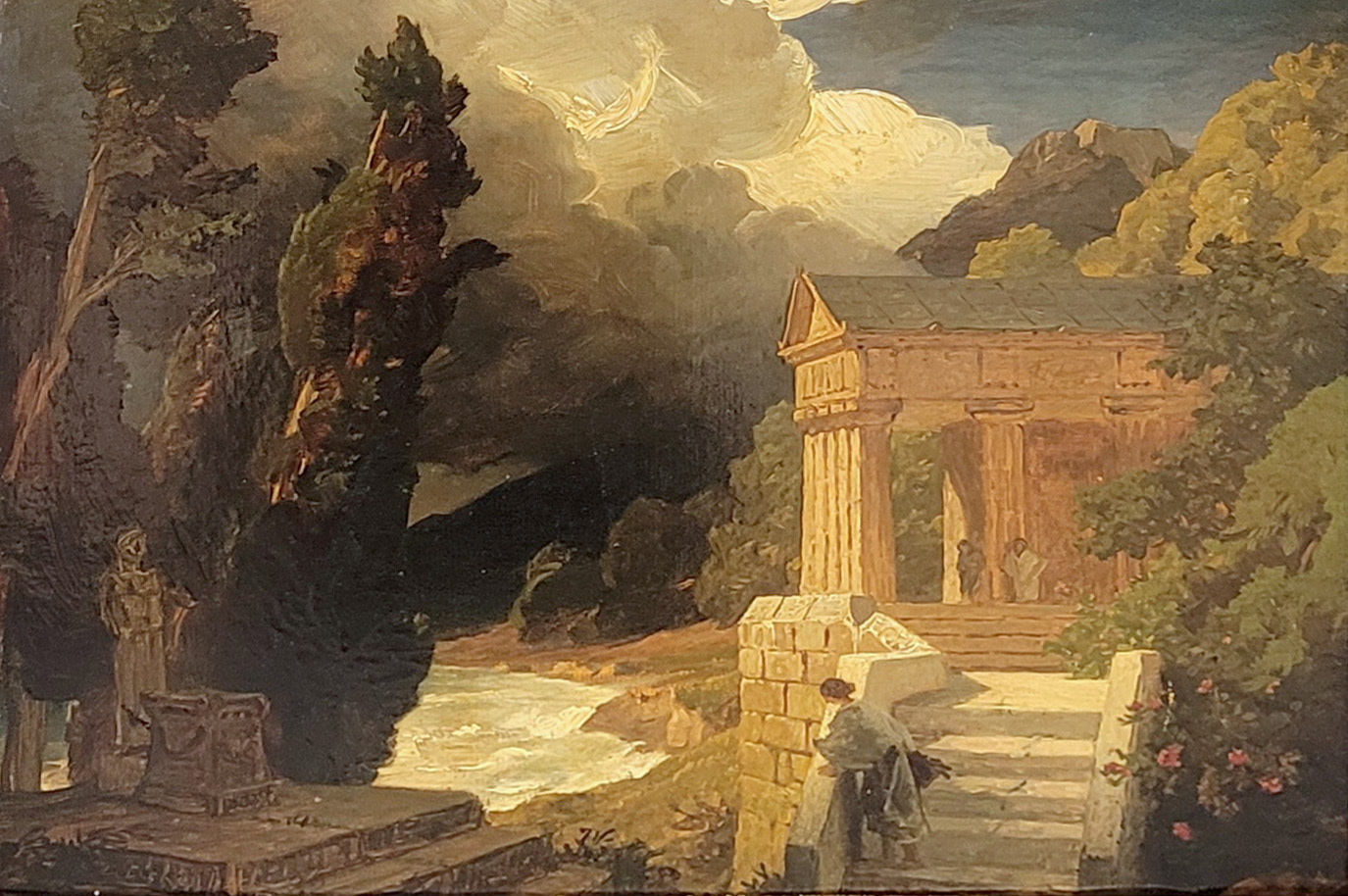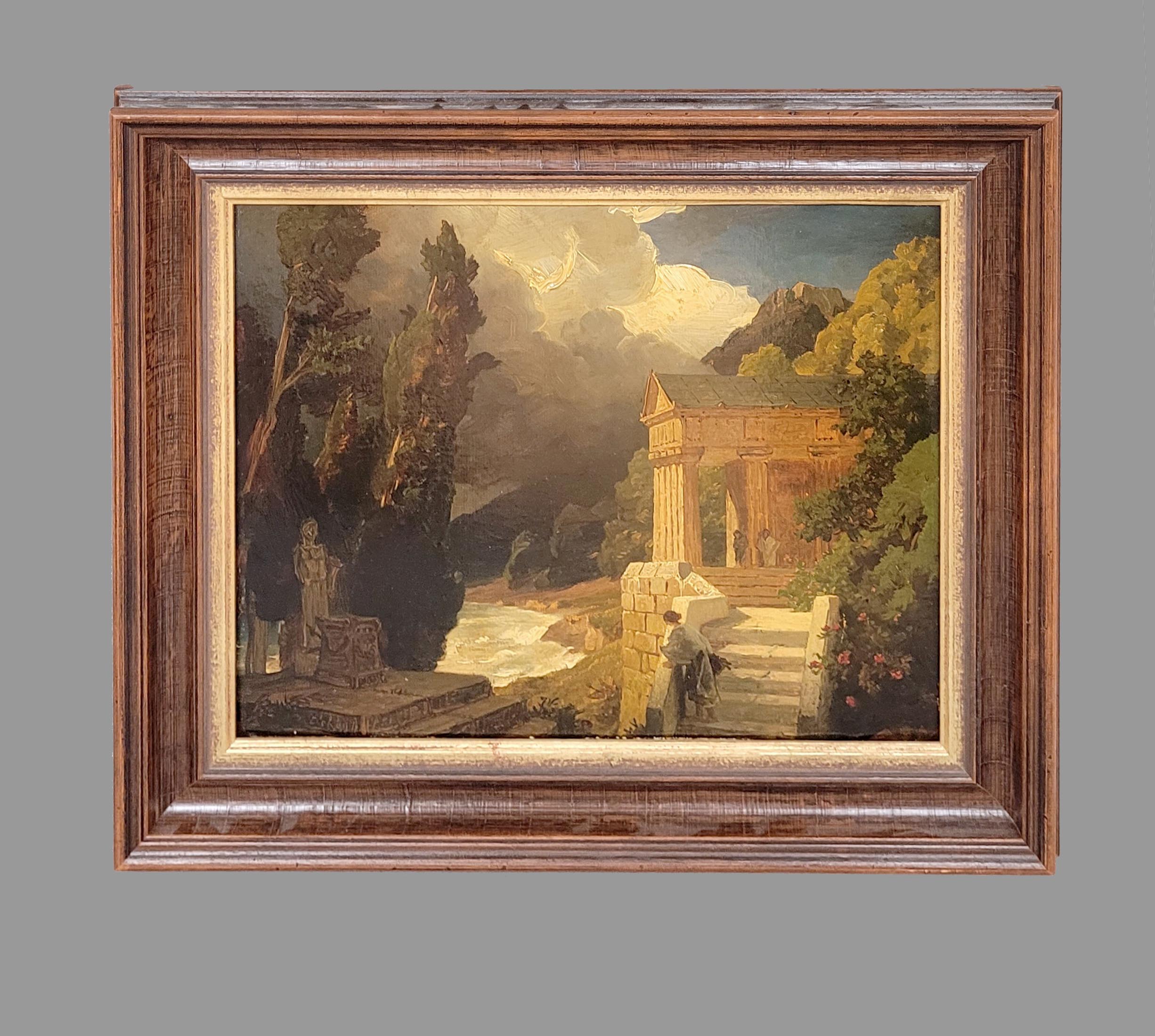 ACHENBACH, Andreas (1815-1910): Mondscheinlandschaft mit griechischem TempelÖl auf Leinwand, signiert und datiert (18)82 unten links, 39 x 49 cm, Rahmen
