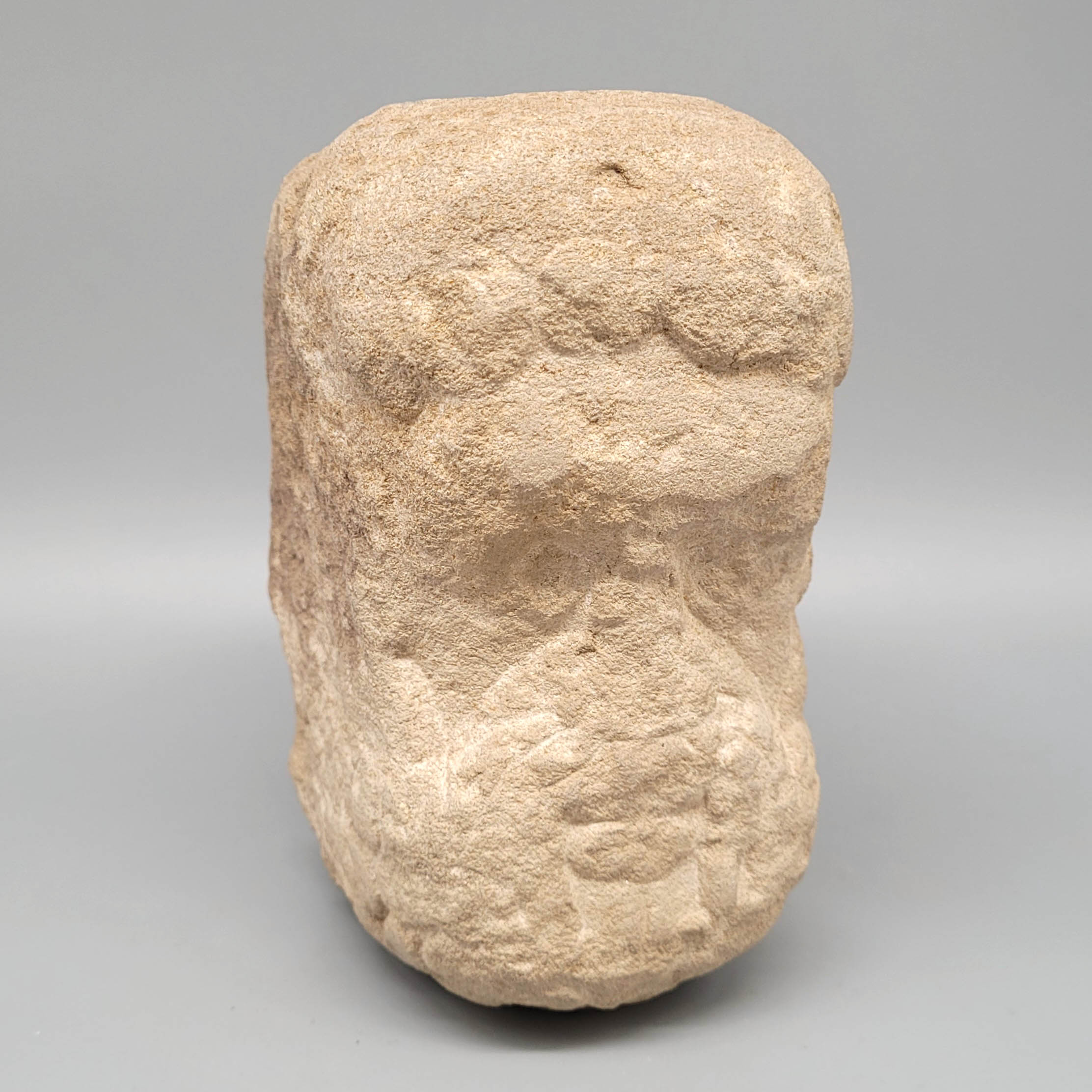 Sandstein, dreiseitig bearbeitet, hinten abgeflacht, wohl Teil eines Kapitells, Rheinland 13. oder 19. Jahrhundert, Höhe 15 cm (Fundort Köln)