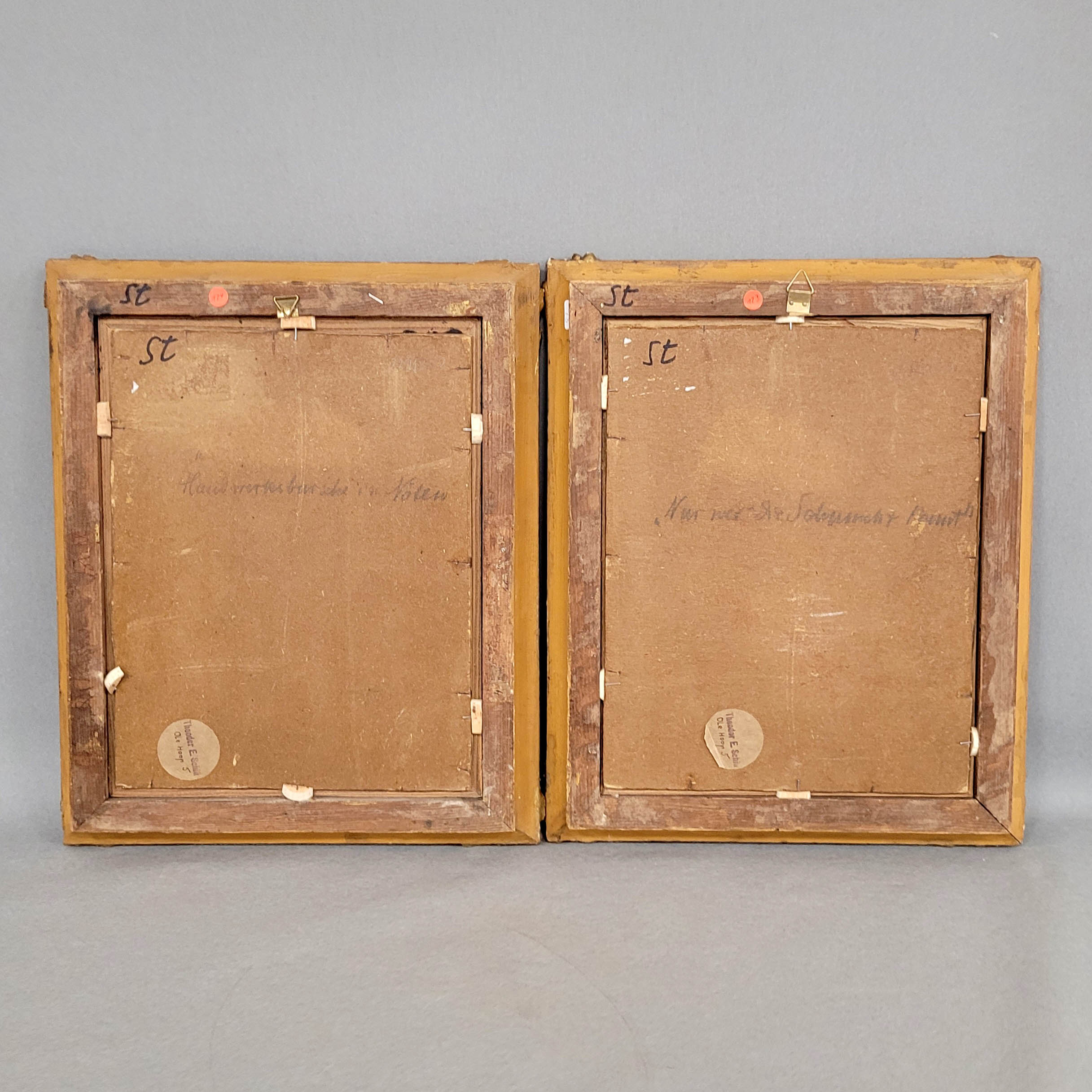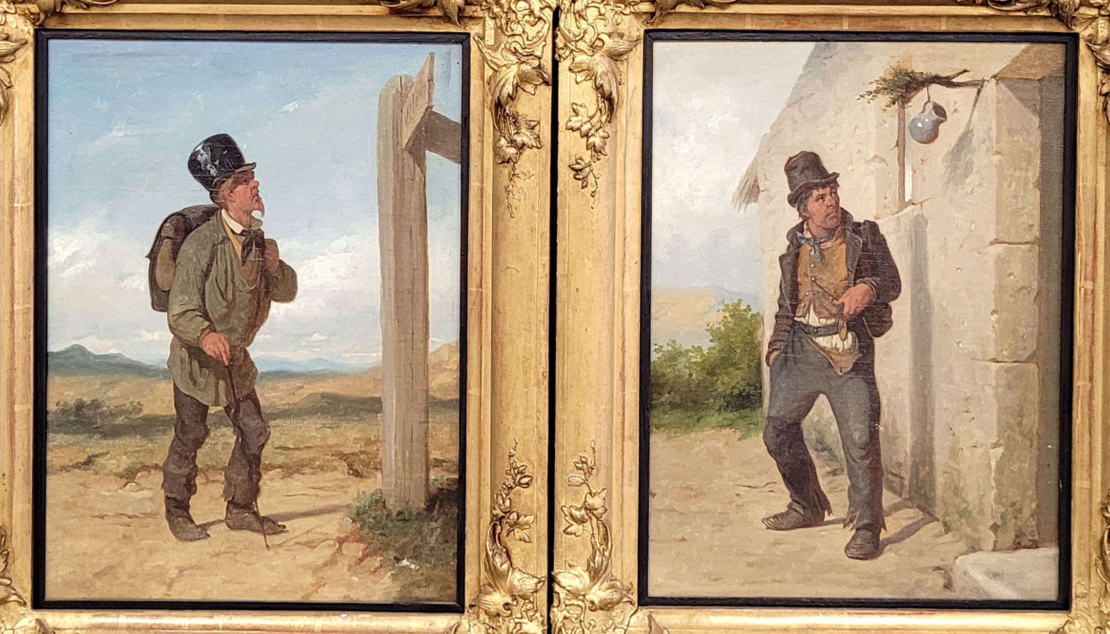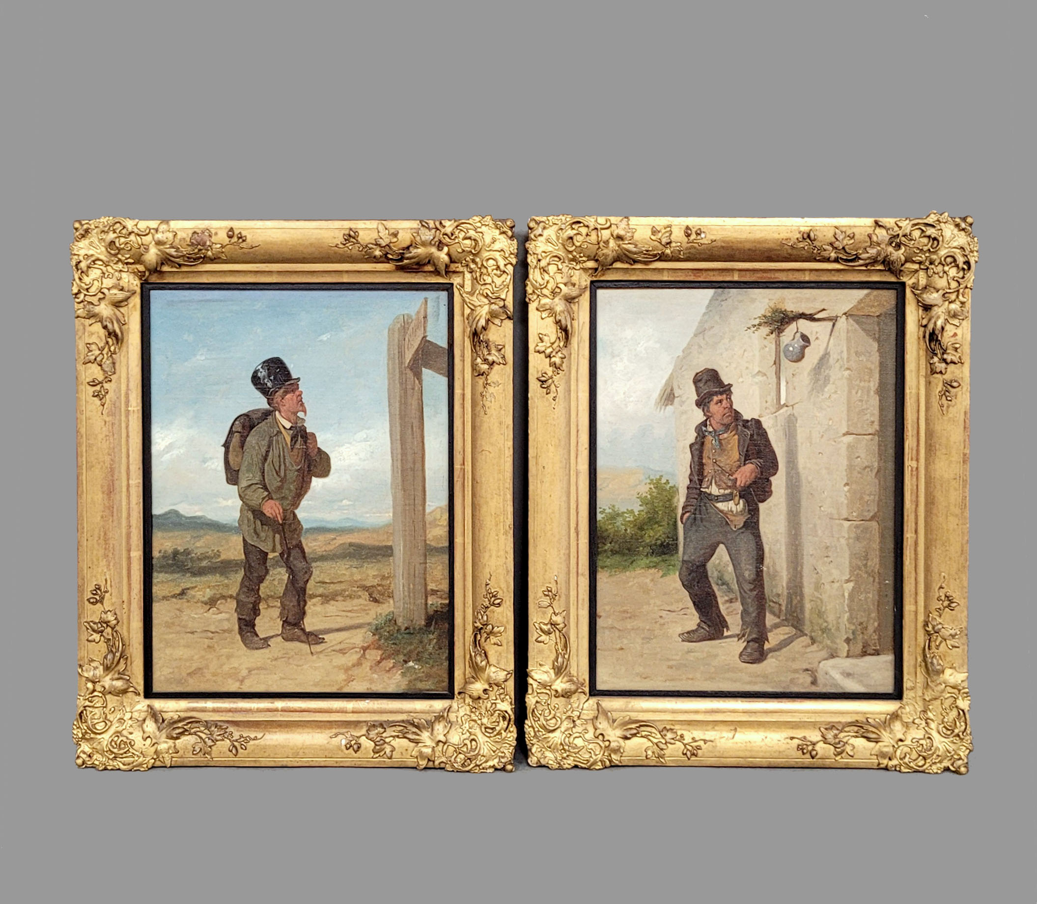 DEUTSCHER MEISTER (19. Jh.): WanderburschenGemäldepaar, Öl auf Malpappe, 29,5 x 23,5 cm, Rahmen