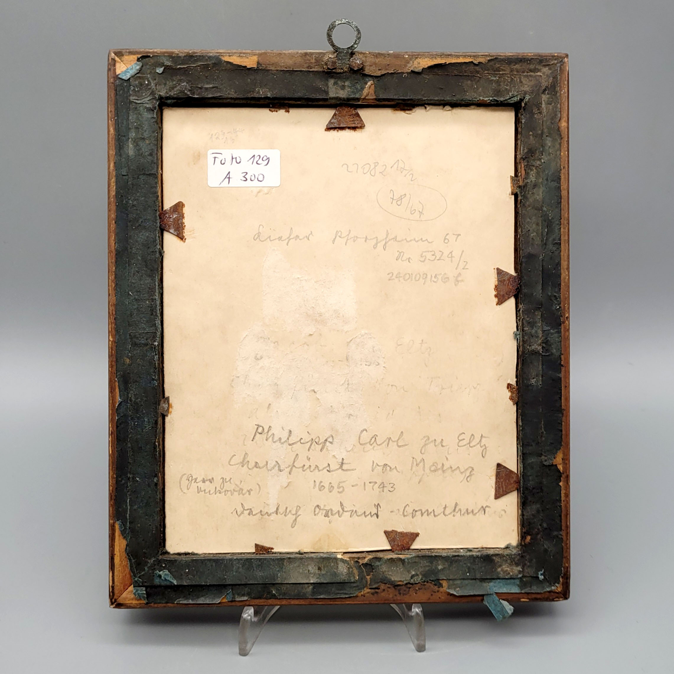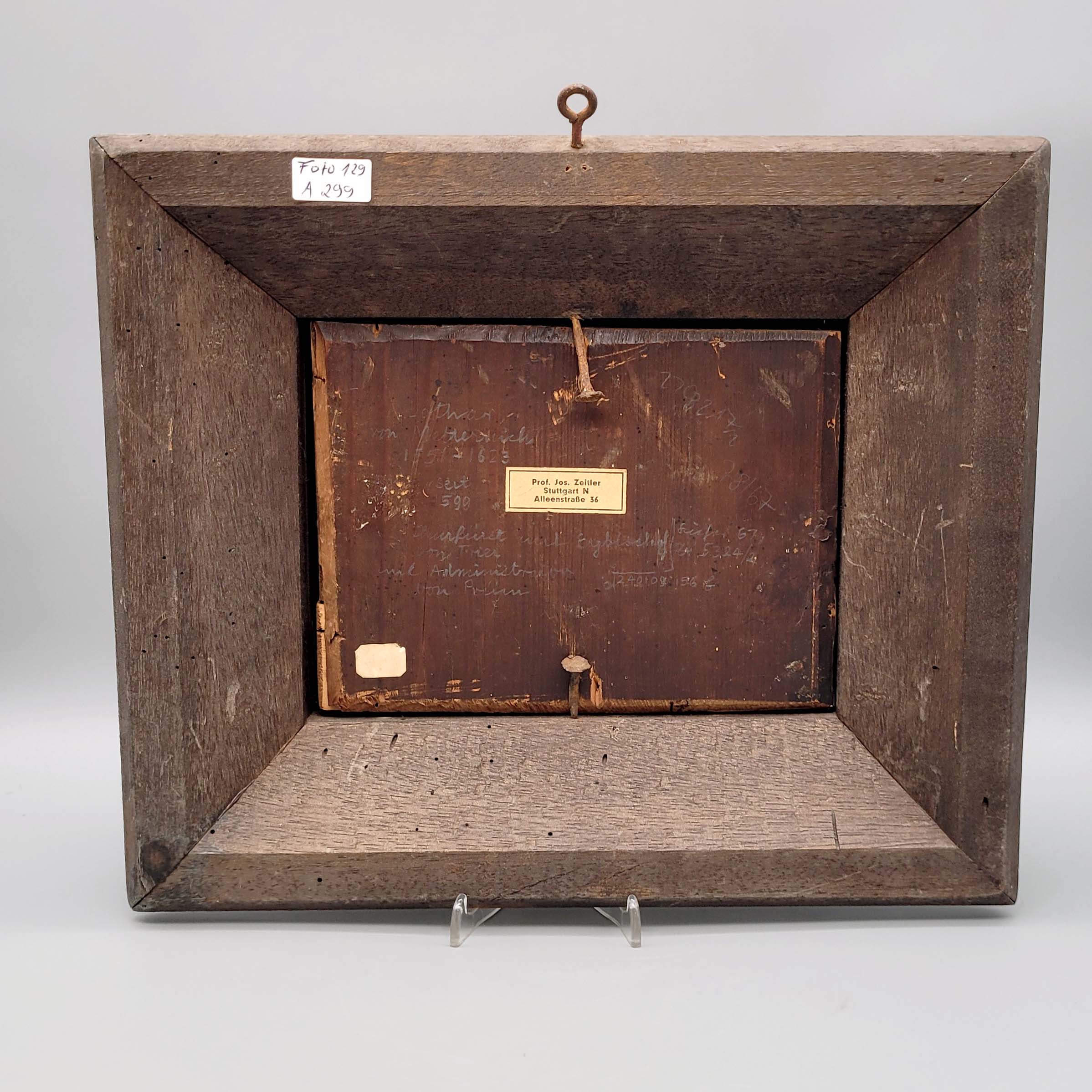 1. Lothar von Metternich (1551-1623), Kurfürst und Erzbischof von Trier und Administrator von Prüm, Öl auf Holz, 13 x 17,5 cm, Rahmen 2. Philipp Karl zu Eltz (1665-1743), Kurfürst von Mainz und Deutschorden-Comthur, Öl auf Holz, 14 x 11 cm, Rahmen