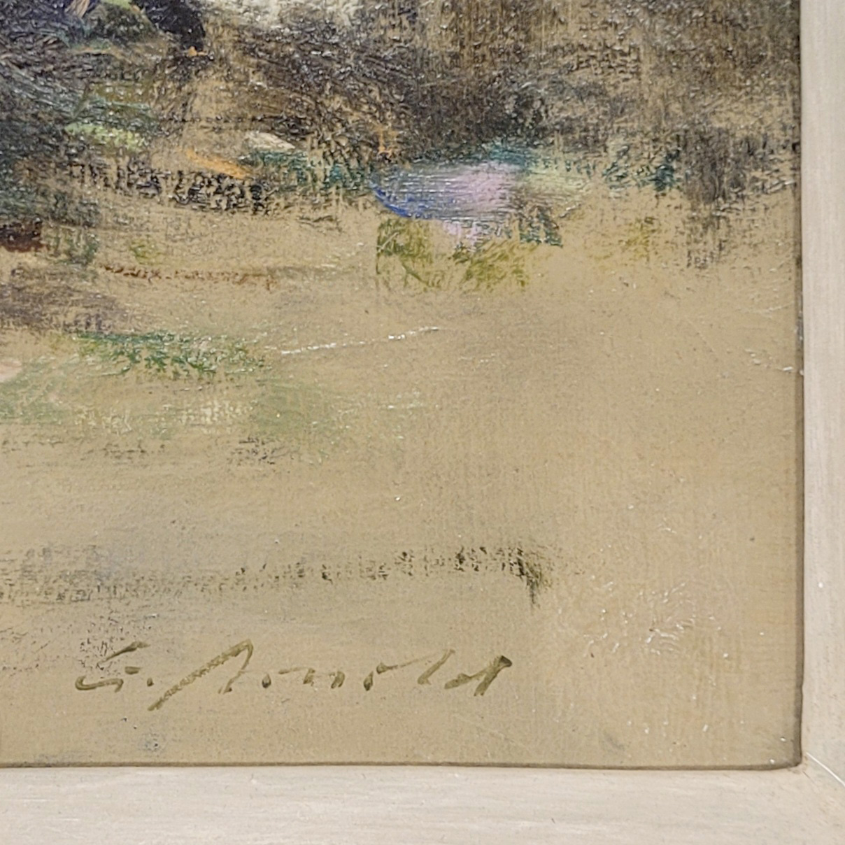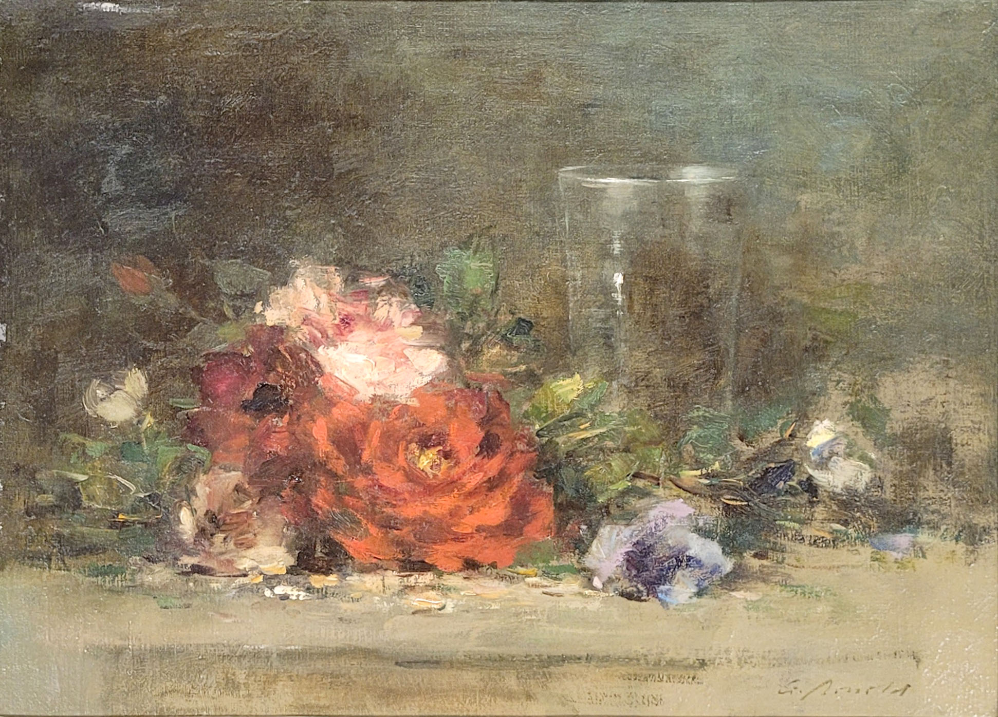 ARNOLD, Gerhard (*1938): Blumenstilleben mit GlasÖl auf Holz, signiert unten rechts, 31 x 43 cm, Rahmen