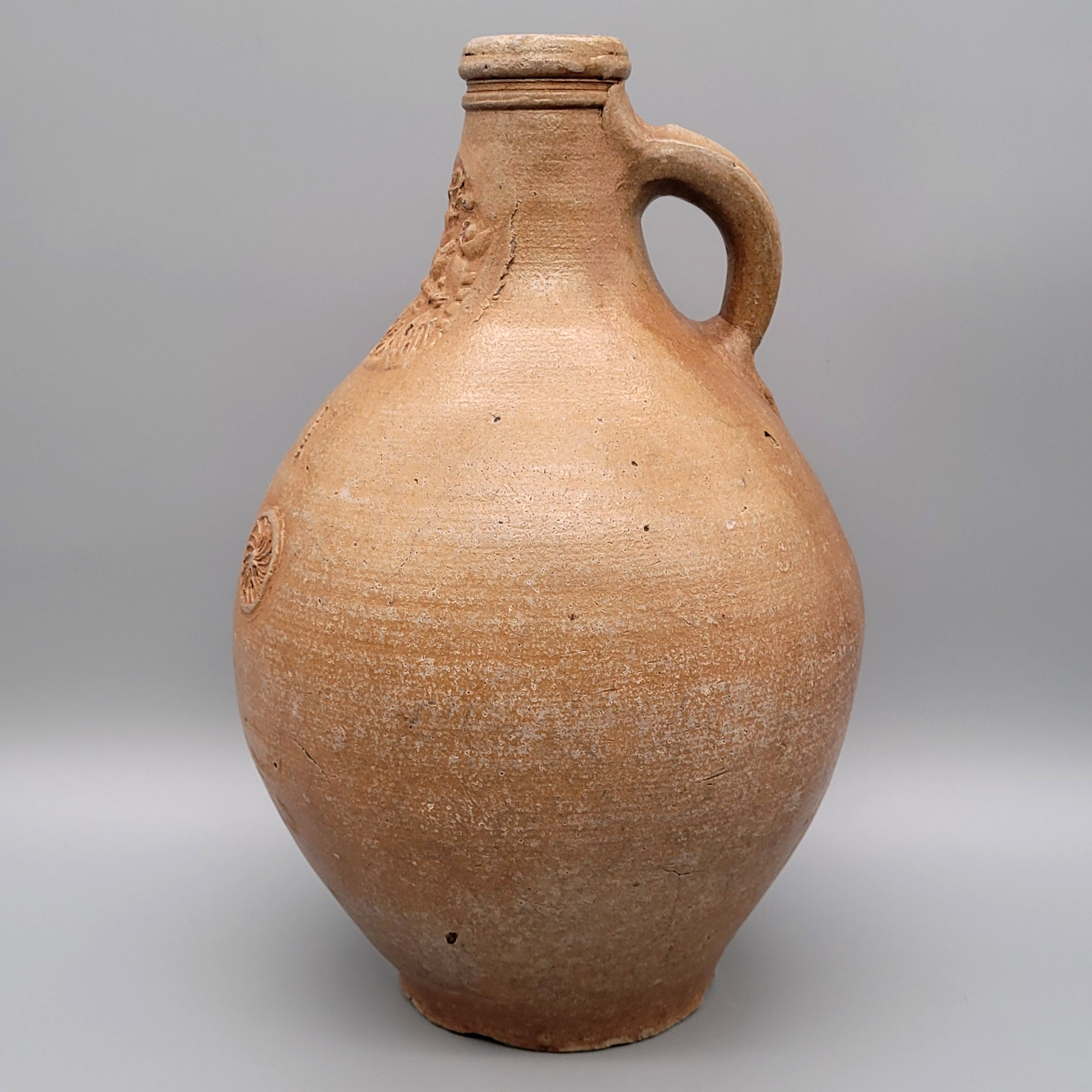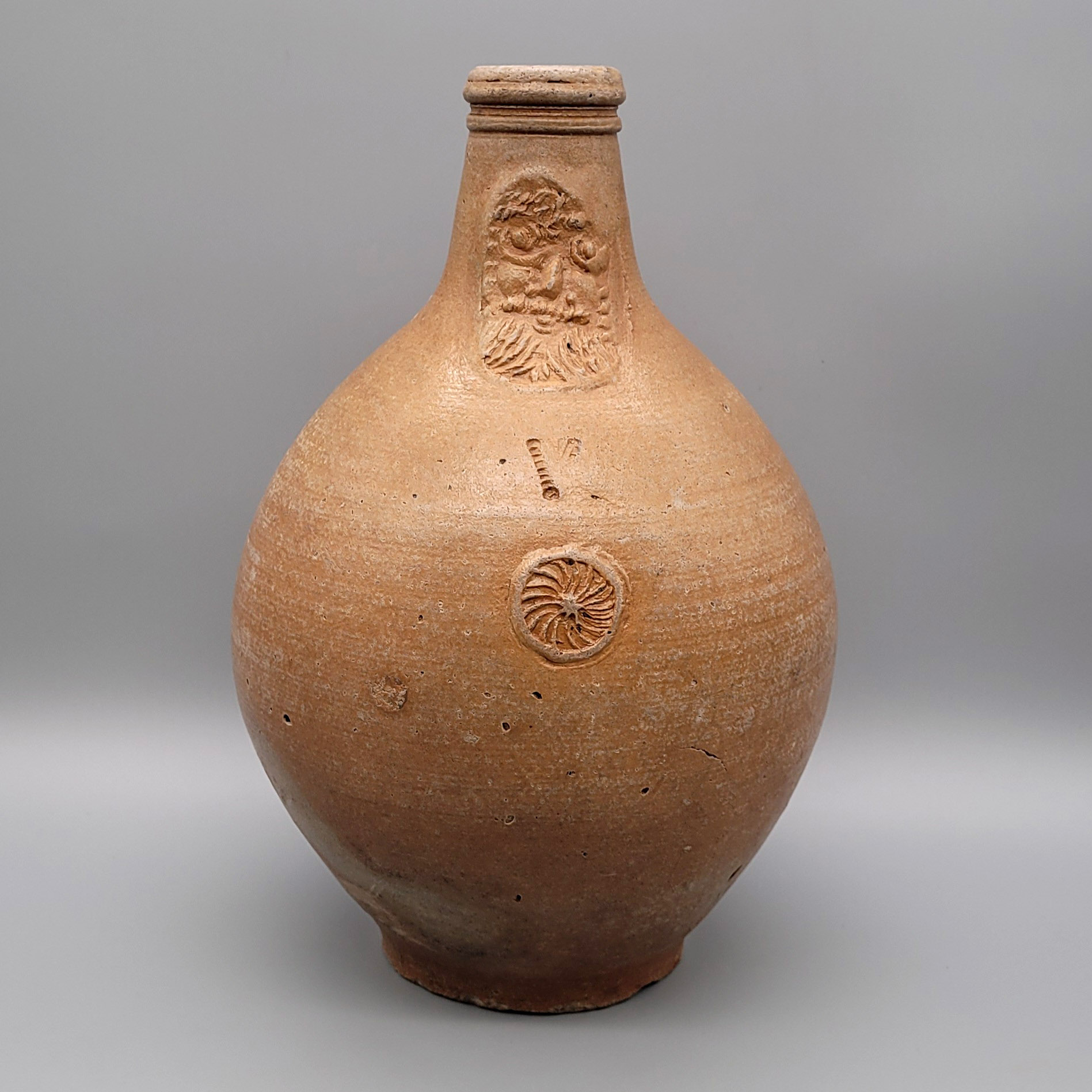 BartmannskrugSteinzeug, braun glasiert, kleine Rosettenauflage, Frechen 17./18. Jahrhundert, Höhe 30 cm