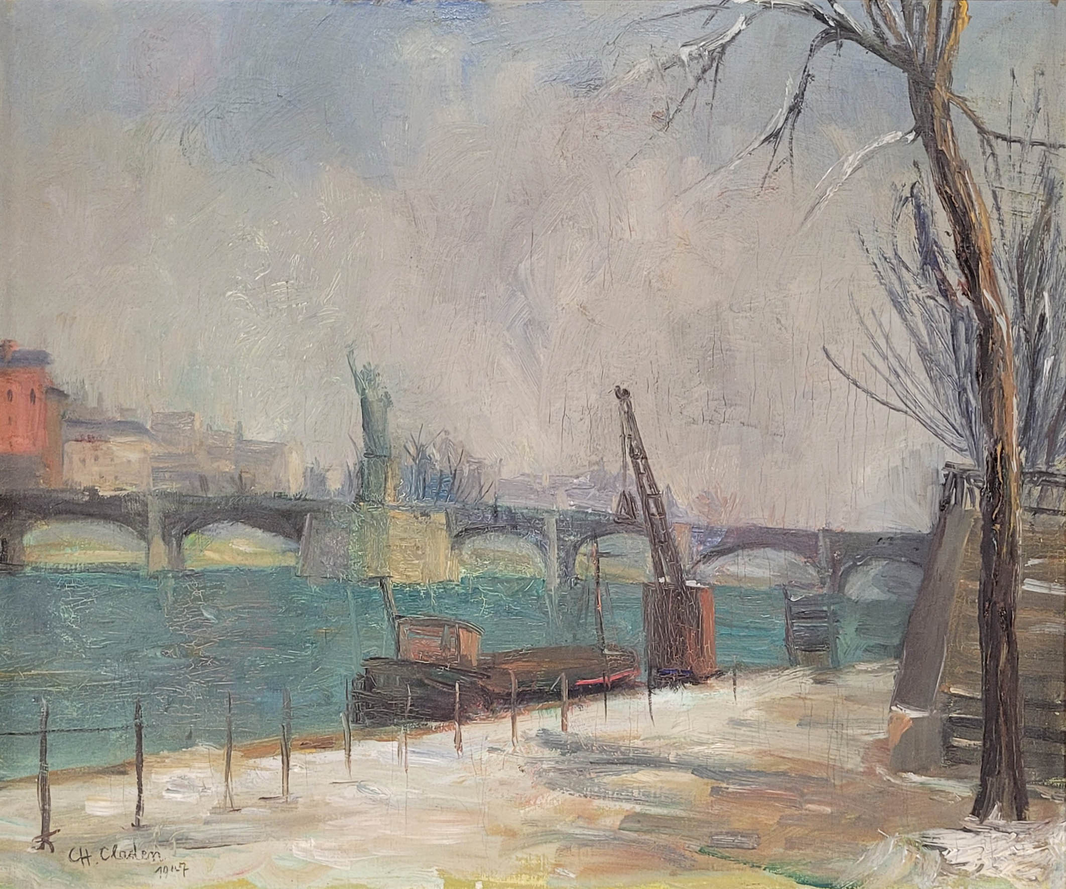 CLADEN, Charles (1910-?): Am Ufer der SeineÖl auf Leinwand, signiert und datiert 1947 unten links, 48 x 58 cm, Rahmen