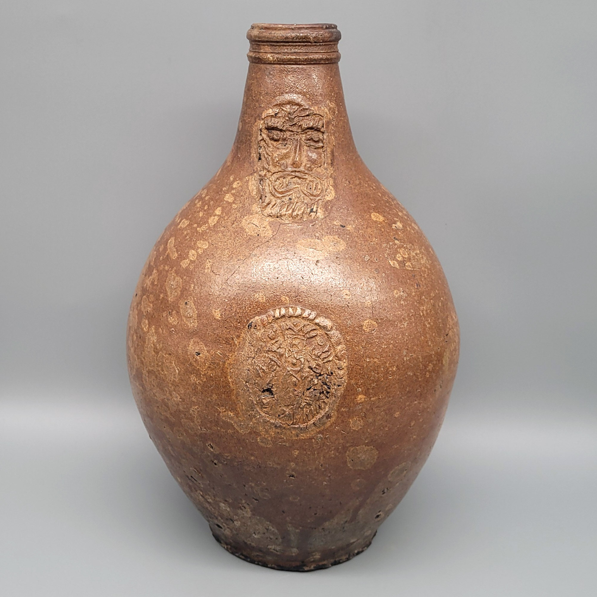 Großer BartmannskrugSteinzeug, braun glasiert, Wappenauflage „Amsterdam“, Frechen 17./18. Jahrhundert, Höhe ca. 35 cm