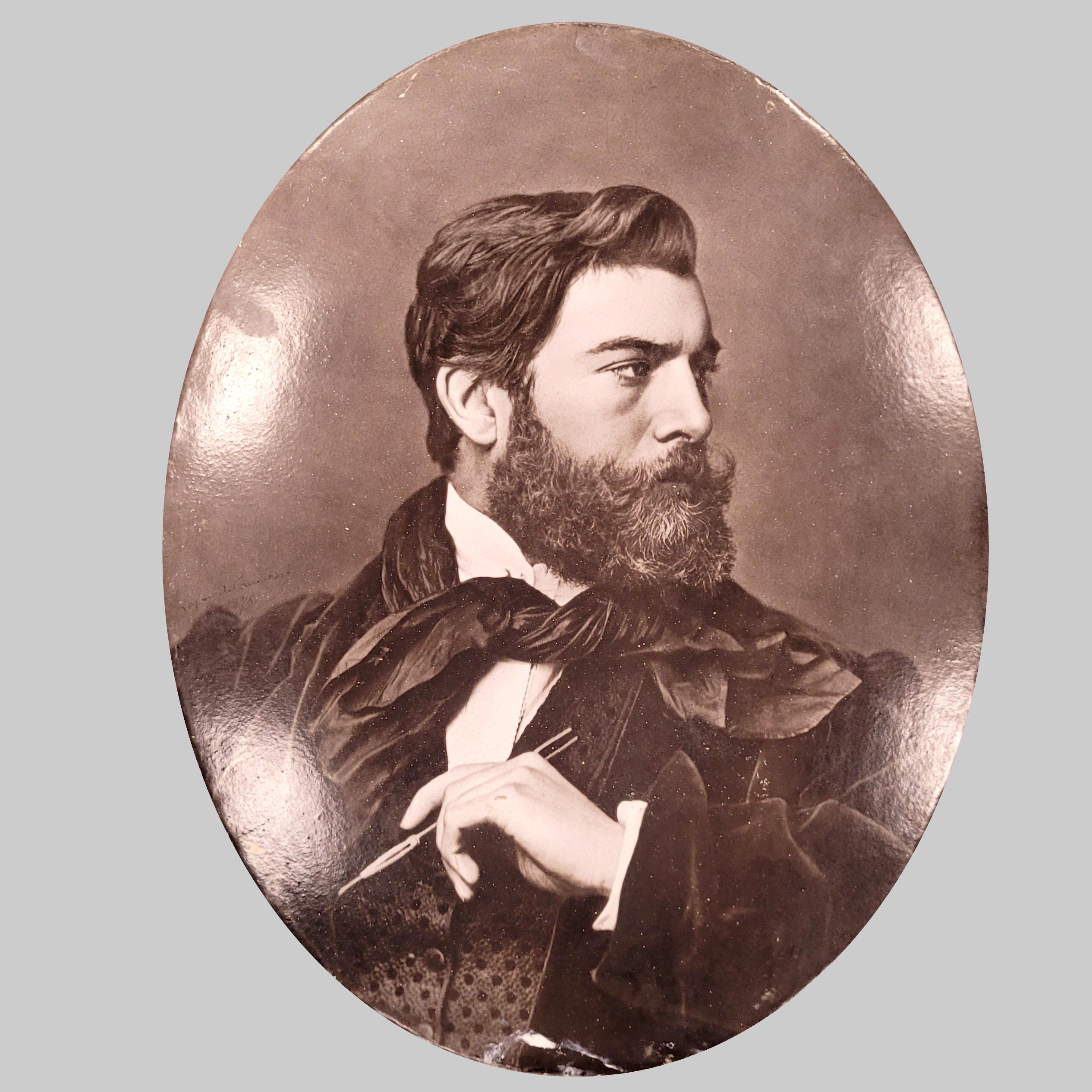 Öl auf Stein, recto Künstlerporträt, Photographie auf Stein, signiert „de Camarijas“ und datiert 1878, 56 x 44,5 cm, Rahmen (beschädigt)
