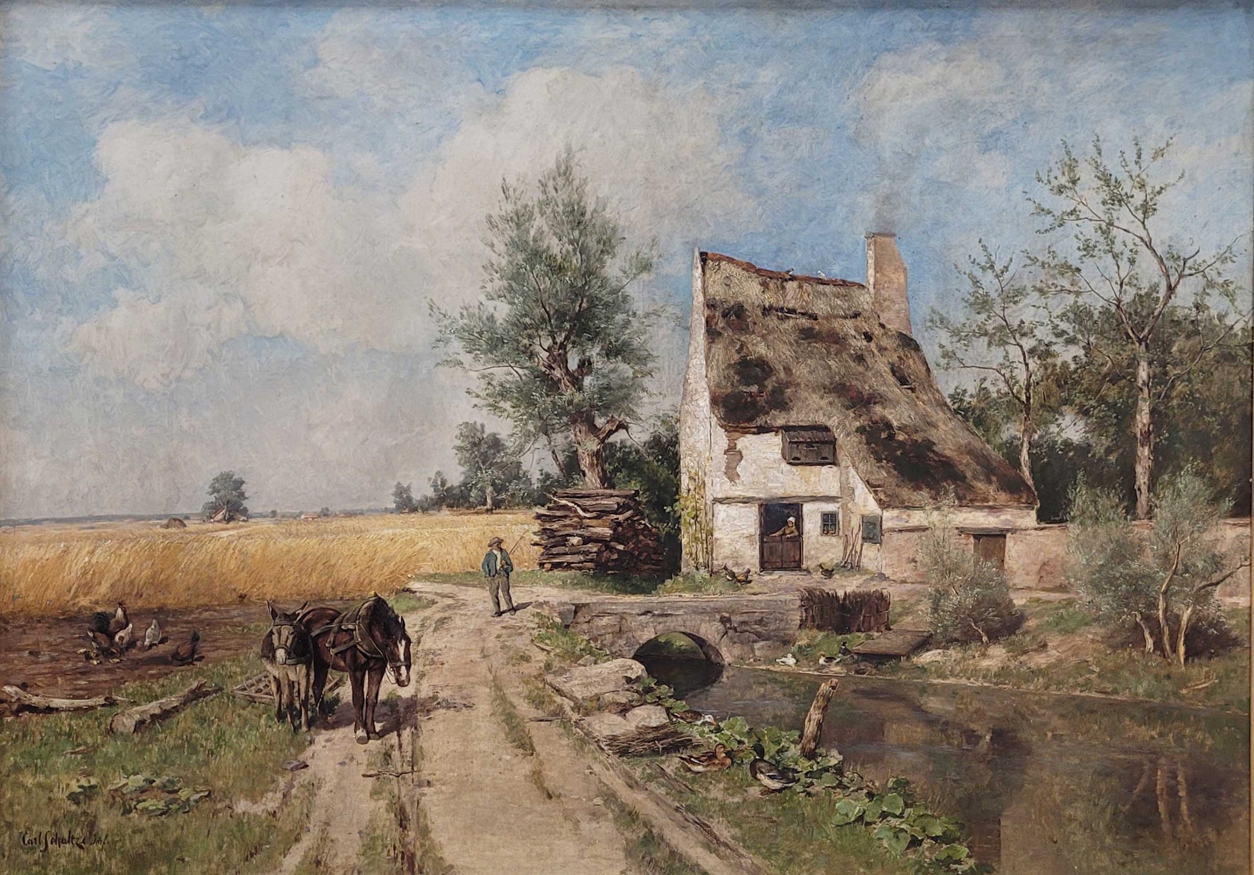 SCHULTZE, Carl (1856-1935): Bauernhof an einem KanalÖl auf Leinwand, signiert unten links, 83 x 120 cm, Rahmen