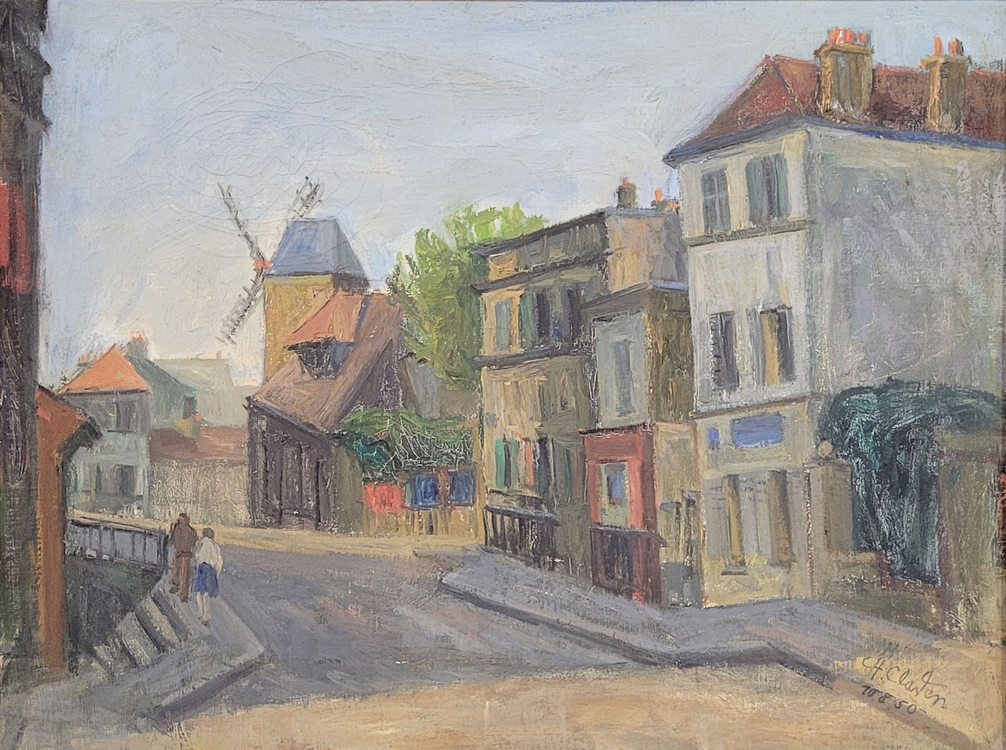 CLADEN, Charles (1910-?): Französische Straßenansicht mit WindmühleÖl auf Leinwand, signiert und datiert 10.8. (19)50 unten rechts, 46 x 61,5 cm, Rahmen