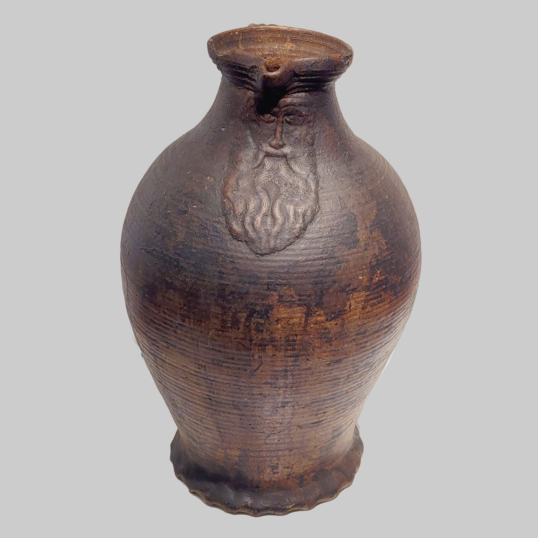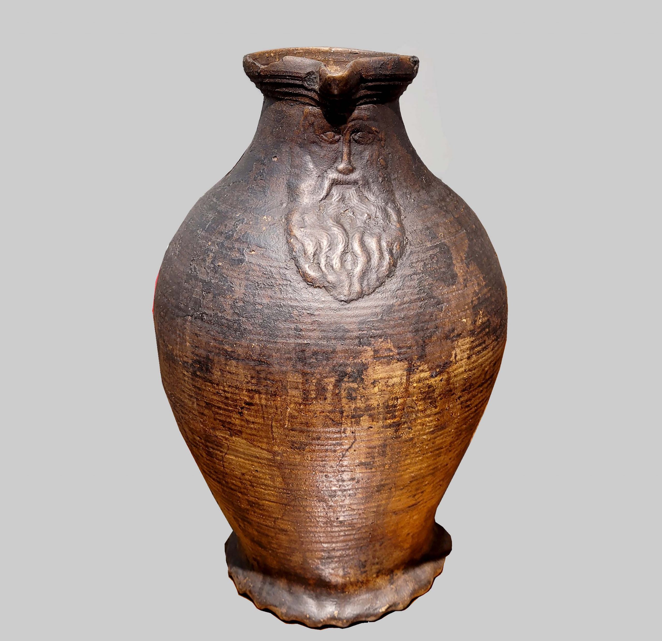 PötzkanneSteinzeug, glasiert, Bartmann-Auflage, Langerwehe, um 1600, Höhe 46 cm (feine Haarrisse, Boden gerissen und restauriert)