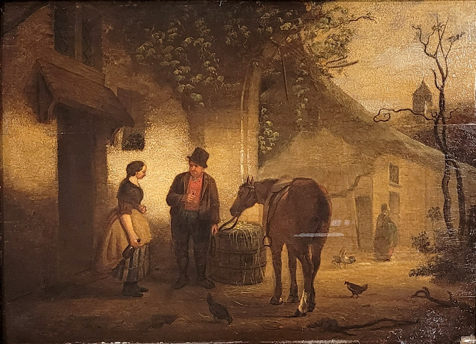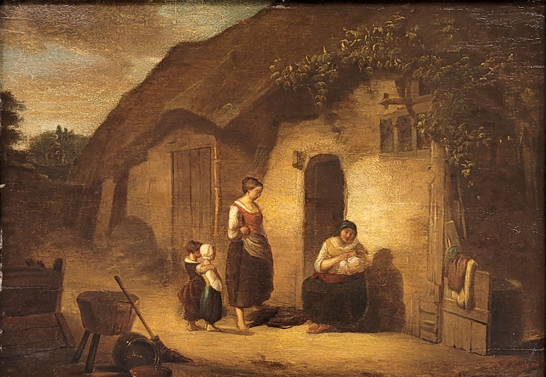 ENGLISCHER MEISTER (um 1800): Vor dem Gasthaus / Besuch bei der jungen Mutter