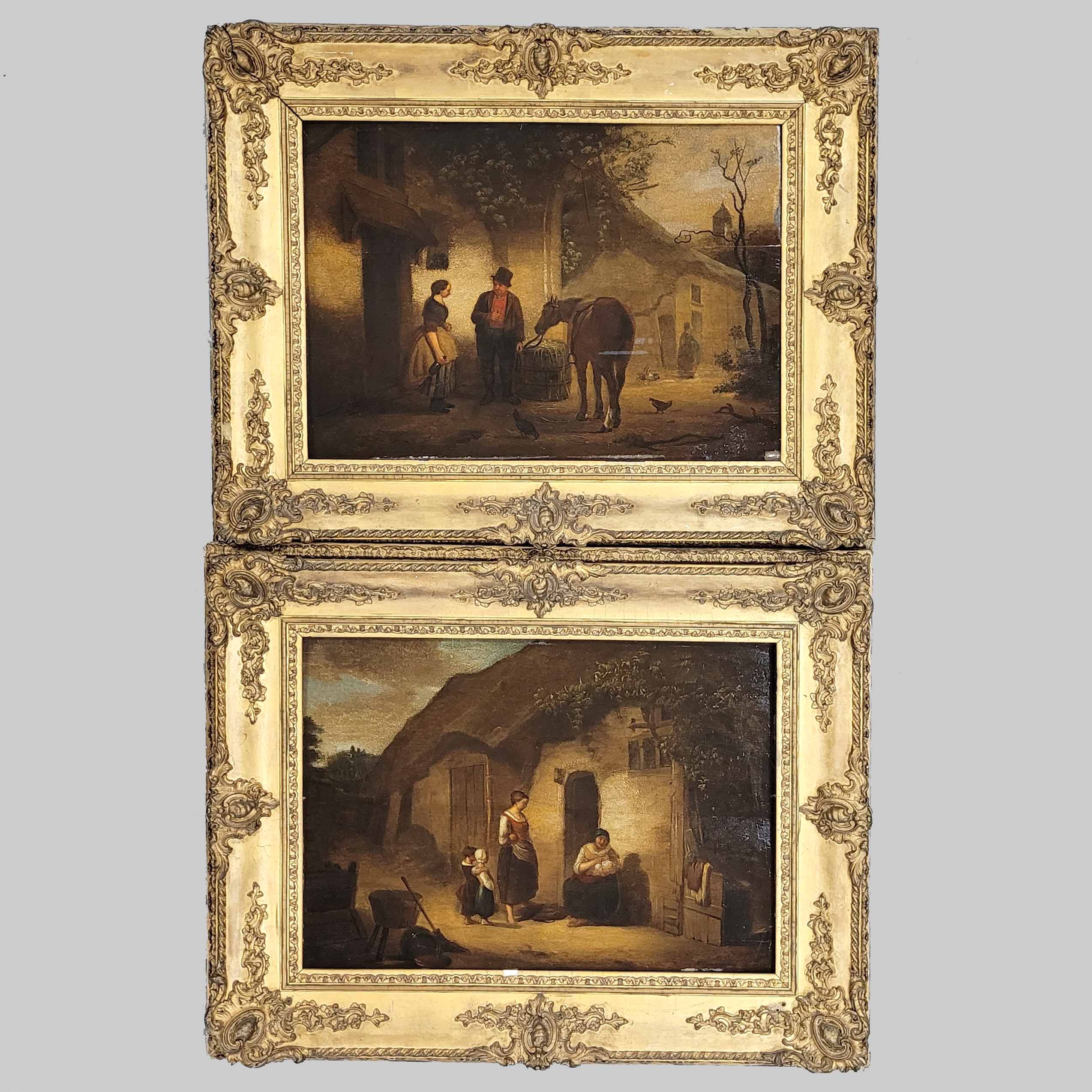 Gemäldepaar. Öl auf Holz, 38 x 52 cm, Rahmen (beiden Platten gerissen und mit Leinwandstreifen alt gesichert, Rahmen beschädigt)