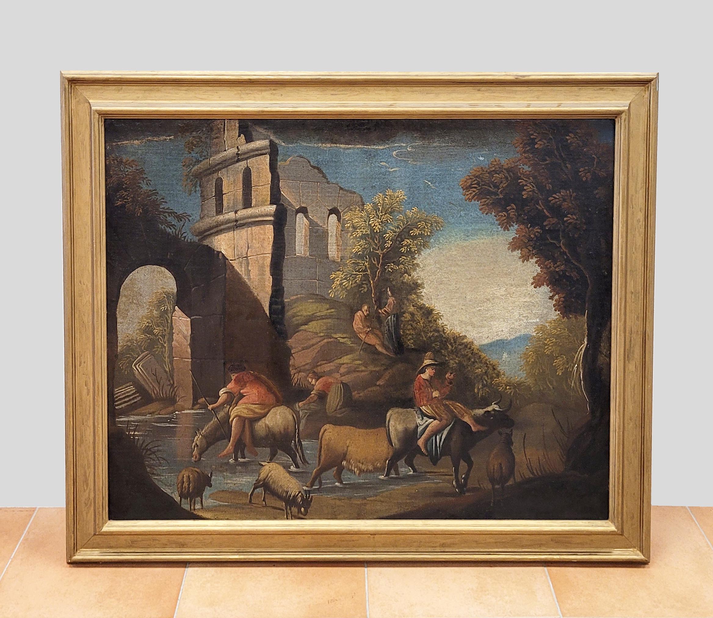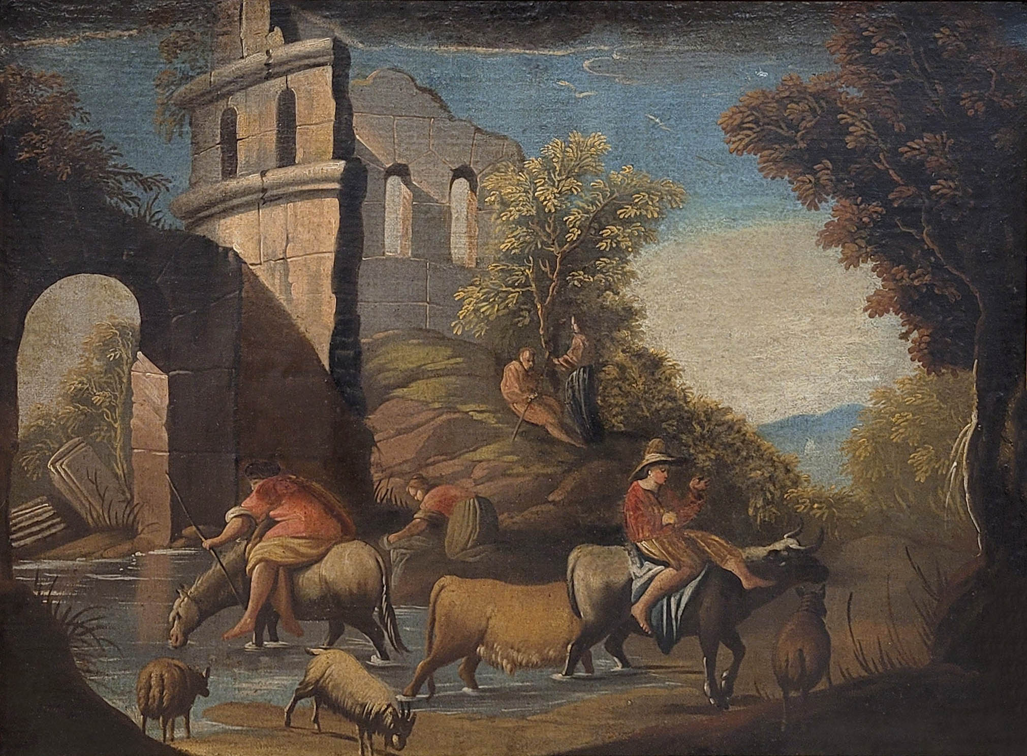 ITALIENISCHER MEISTER (17. Jh.): Hirten bei der Rast an einer Ruine
