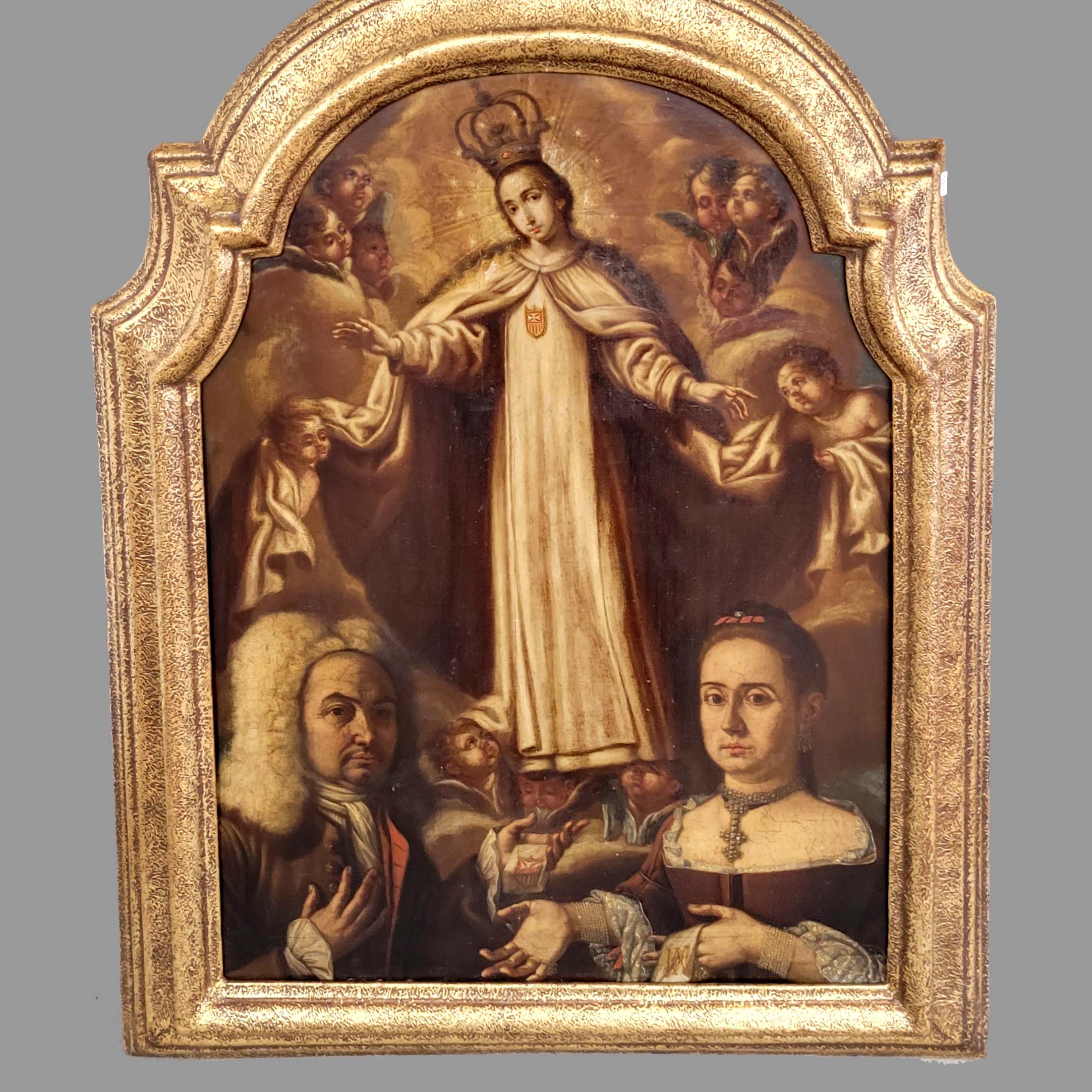 SPANISCHER MEISTER (um 1700): Maria de Mercede mit Stifterpaar