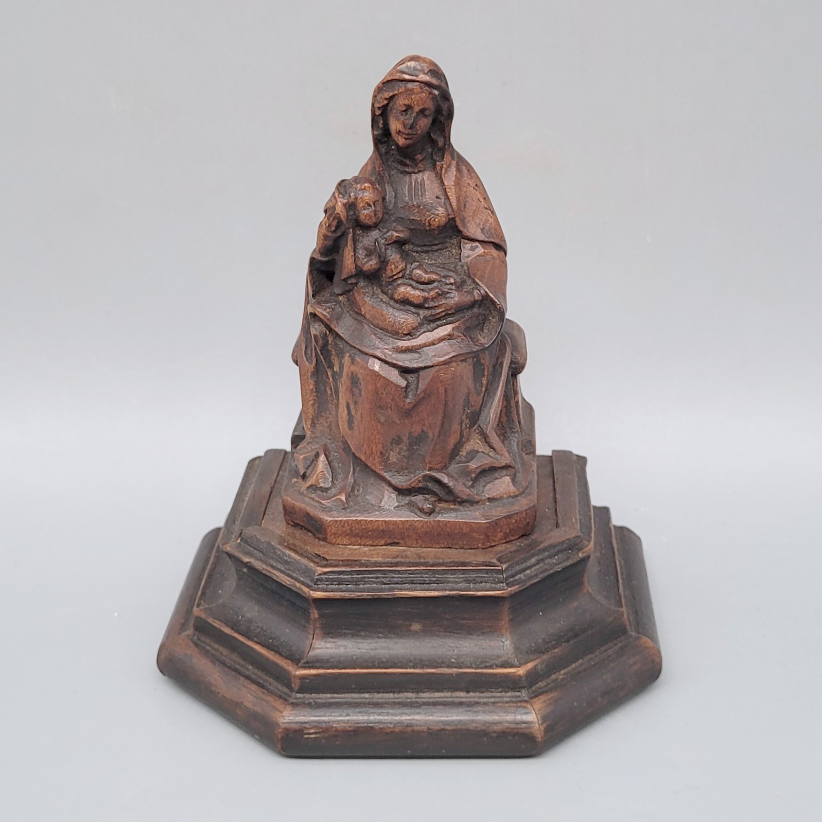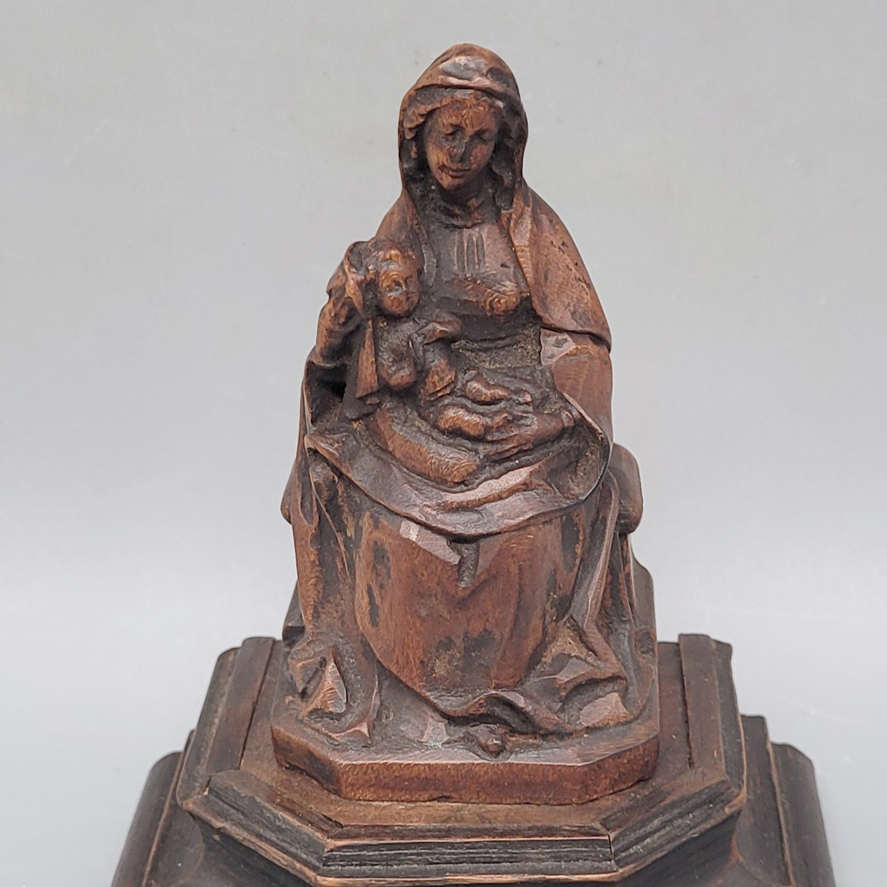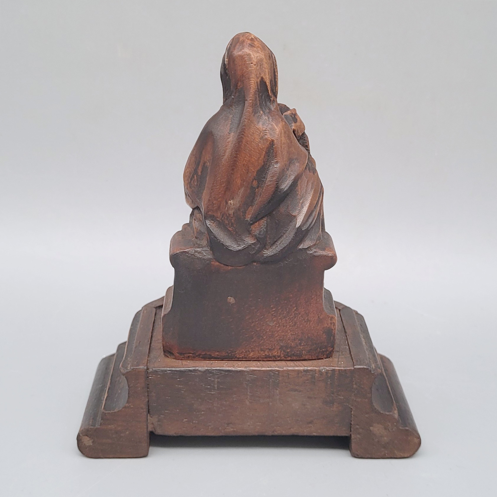 Holz, vollrund geschnitzt, Flämisch 17./18. Jahrhundert, Höhe 12 cm (mit dem alten getreppten Sockel)