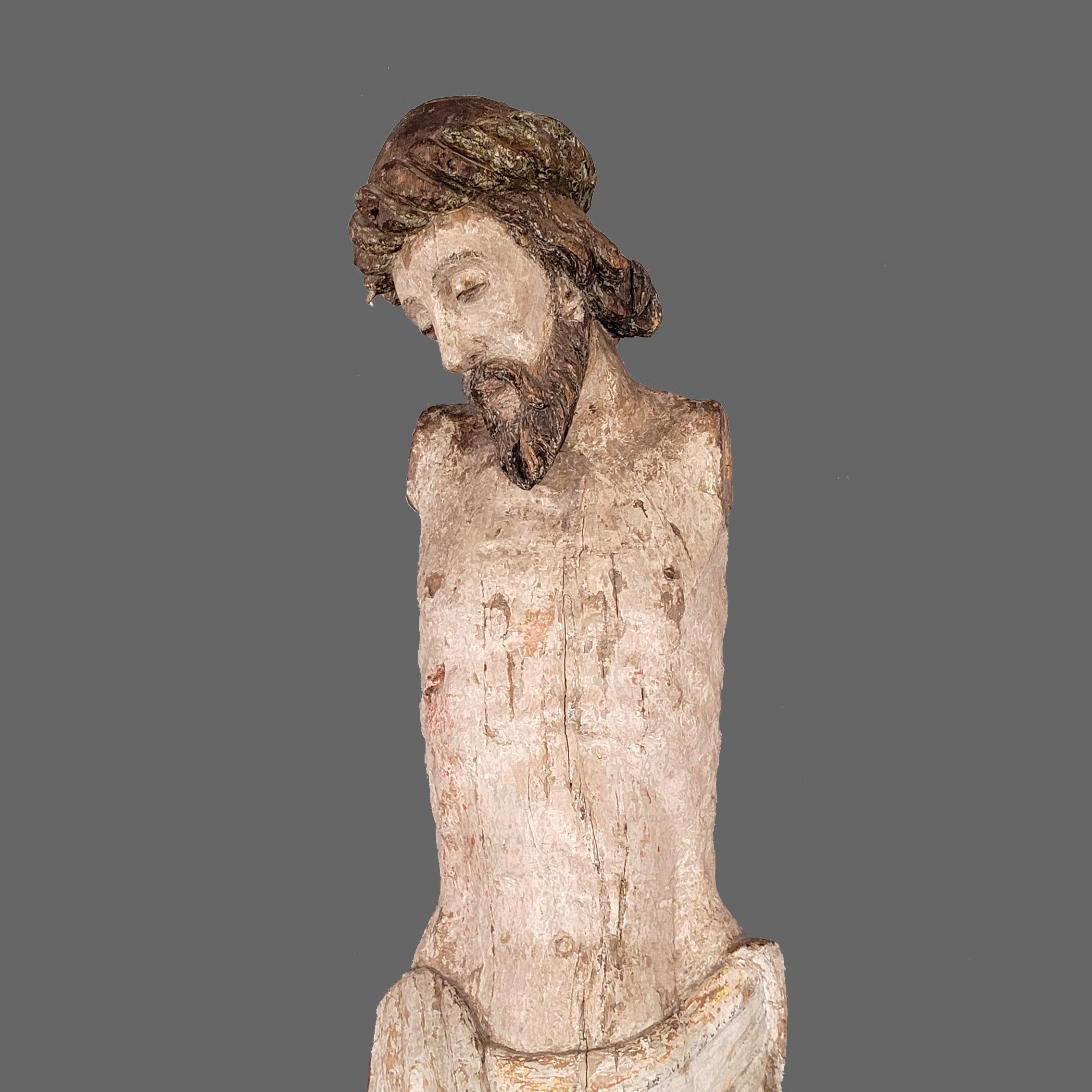 Corpus ChristiHolz, vollrund geschnitzt, Reste originaler Fassung und Vergoldung, Rheinland, um 1500, Höhe 132 cm
