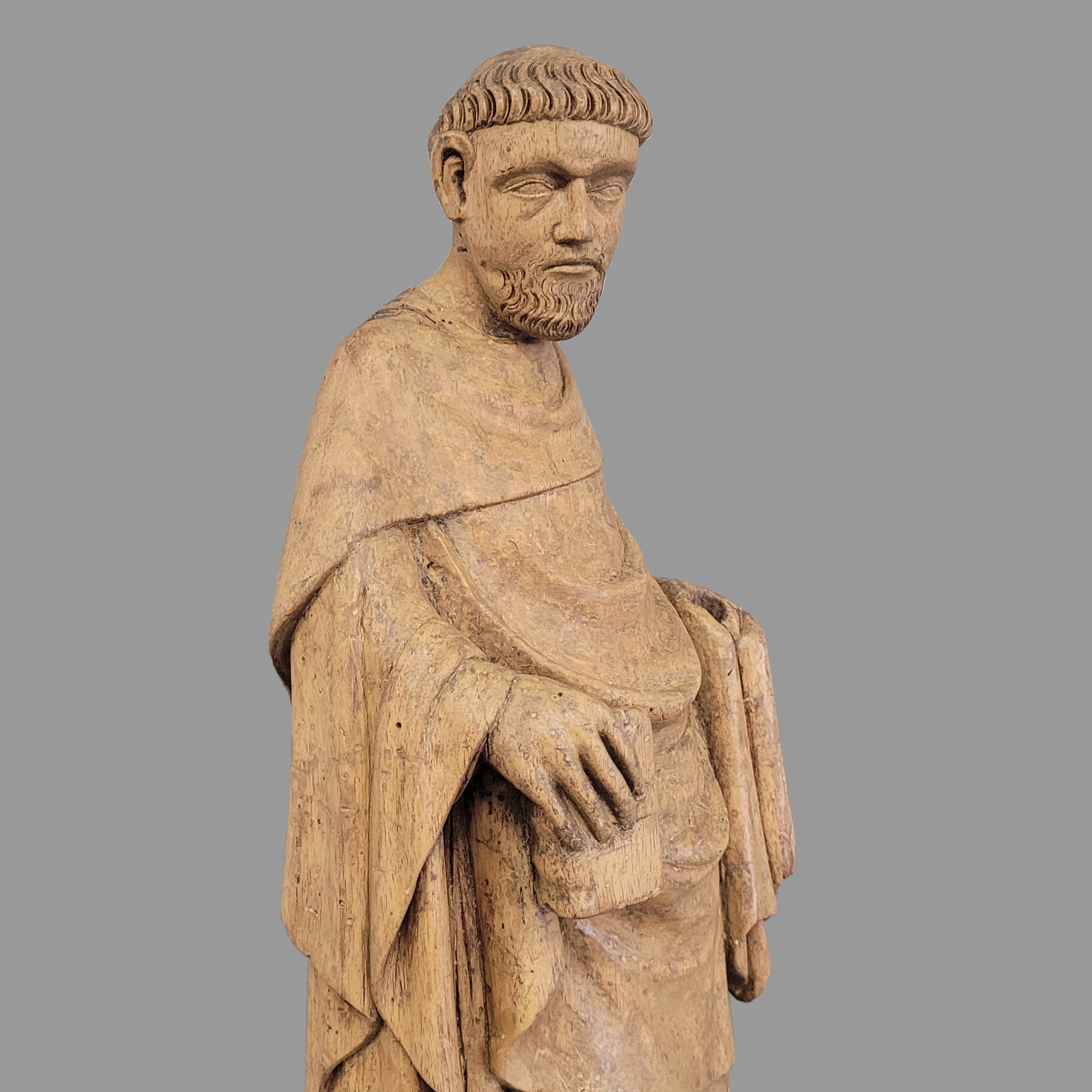 Nussholz, vollrund geschnitzt, Mittelitalien, 14. Jahrhundert, Höhe 43 cm, Höhe mit späterem Sockel 51 cm