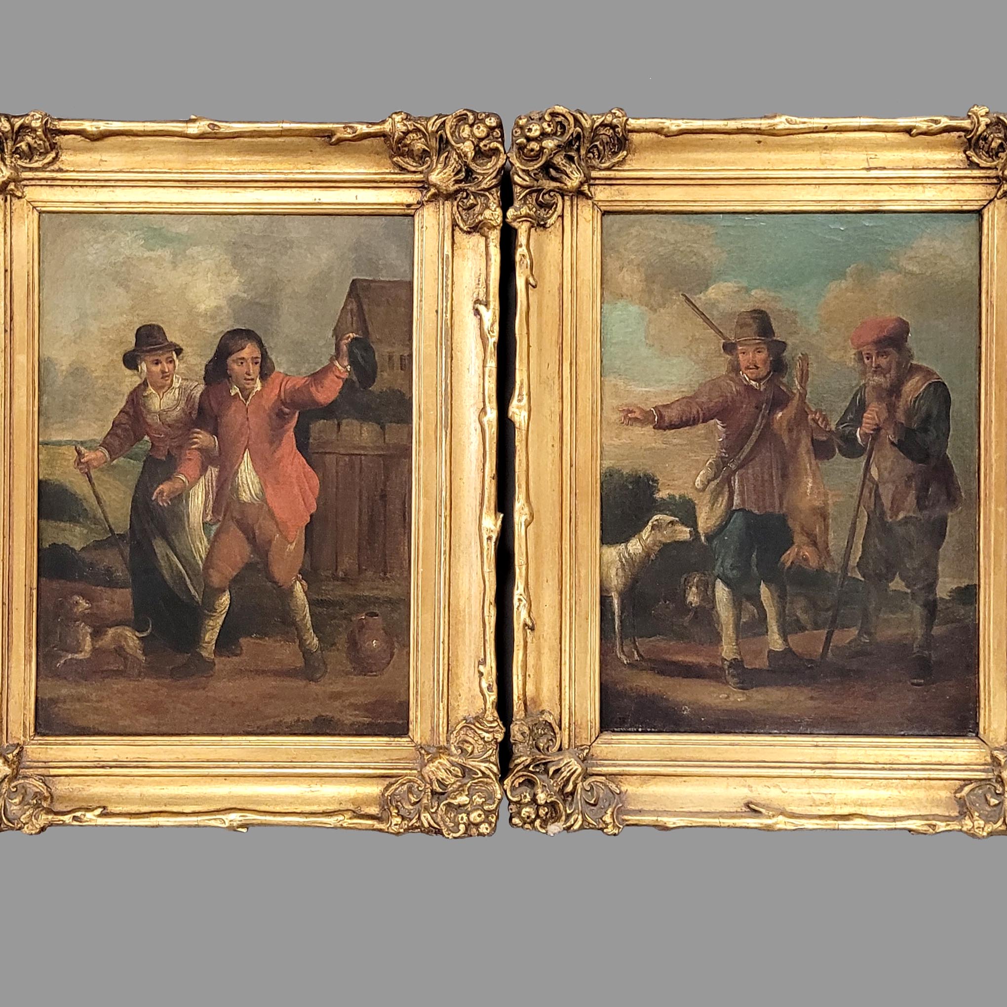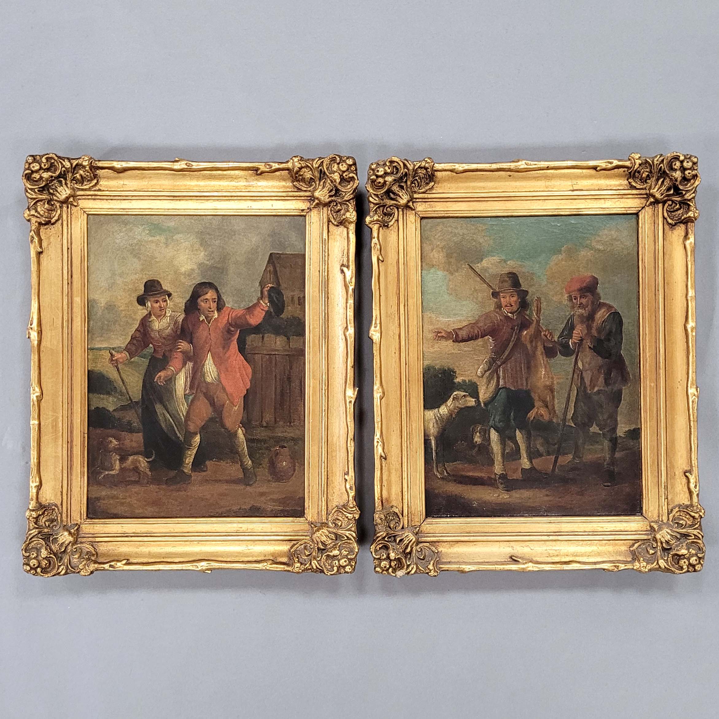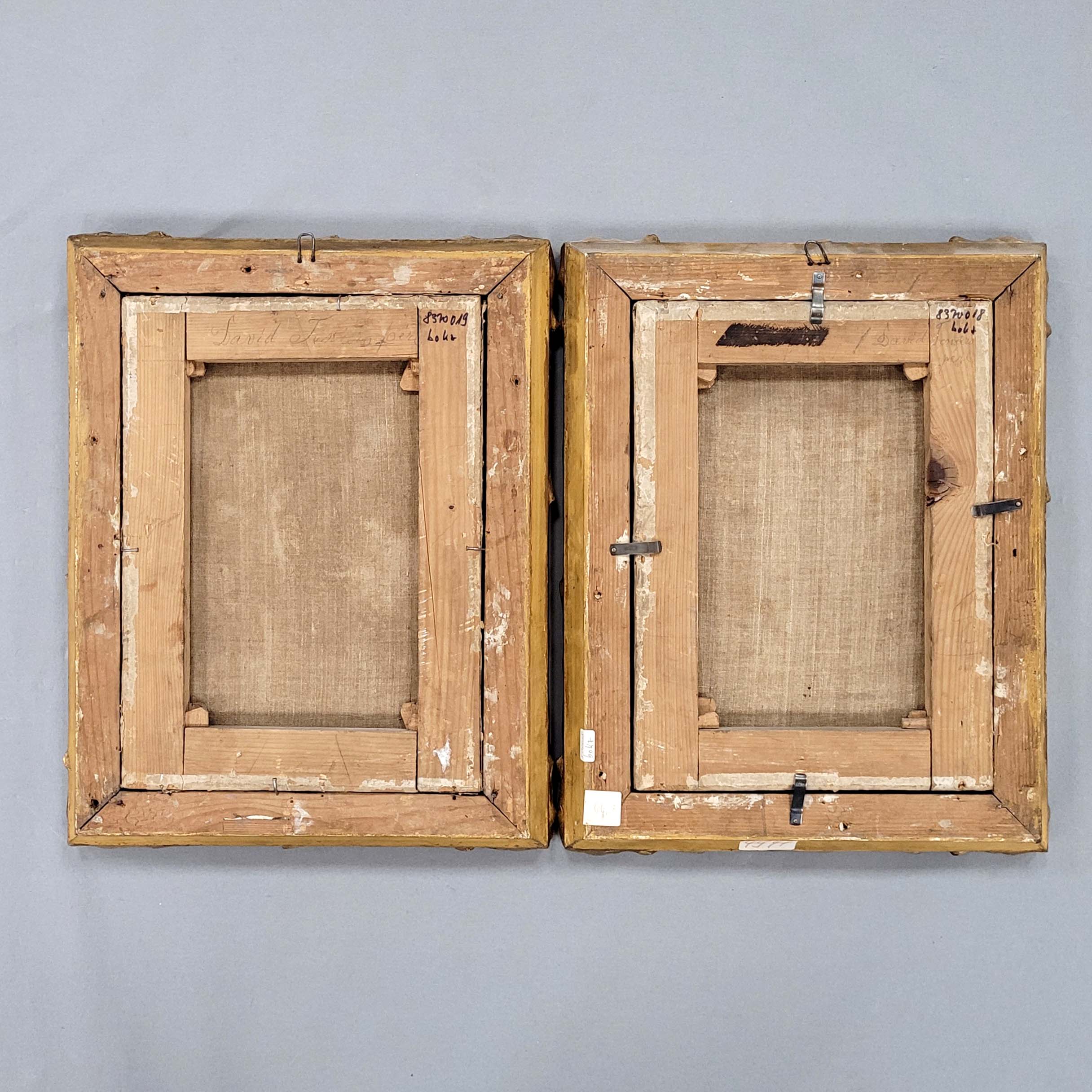 Gemäldepaar, Öl auf Leinwand, doubliert, verso alt bezeichnet „David Teniers“, 34,5 x 25 cm, Rahmen