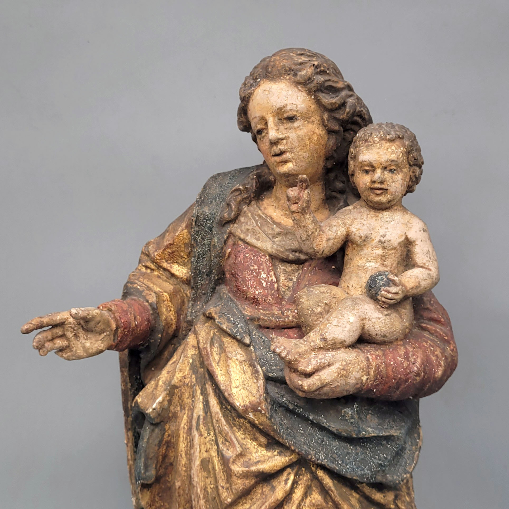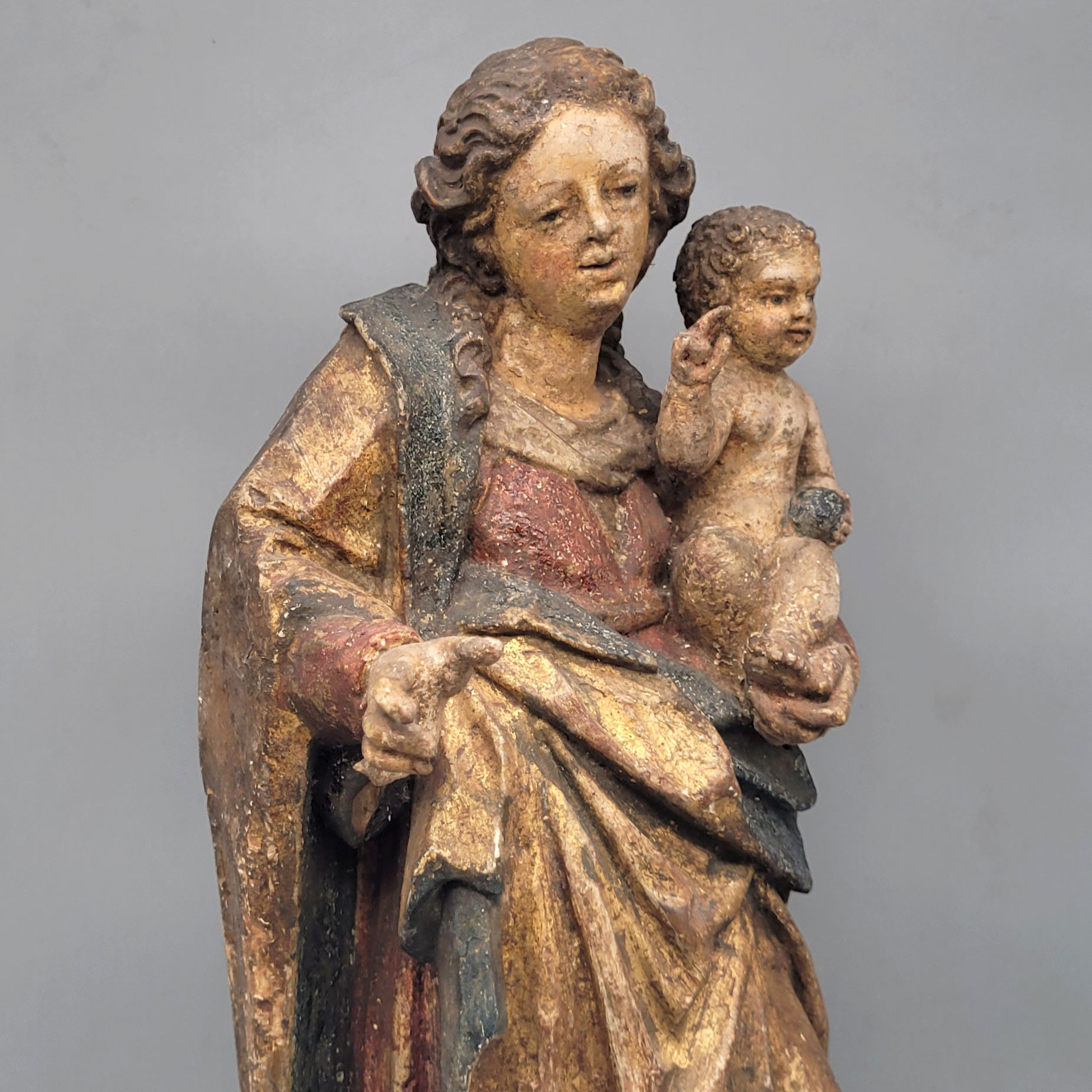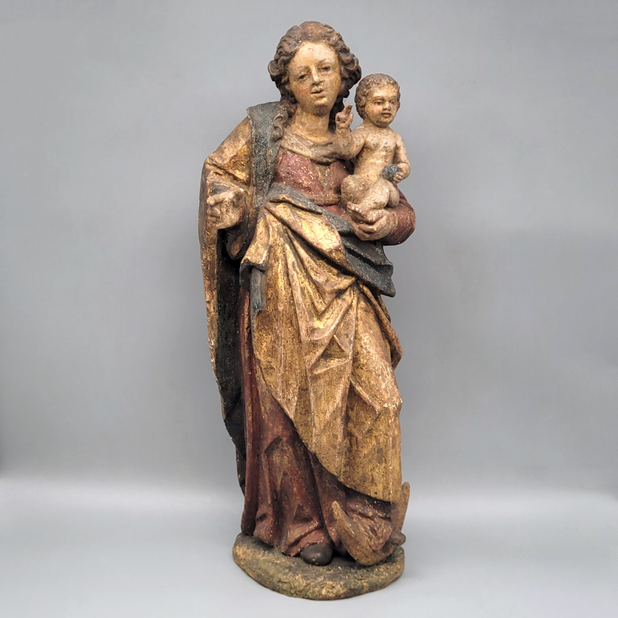 Holz, vollrund geschnitzt, partiell übergangene originale Fassung und Vergoldung, Süddeutsch, um 1600, Höhe 44 cm