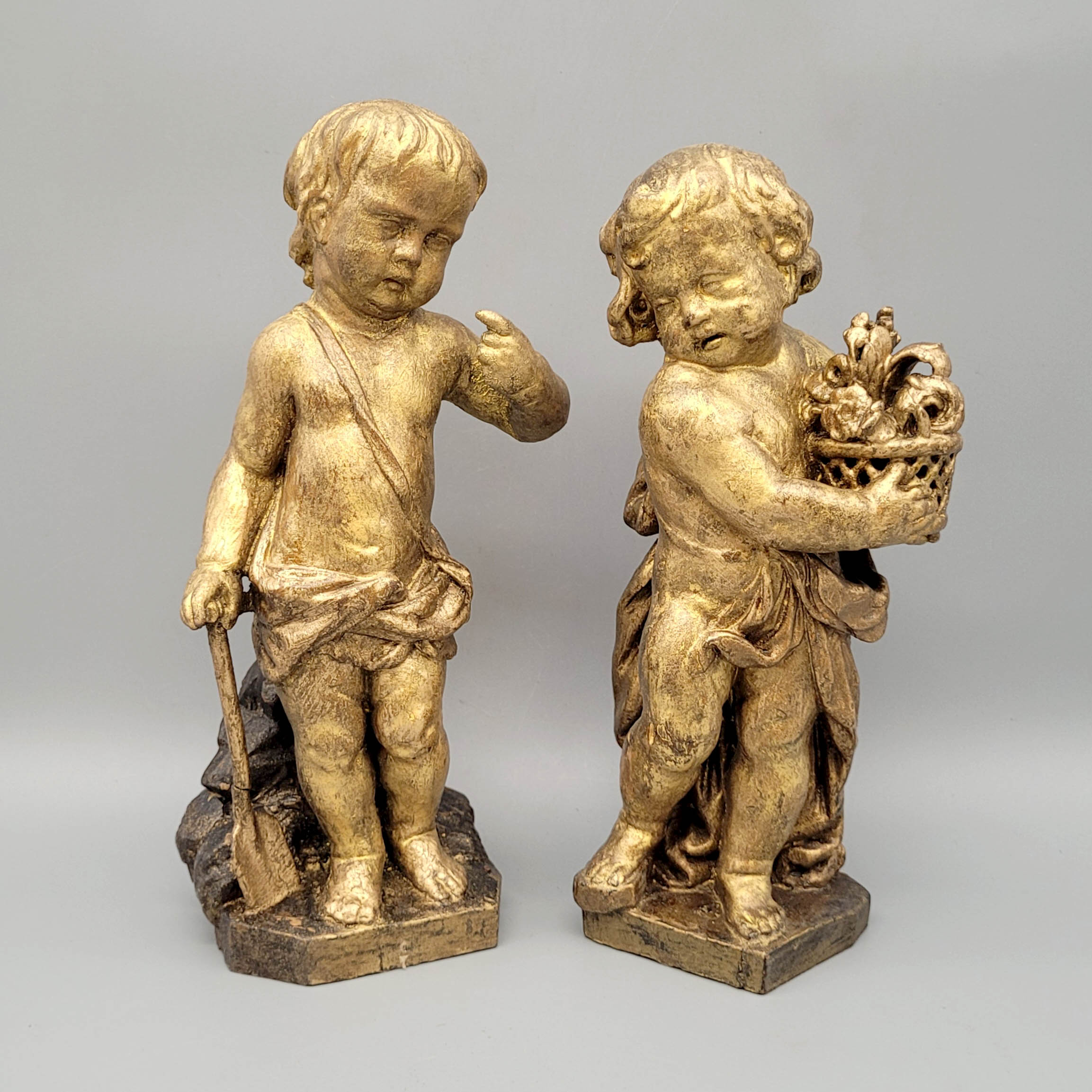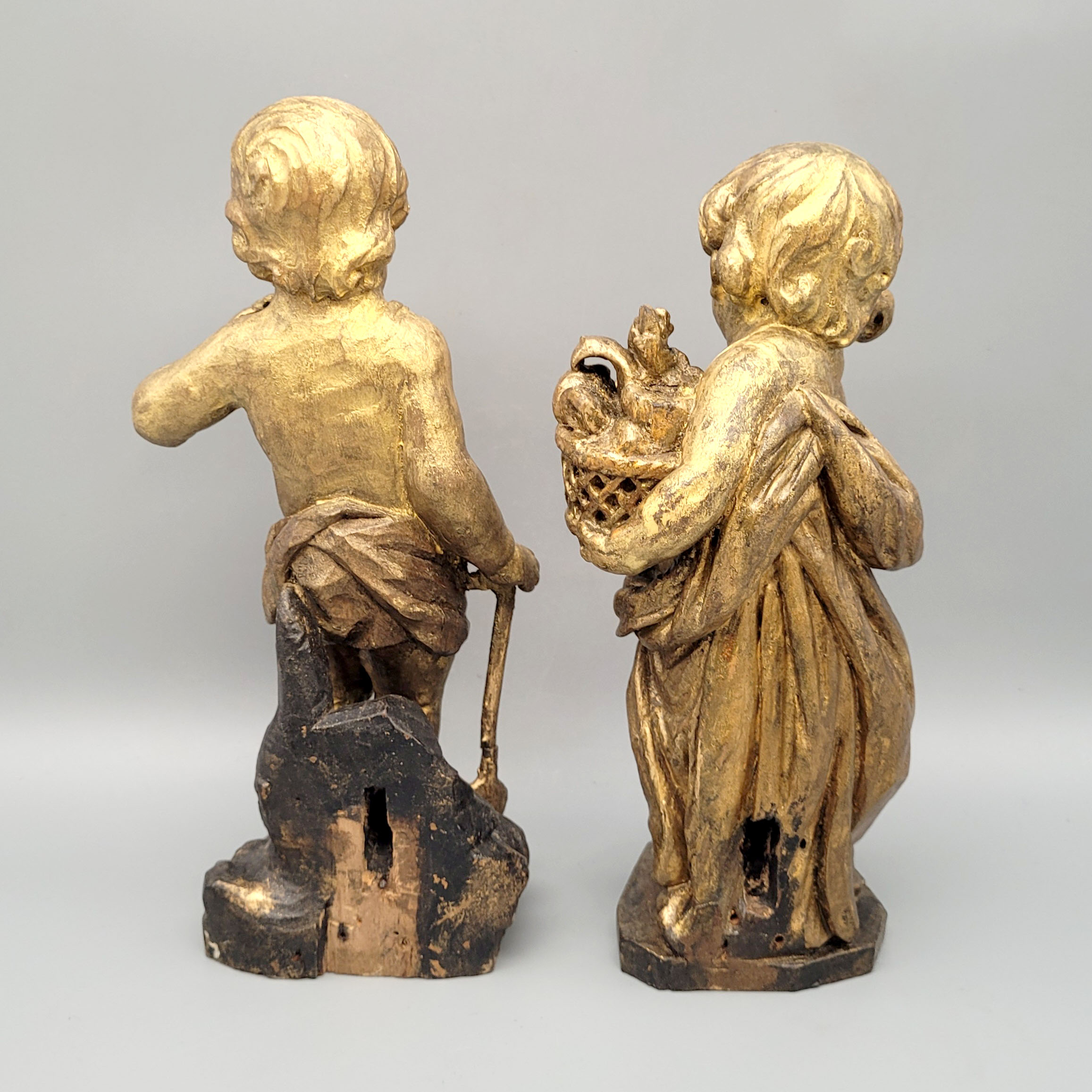 Paar Putten als Jahreszeitenfiguren (Sommer und Herbst)Holz, vollrund geschnitzt, alte Vergoldung, Flämisch 17. Jahrhundert, Höhe ca. 25,5 cm