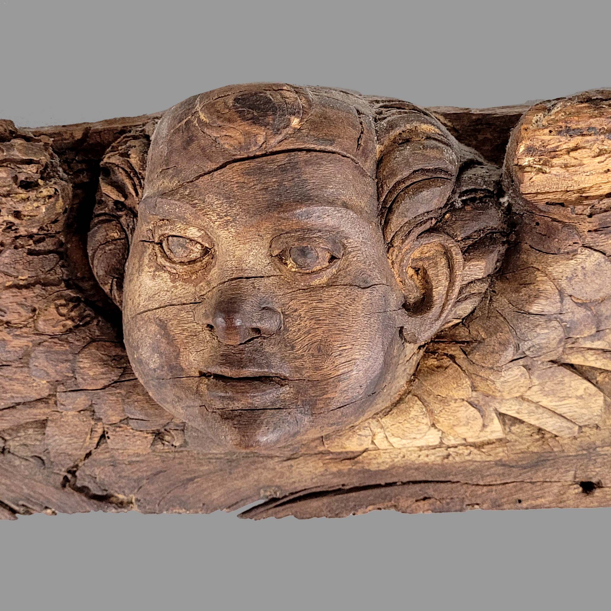 Zwei geflügelte PuttenköpfeReliefbrett, Holz, geschnitzt, Reste farbiger Fassung, Italien, um 1700, 15,5 x 67 cm