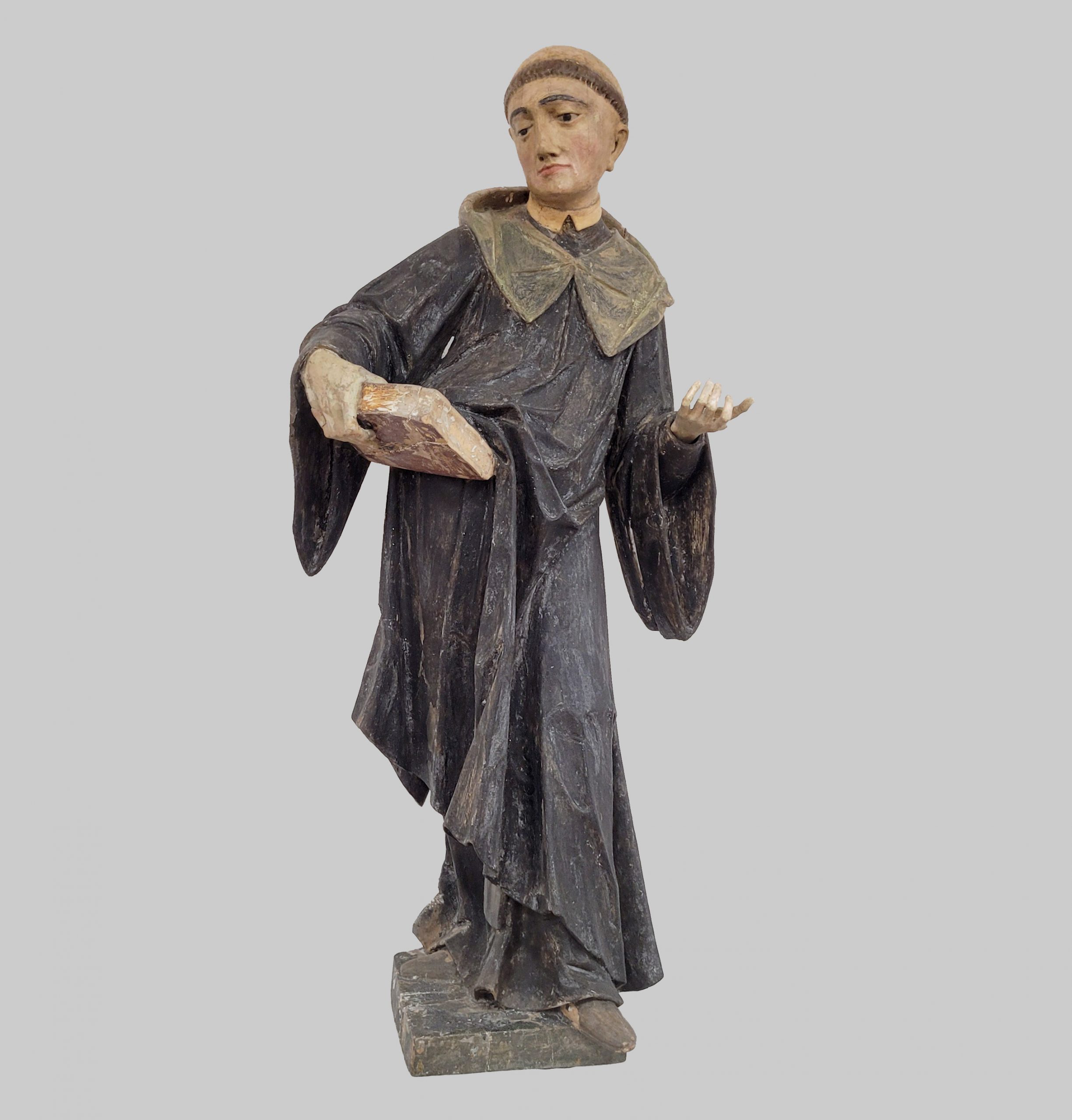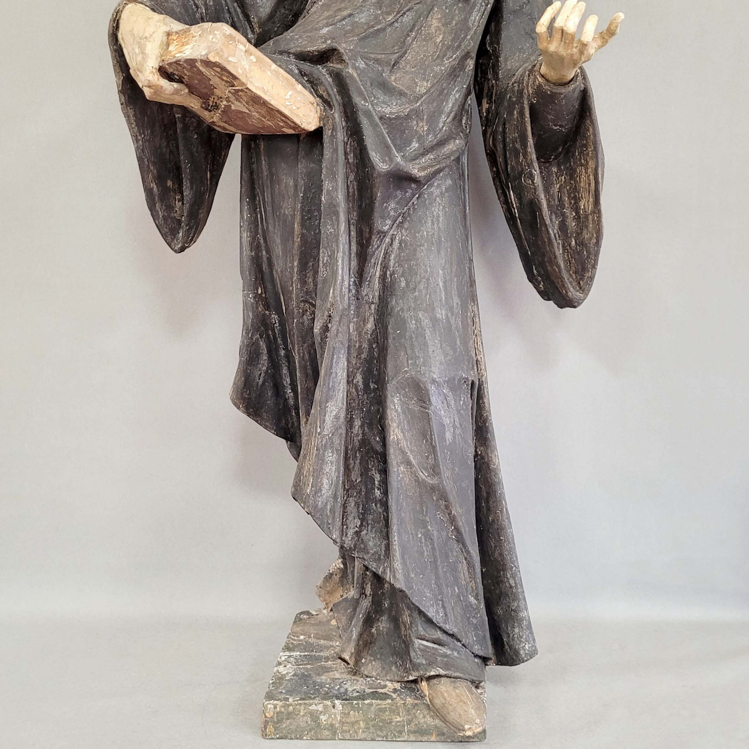 Holz, geschnitzt, rückseitig gehöhlt, originale farbige Fassung, Süddeutsch 18. Jahrhundert, Höhe 109 cm