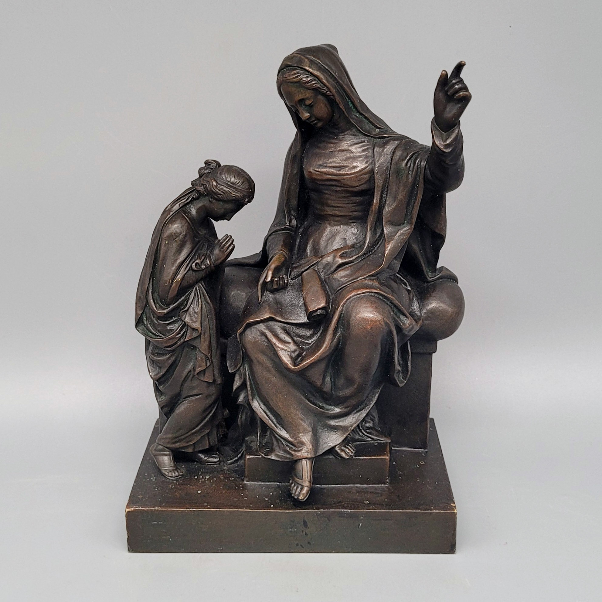 Anna lehrt Maria das LesenBronze, patiniert, Deutsch 19. Jahrhundert, Höhe 19 cm (mit dem Bronzesockel)