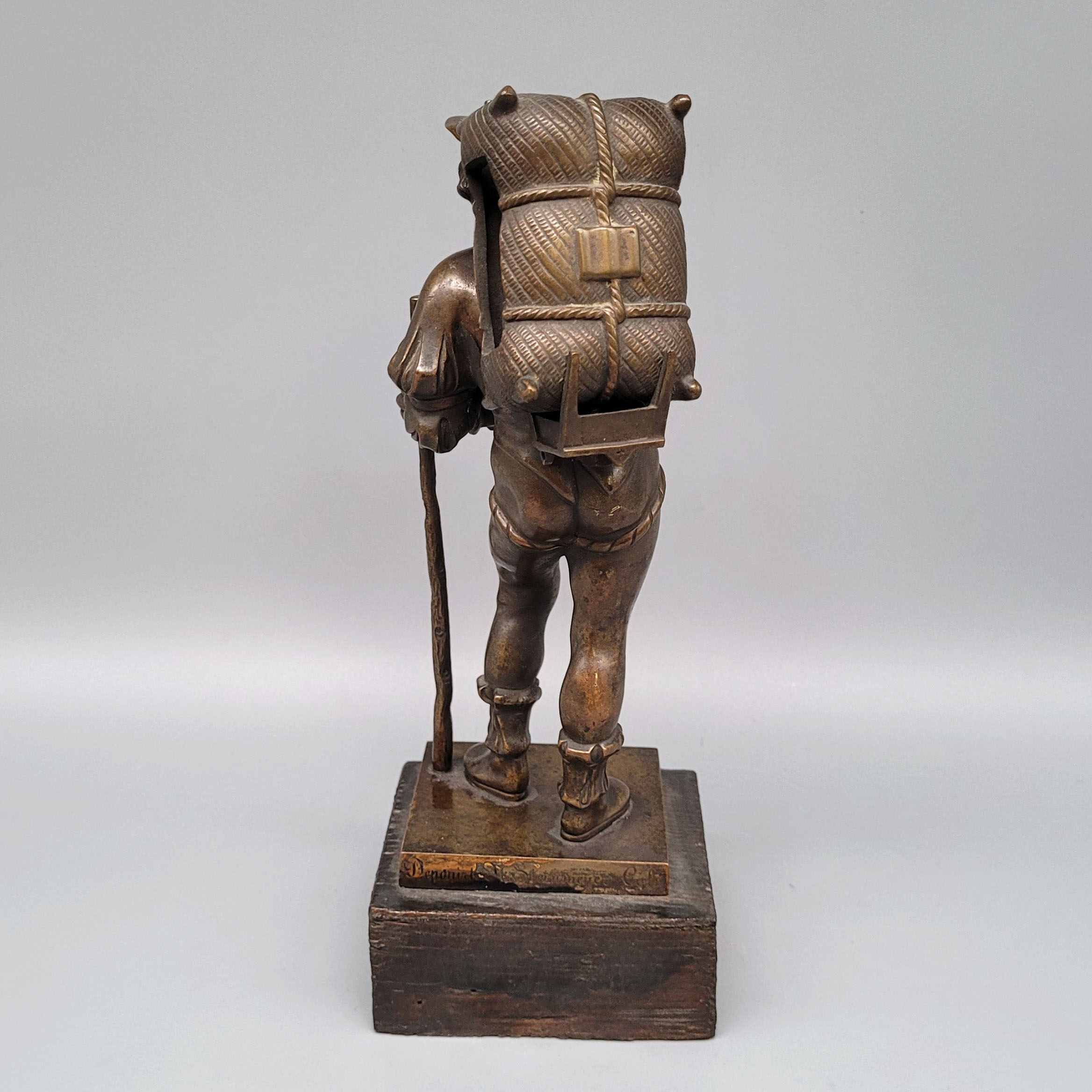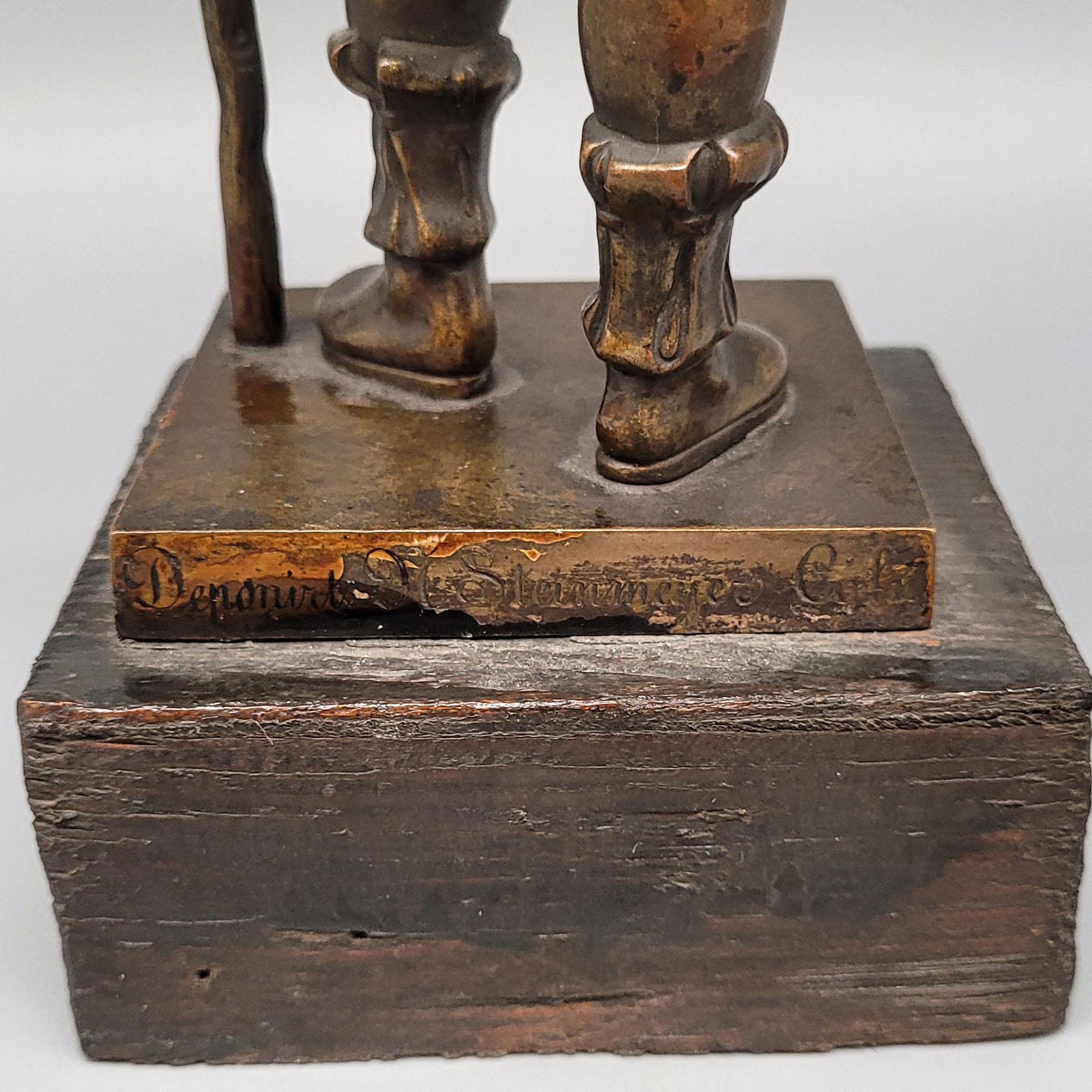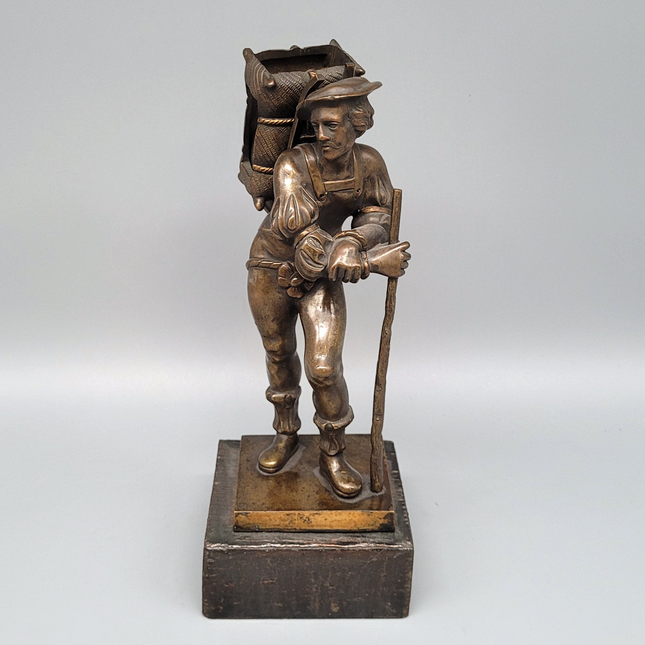 Bronze, auf der Plinthe bezeichnet „Deponirt N. Steinmeyer, Cöln“ (Nikolaus Steinmeyer war am Ende des 19. Jahrhunderts ein bekannter Kölner Antiquitätenhändler. Er hatte seine Geschäftsräume am Wallrafplatz 4-6. Er war hauptsächlich auf Gemälde Alter Meister spezialisiert), Deutsch Ende 19. Jahrhundert, Höhe 24 cm (mit Holzsockel)