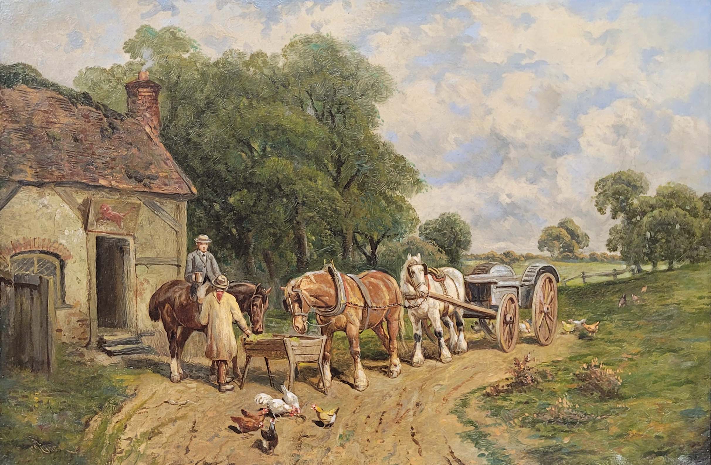 CLARKE, Samuel Joseph (1841-1928): Kutscher mit seinem Fuhrwerk bei der Rast an einem GasthofÖl auf Leinwand, signiert unten links, 51 x 76 cm, Rahmen
