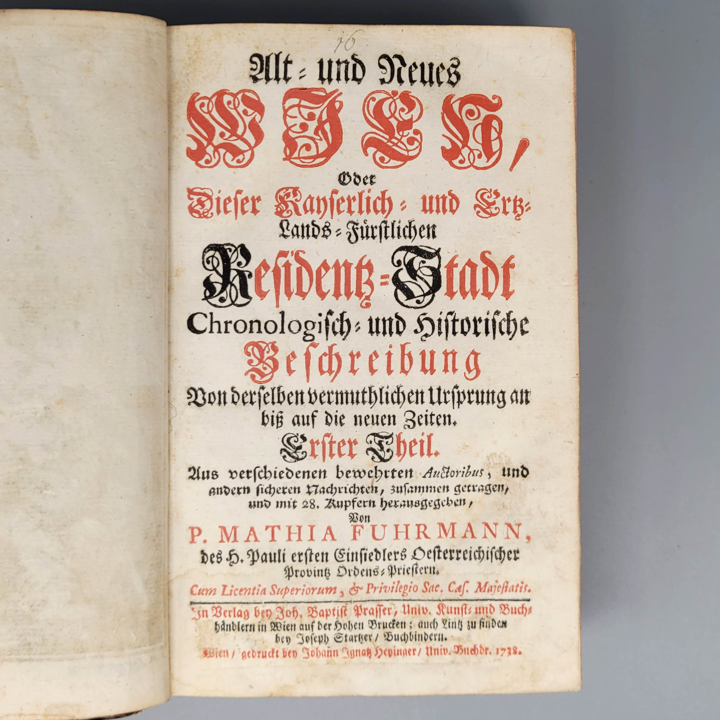 FUHRMANN, Mathias: Alt- und Neues Wien – Oder dieser…Residentz-Stadt chronologisch- und historische Beschreibung…