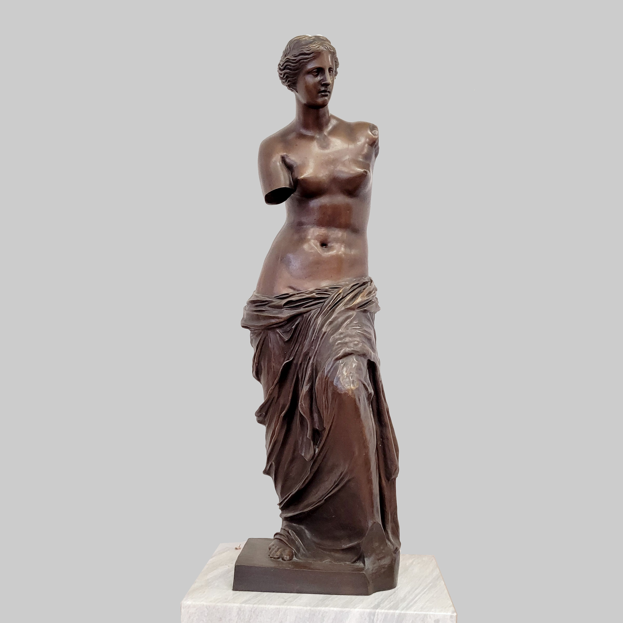 Venus von MiloBronze, verschiedenfarbig patiniert, Gießermarke „Societé des Bronzes de Paris“, nummeriert „939“ und bezeichnet „J.P“, Frankreich 19. Jahrhundert, Höhe 98 cm