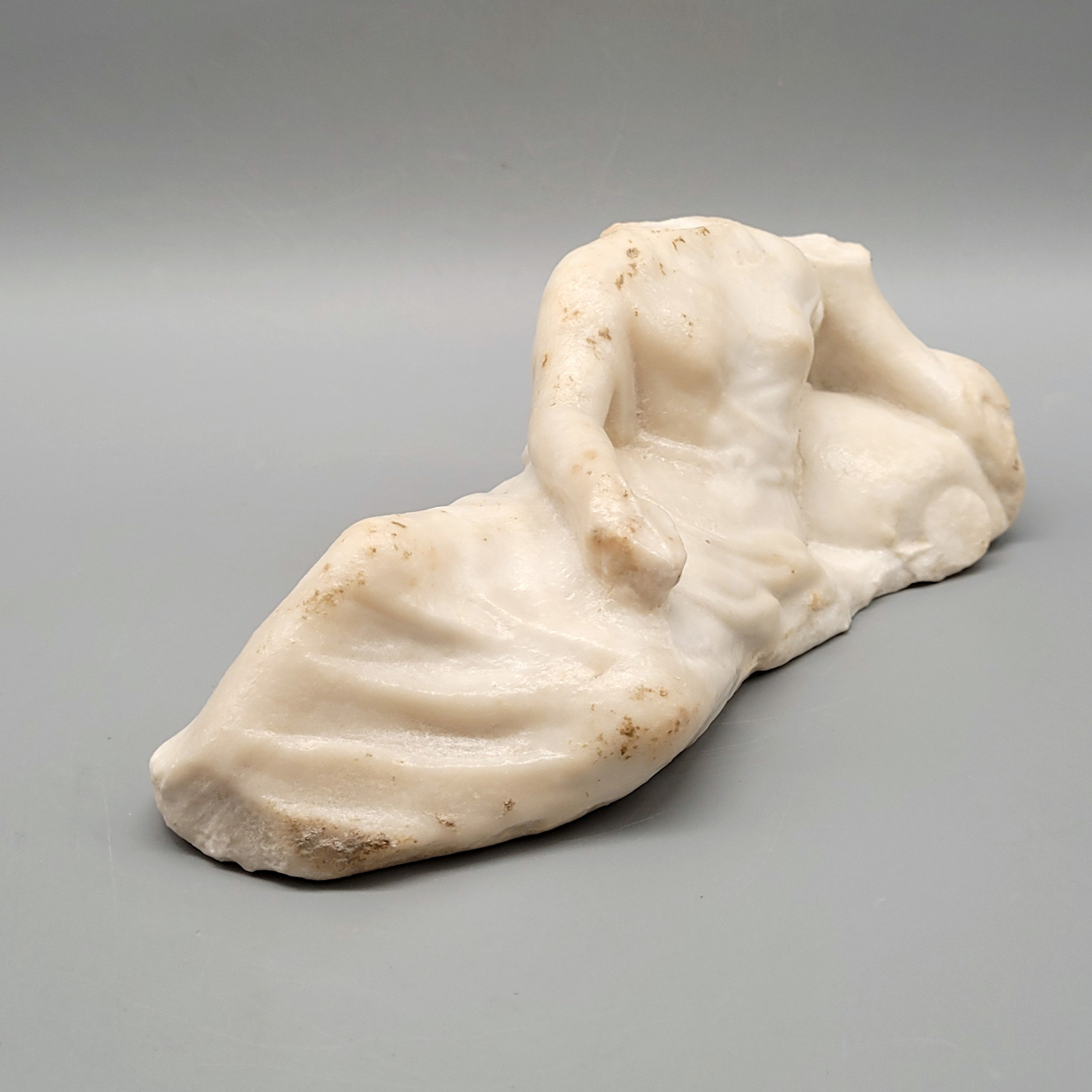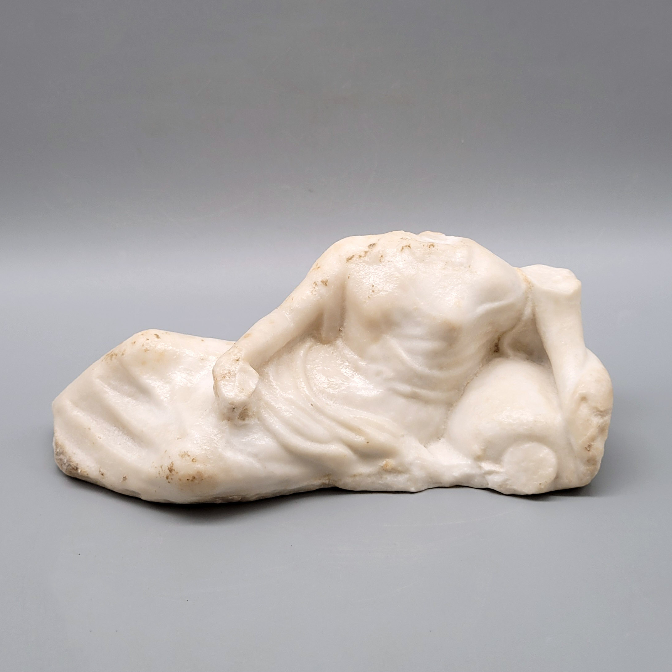 Marmor, Römisch 2.-3- Jahrhundert n. Chr., Länge 19 cm (Kopf und oberer Teil des Füllhorns fehlen Sammlung Dr. J.K., Köln, bis 1987 1987-1990 Sammlung Rechtsanwalt A.F [1907-1990], Köln seitdem im Besitz der Familie)