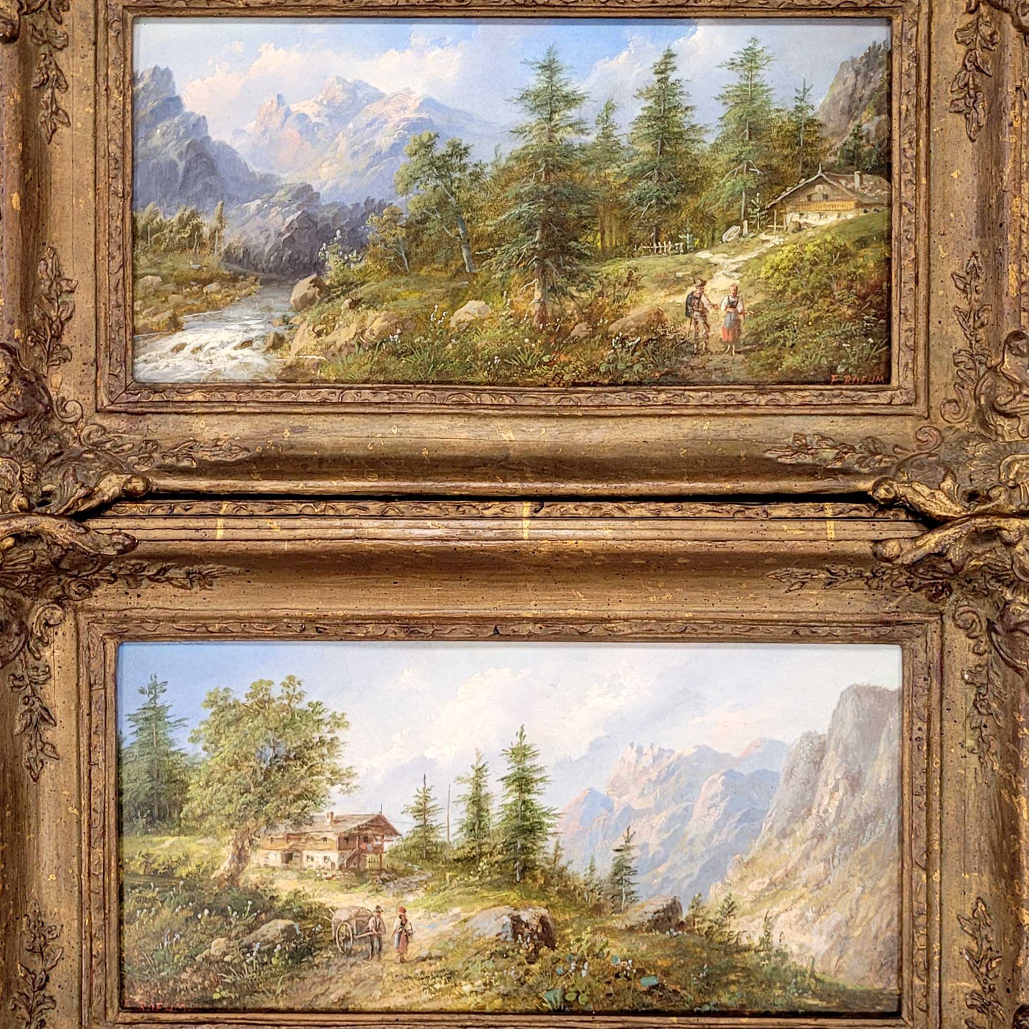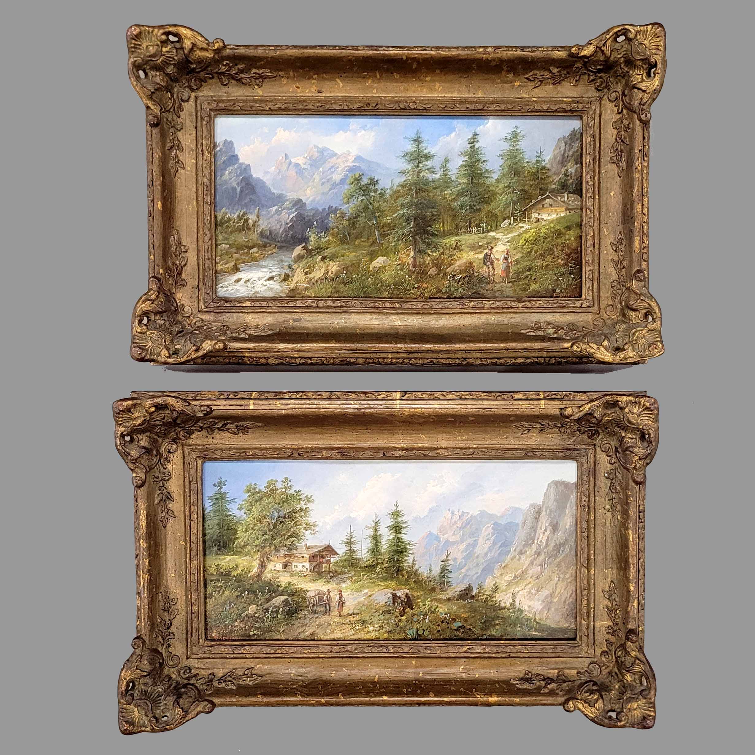 BÖHM, Eduard (1830-1890): GebirgslandschaftenGemäldepaar, Öl auf Holz, signiert unten rechts bzw. unten links, 20 x 40 cm, Rahmen