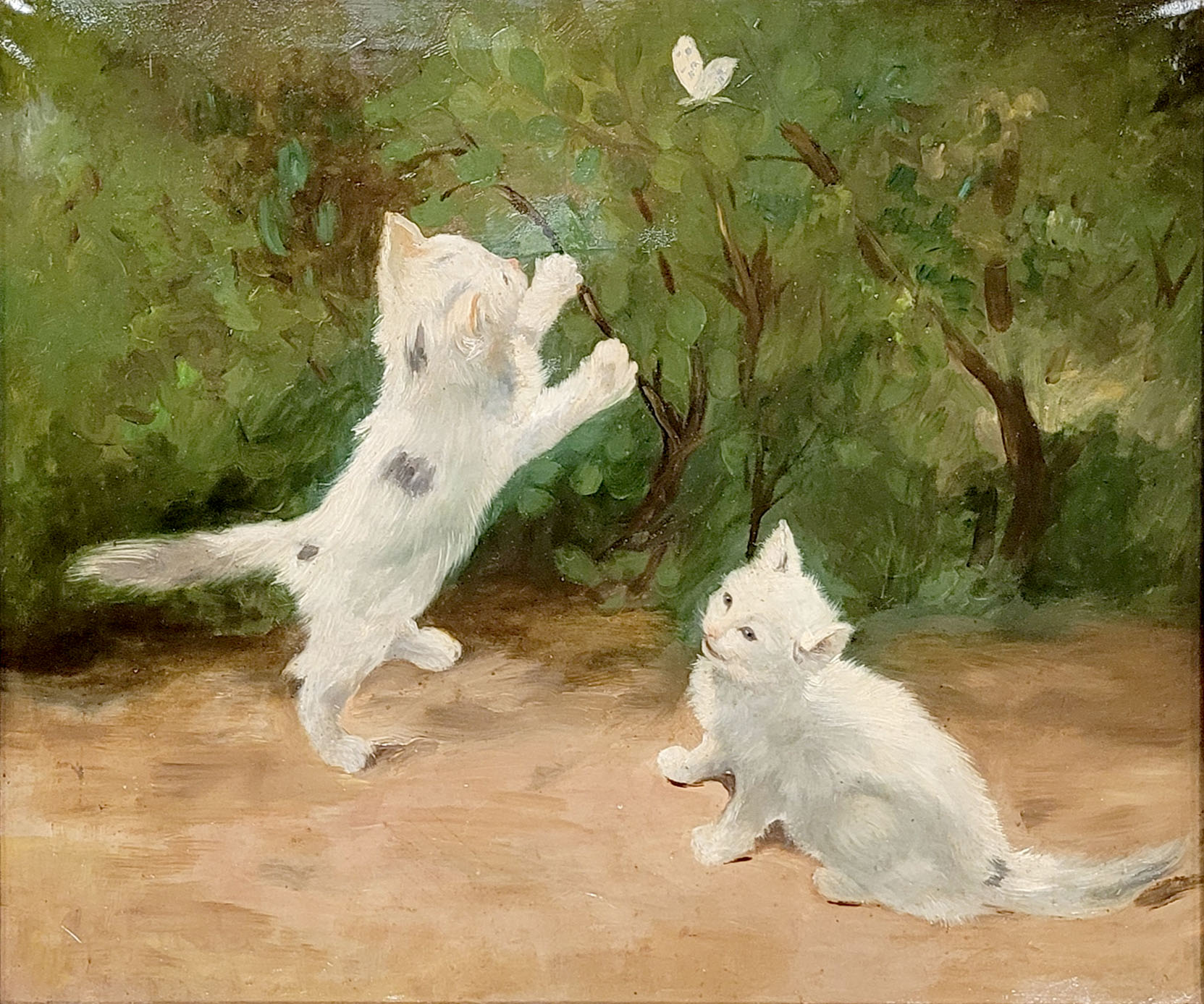 LAUR, Yvonne (1879-1943): zwei spielende Kätzchenzugeschrieben, Öl auf Leinwand, 48 x 57,5 cm, Rahmen