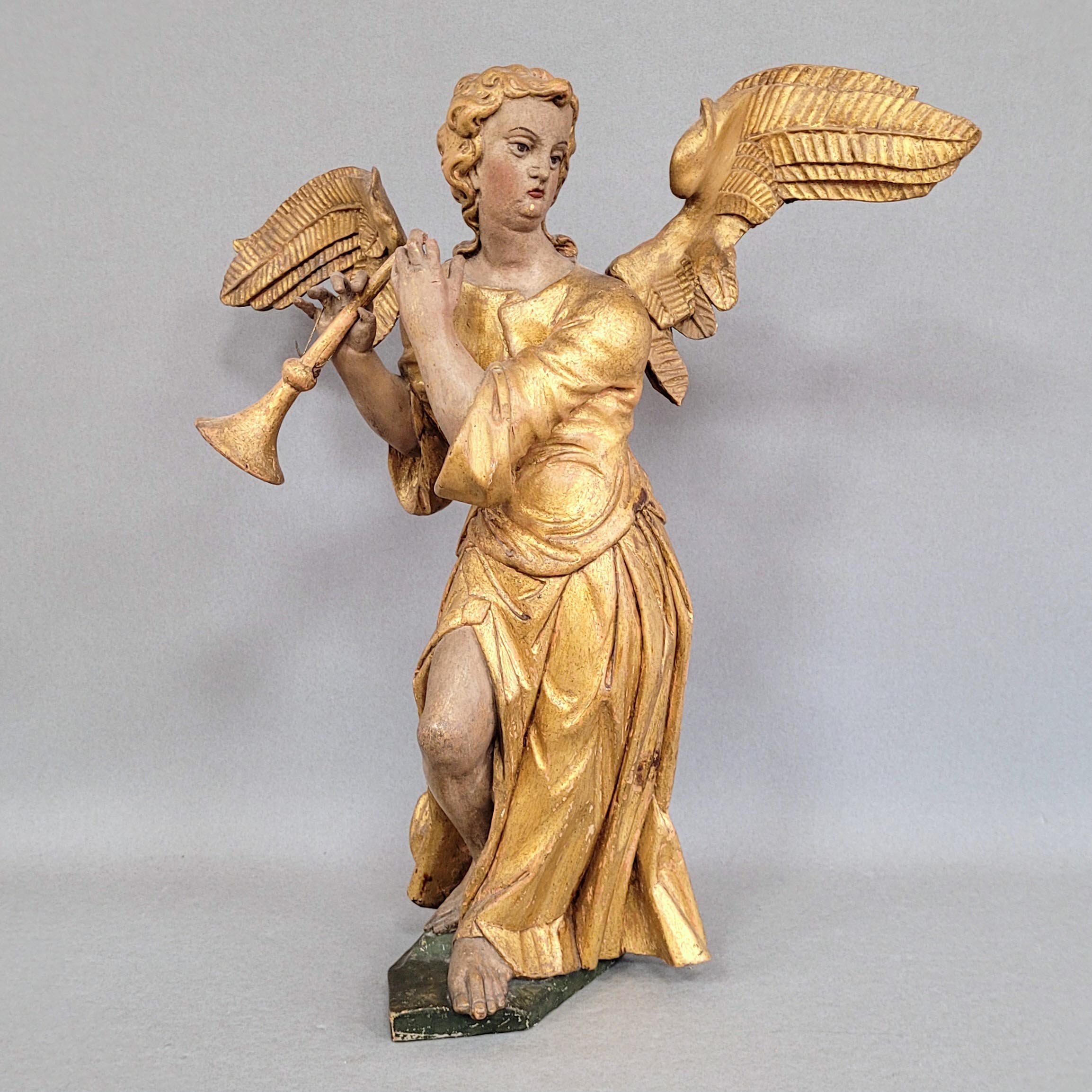 Holz, geschnitzt, rückseitig gehöhlt, alte Fassung und Vergoldung, Süddeutsch, um 1700, Höhe 50 cm