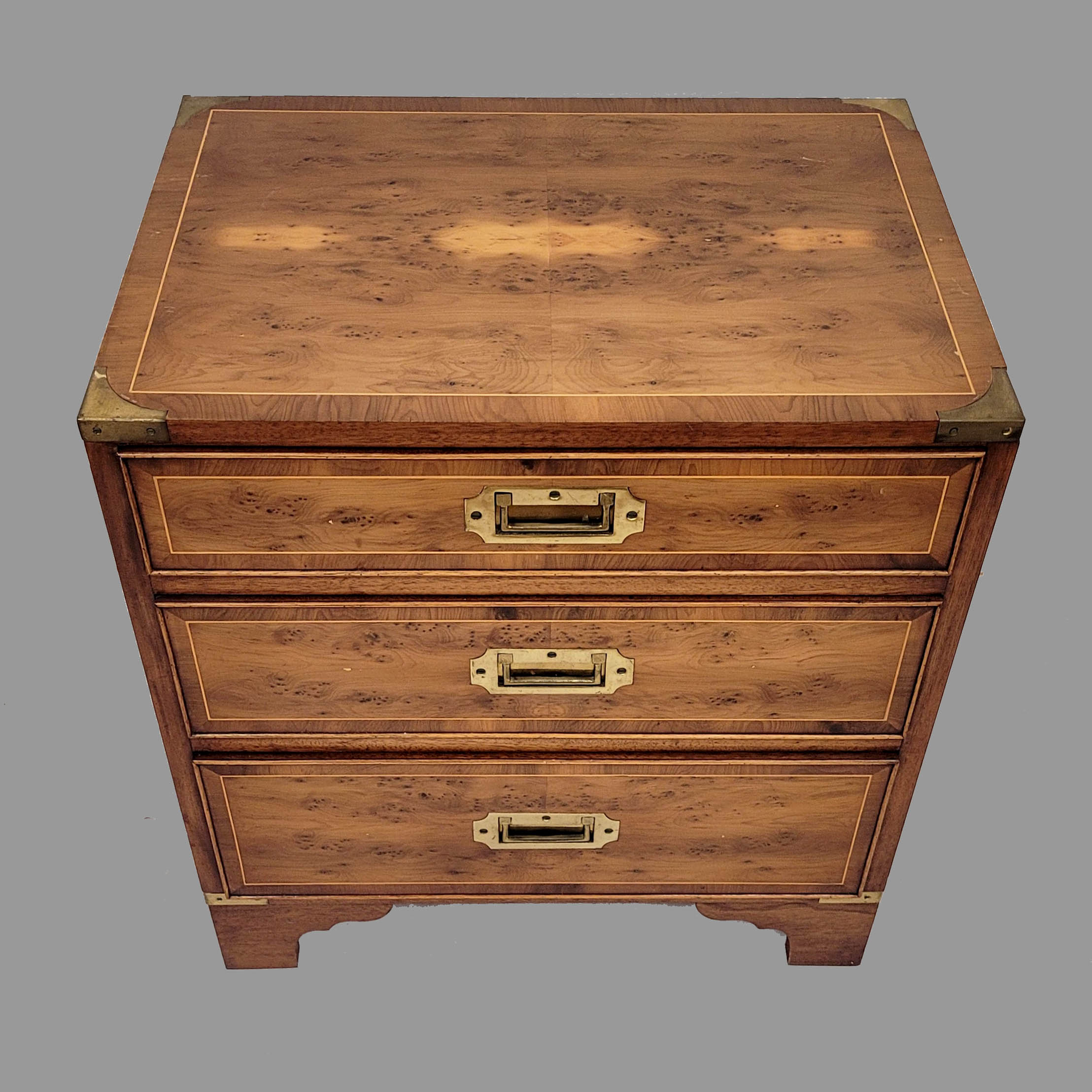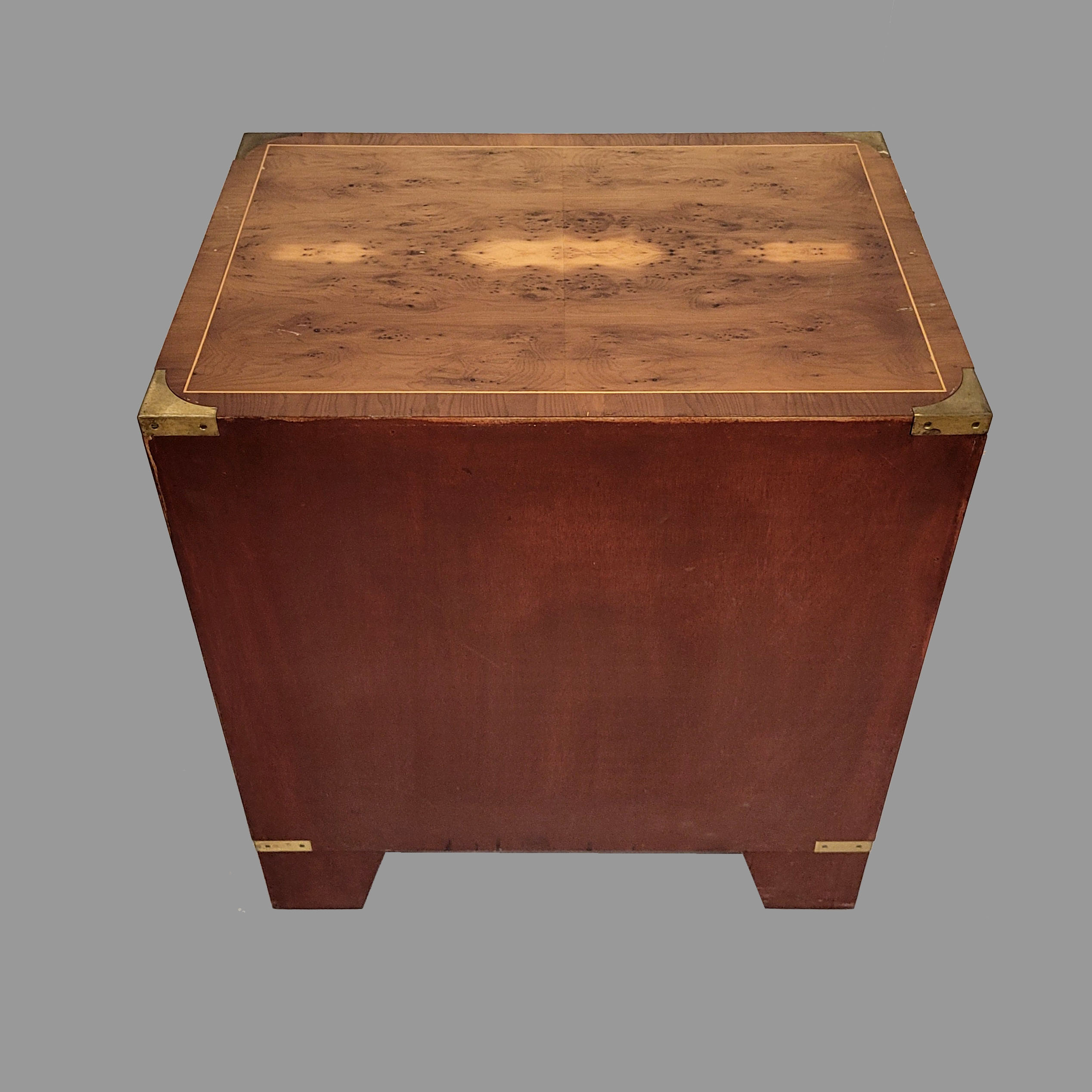 Captain’s chestEibe furniert auf Eiche, Mahagoni, Fadenintarsien, Zwickelstollen, dreischübig, Messingecken und Griffe, seitlich Messingtragegriffe, England, um 1900, 60 x 56 x 40,5 cm