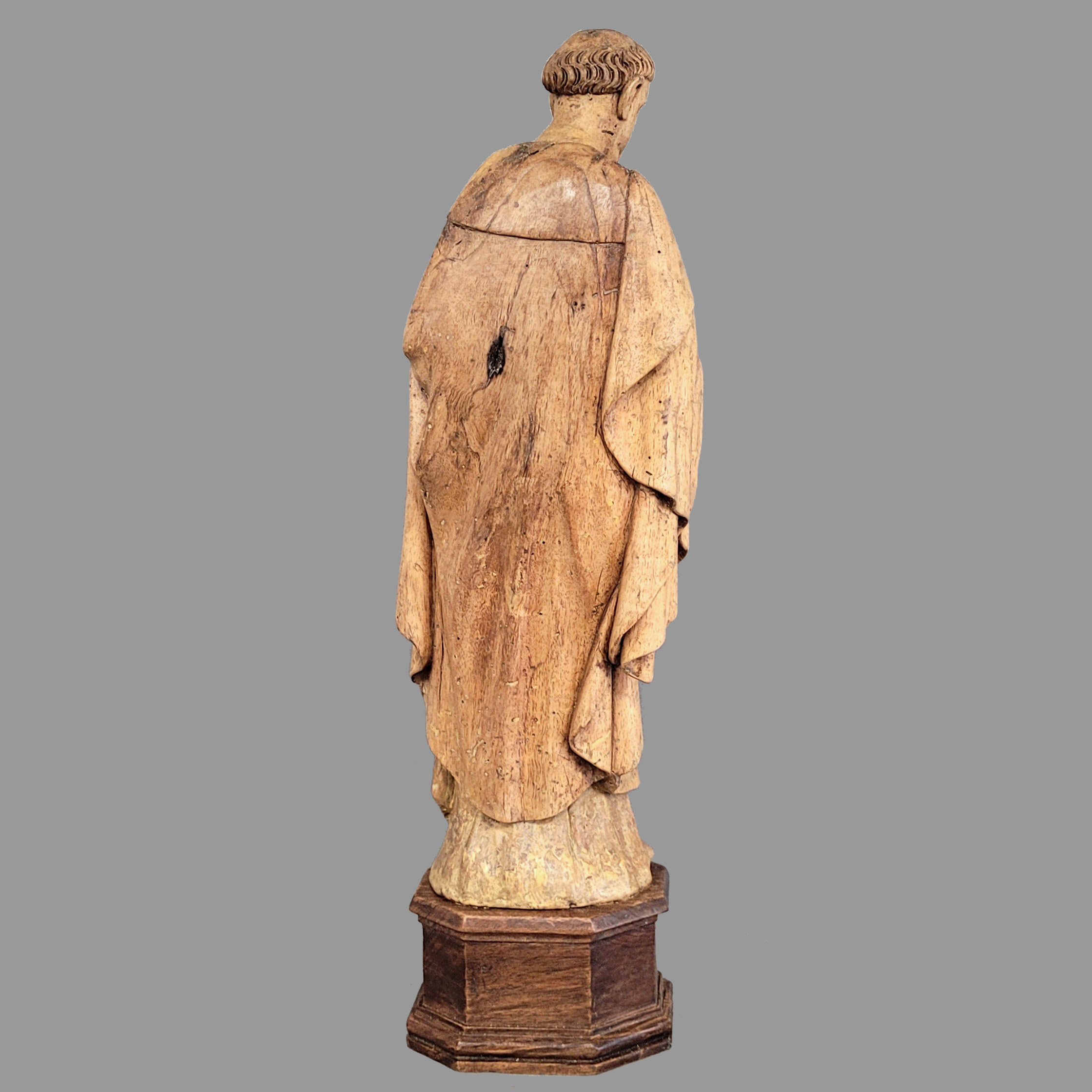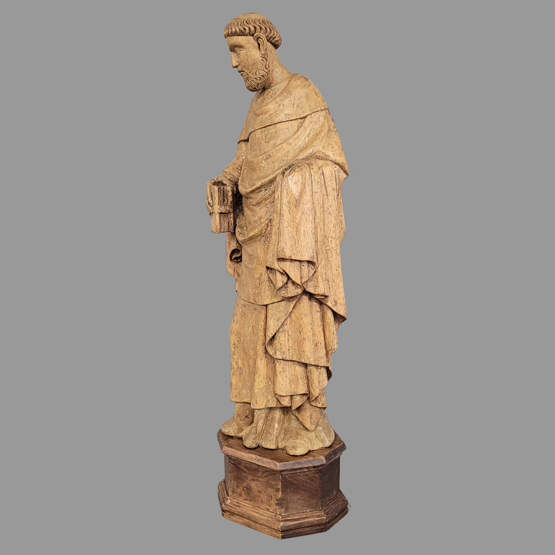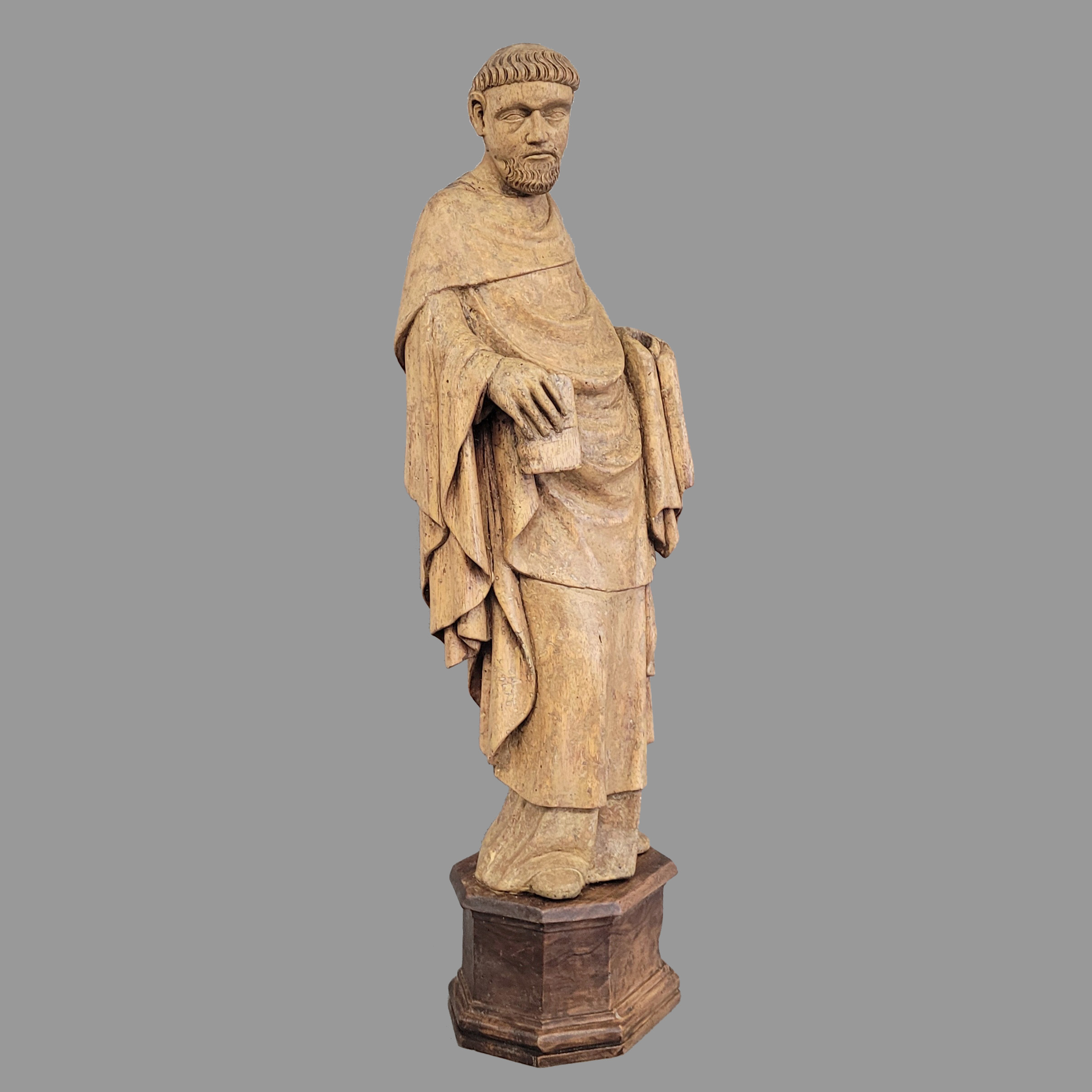 Nussholz, vollrund geschnitzt, Mittelitalien, 14. Jahrhundert, Höhe 43 cm, Höhe mit späterem Sockel 51 cm