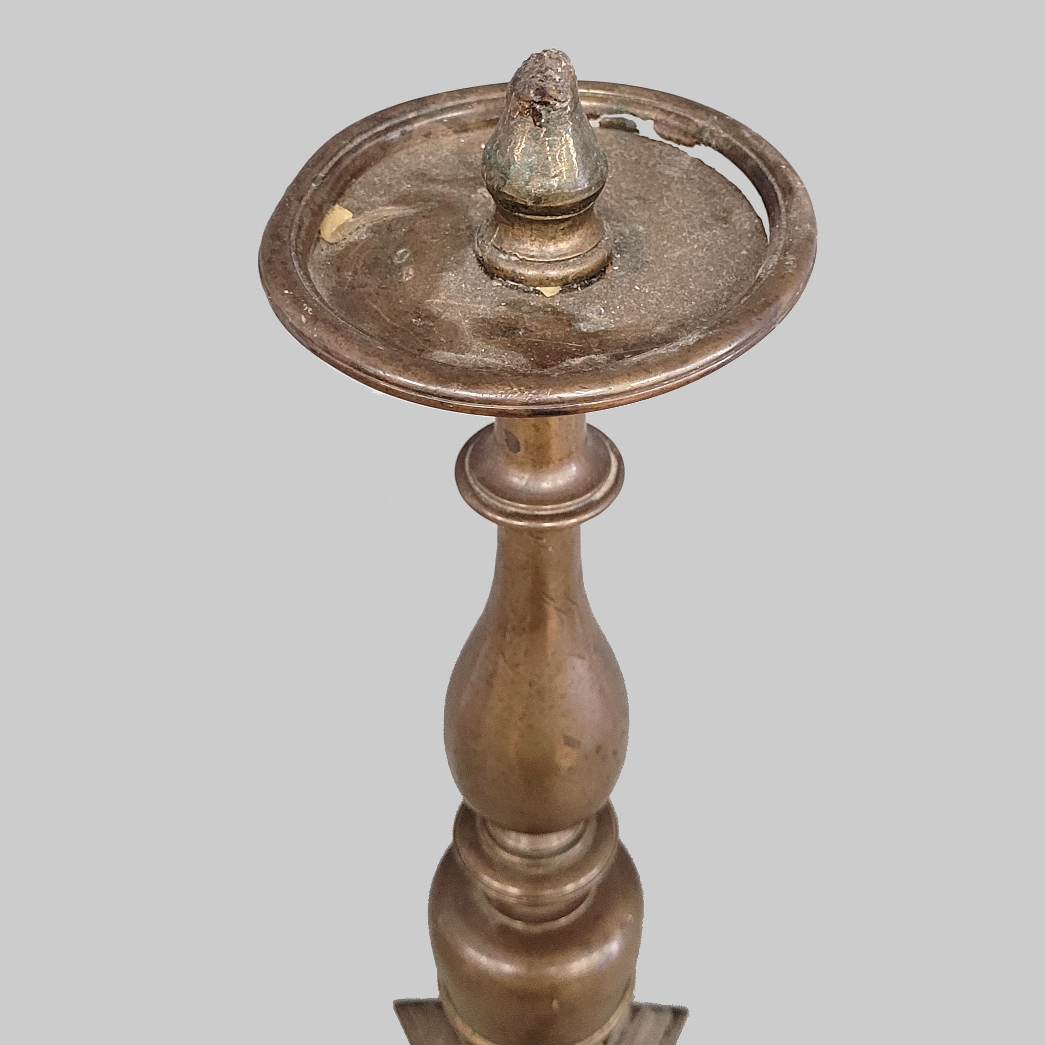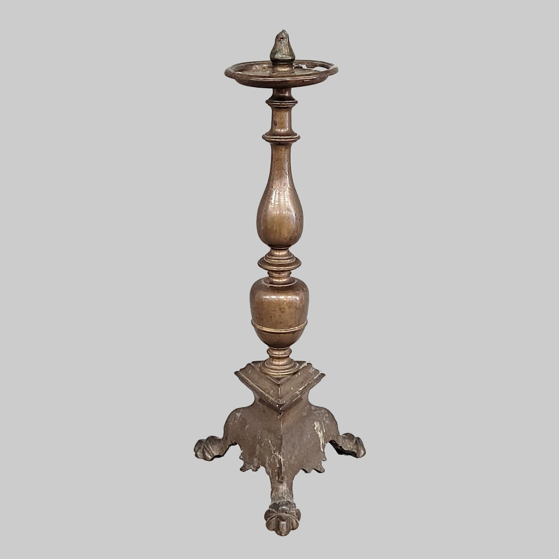 LeuchterBronze, stilisierte Tatzenfüße, Tropfschale (beschädigt), Deutsch, um 1700, Höhe 55 cm (mit abgebrochenem Dorn)