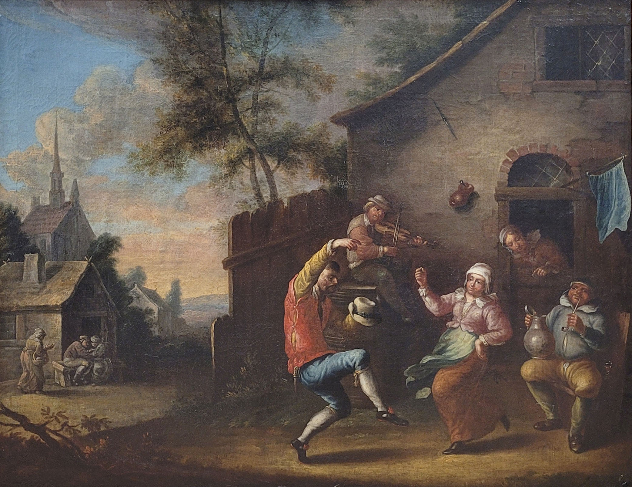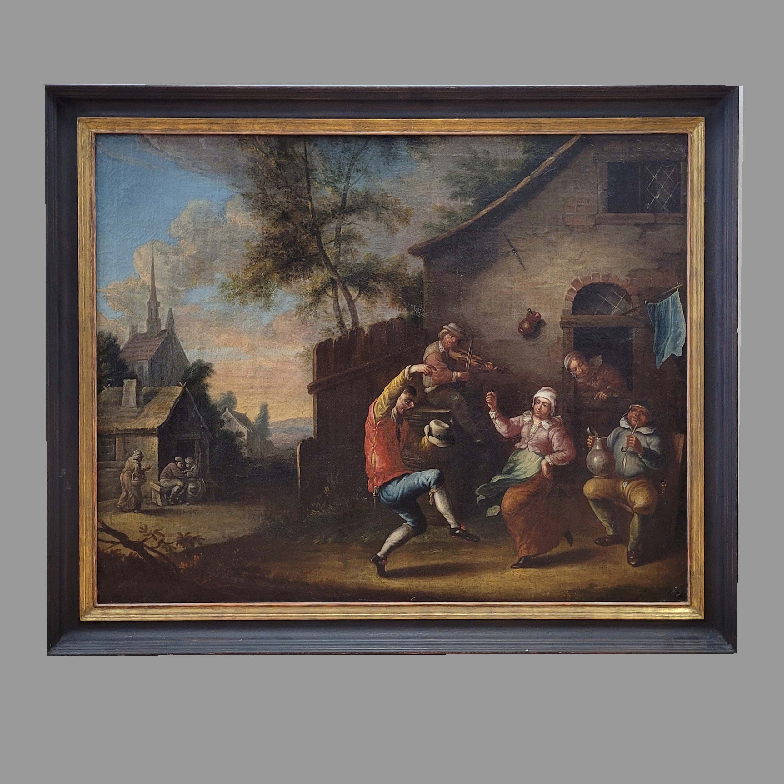 FLÄMISCHER MEISTER (17. Jh.): Bauerntanz vor einer SchenkeÖl auf Leinwand, alt doubliert, 63,5 x 80 cm, Rahmen