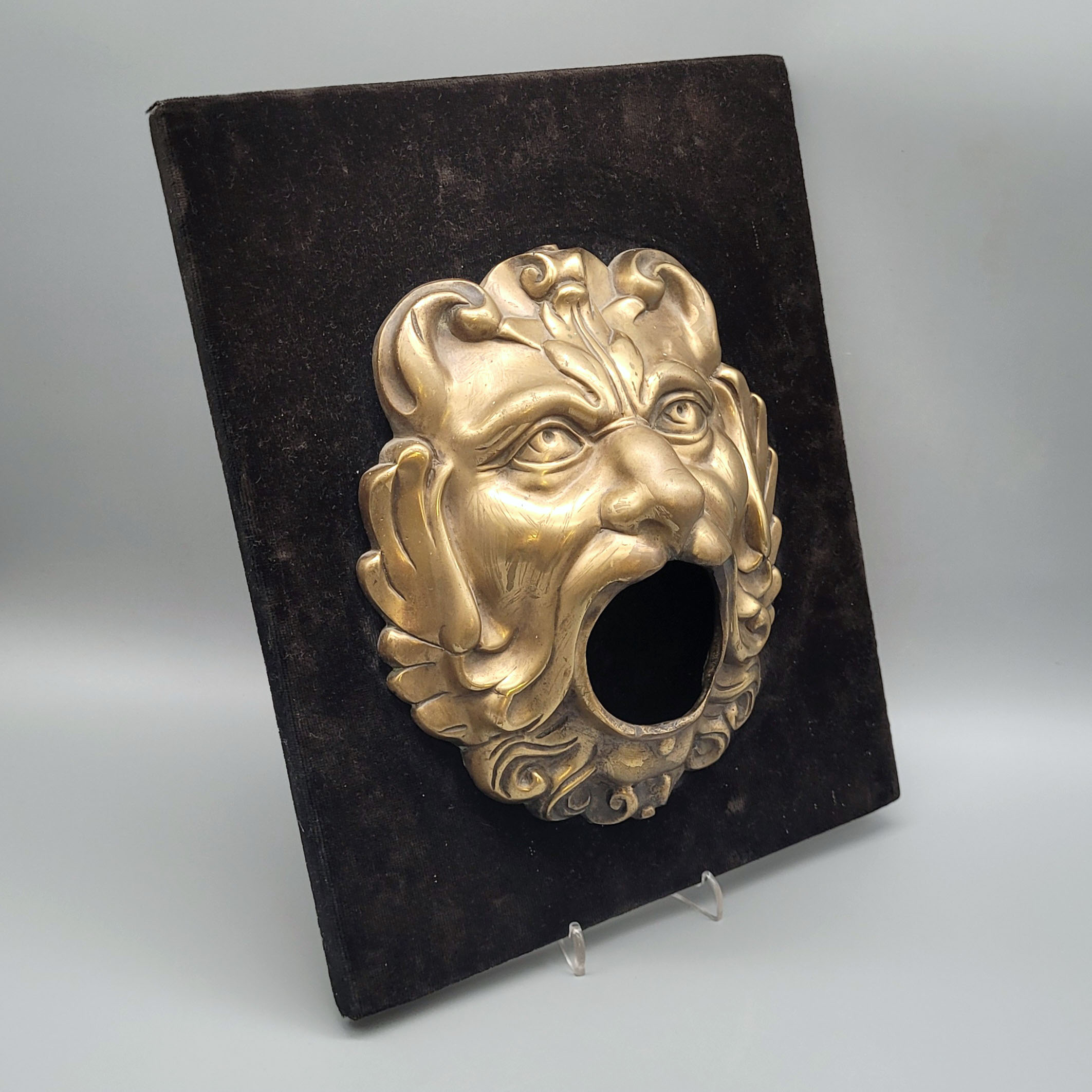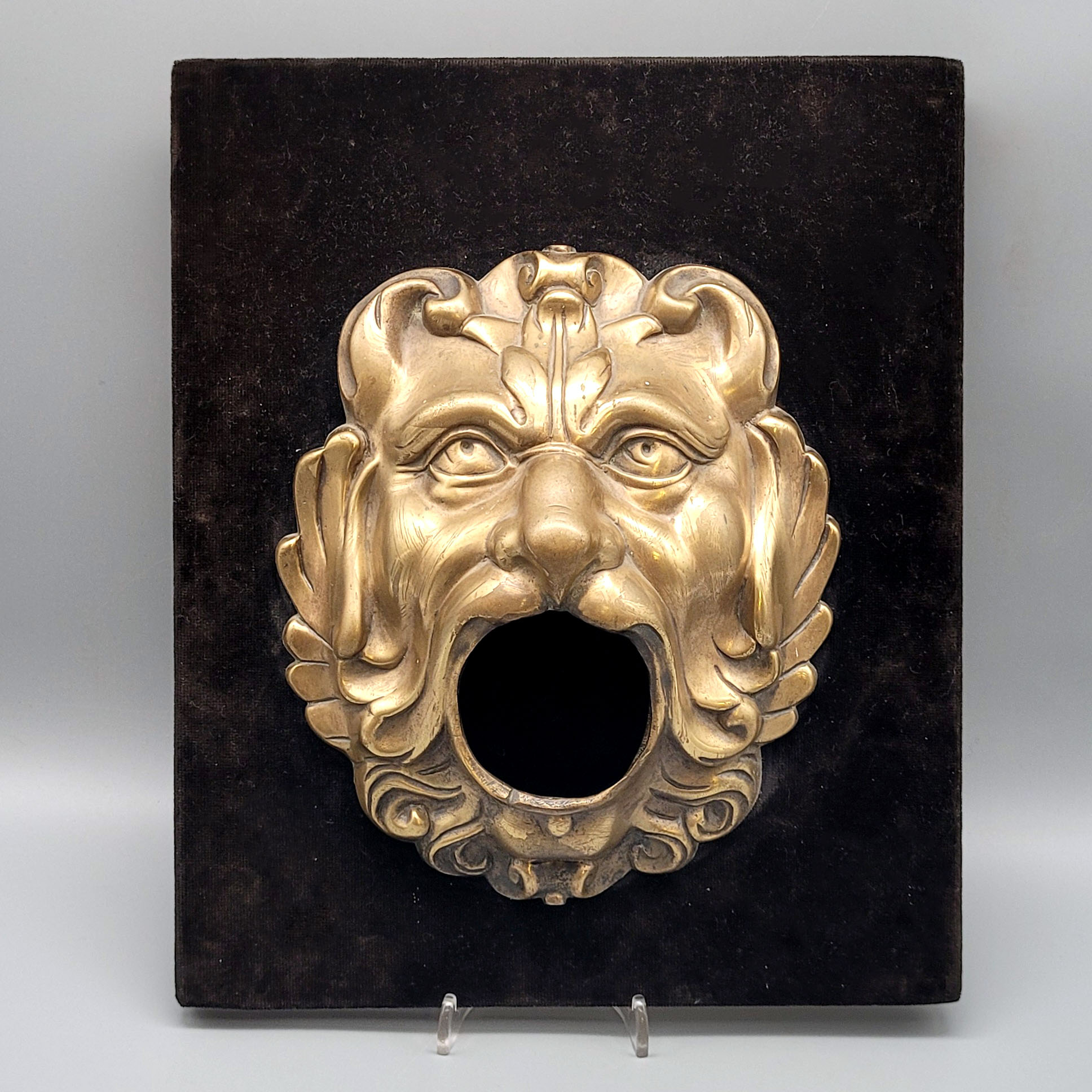Wasserspeier im Form eines LöwenkopfesBronze, montiert auf schwarzes Samtbrett, Flämisch 18./19. Jahrhundert, Höhe 22 cm (ohne Brett)