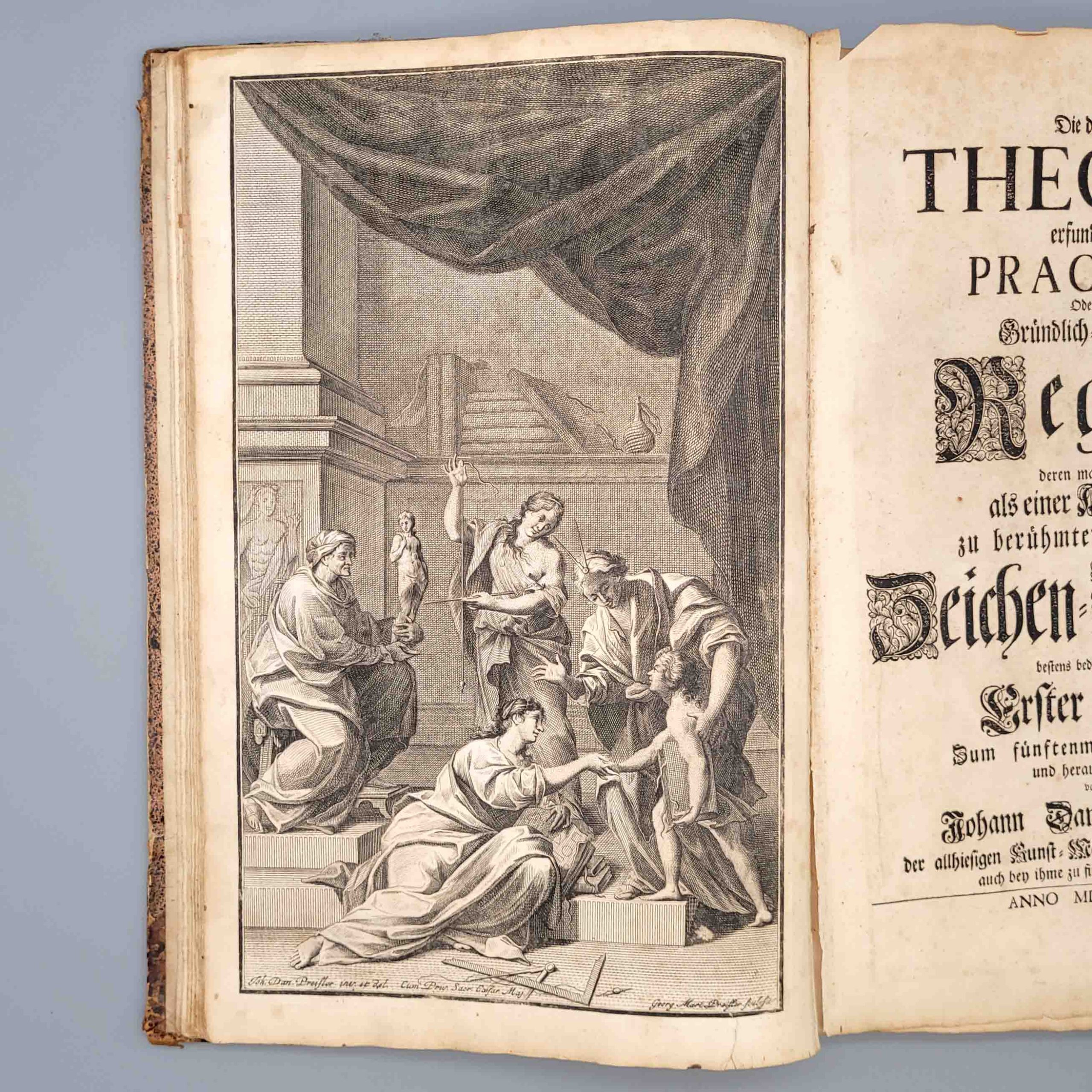 Dritte Auflage, Nürnberg 1743 beigebunden PREIßLER, Johann Daniel, Die durch Theorie erfundene Practic – oder gründlich verfasste Reguln derer man sich als einer Anleitung zu berühmter Künstlere Zeichen-Wercken bestens bedienen kann, Band I-III, Nürnberg 1744 PREIßLER, Johann Daniel, Gründliche Anleitung welcher man sich im Nachzeichnen schöner Landschafften oder Prospecten bedienen kann…, Nürnberg 1740 (Halbledereinband der Zeit)