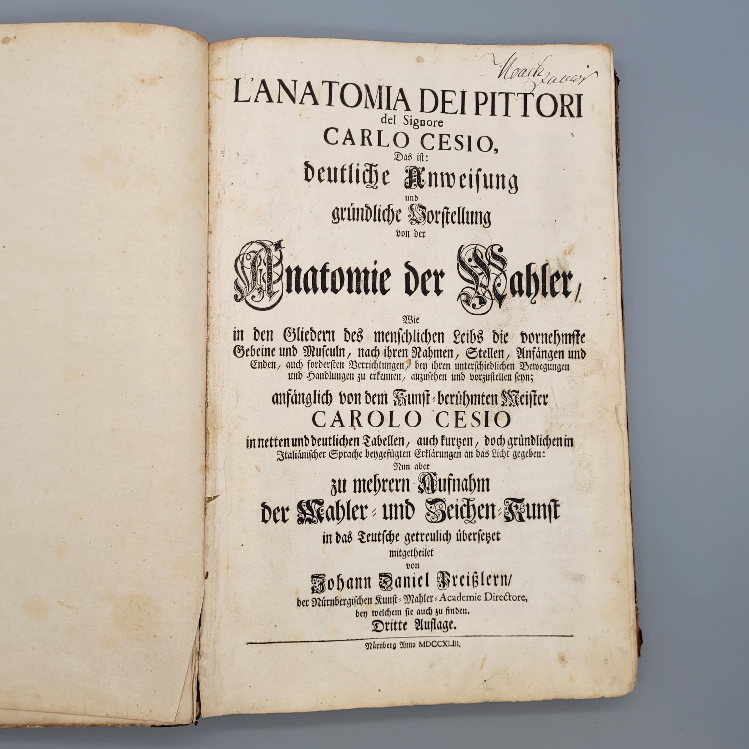 PREIßLER Johann Daniel: L’anatomia dei pittori del Signore Carlo Cesio – Das ist deutliche Anweisung und gründliche Vorstellung von der Anatomie der Mahler