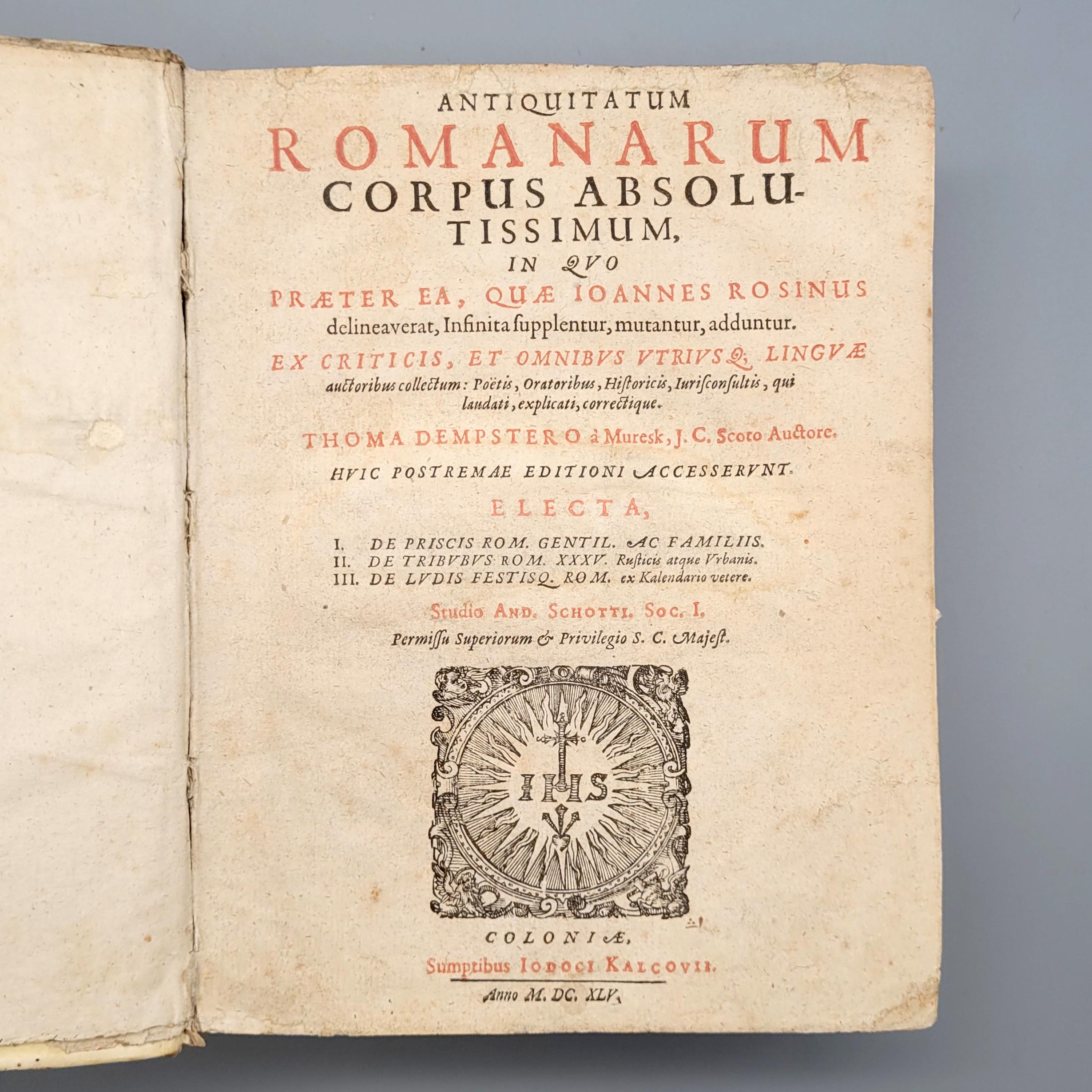 ROSINUS, Johannes / DEMPSTER, Thomas: Antiquitatum Romanarum corpus absolutissimumKöln (Jodocus Kalcov) 1645 (Pergamenteinband der Zeit)Wir weisen darauf hin, dass das Buch nicht kollationiert ist