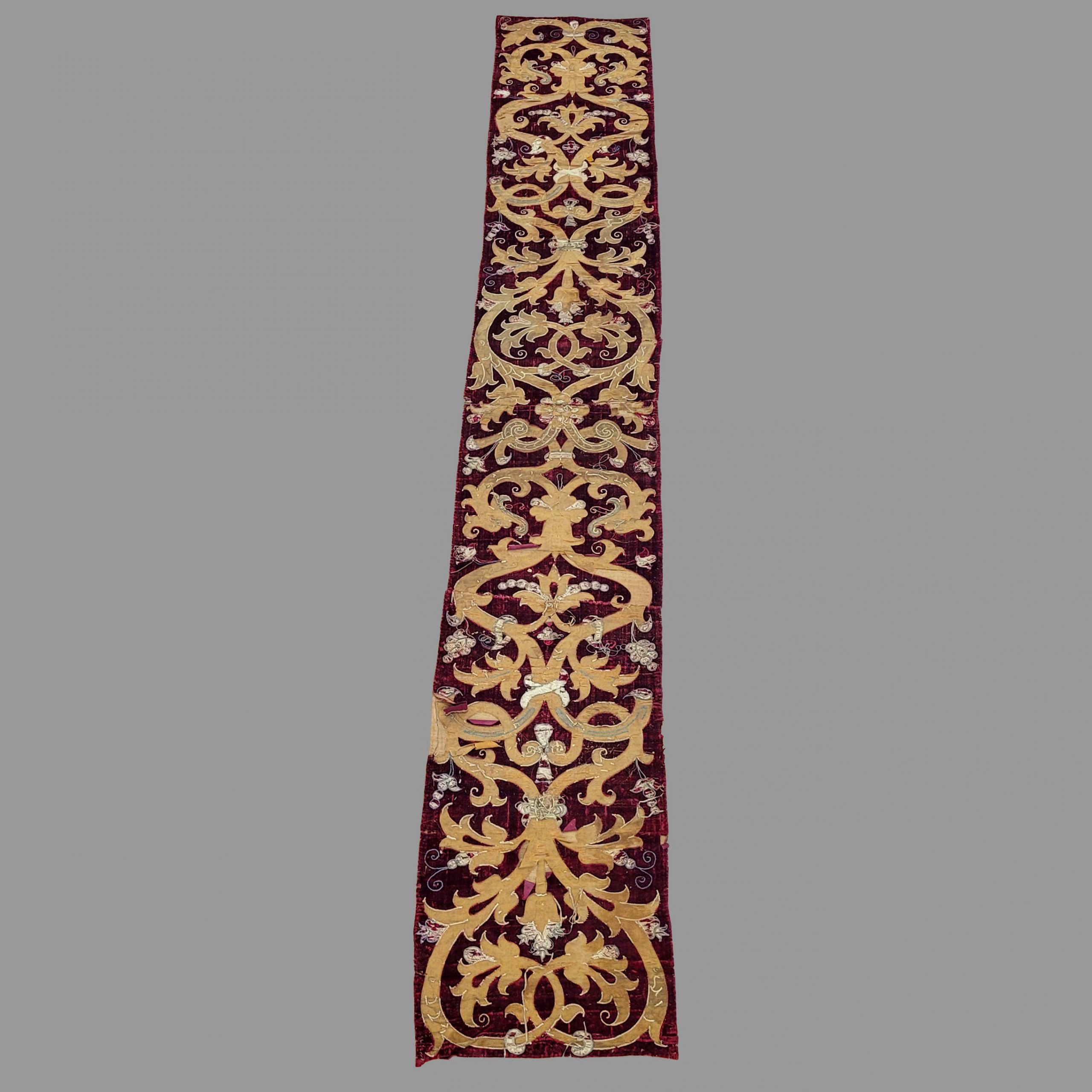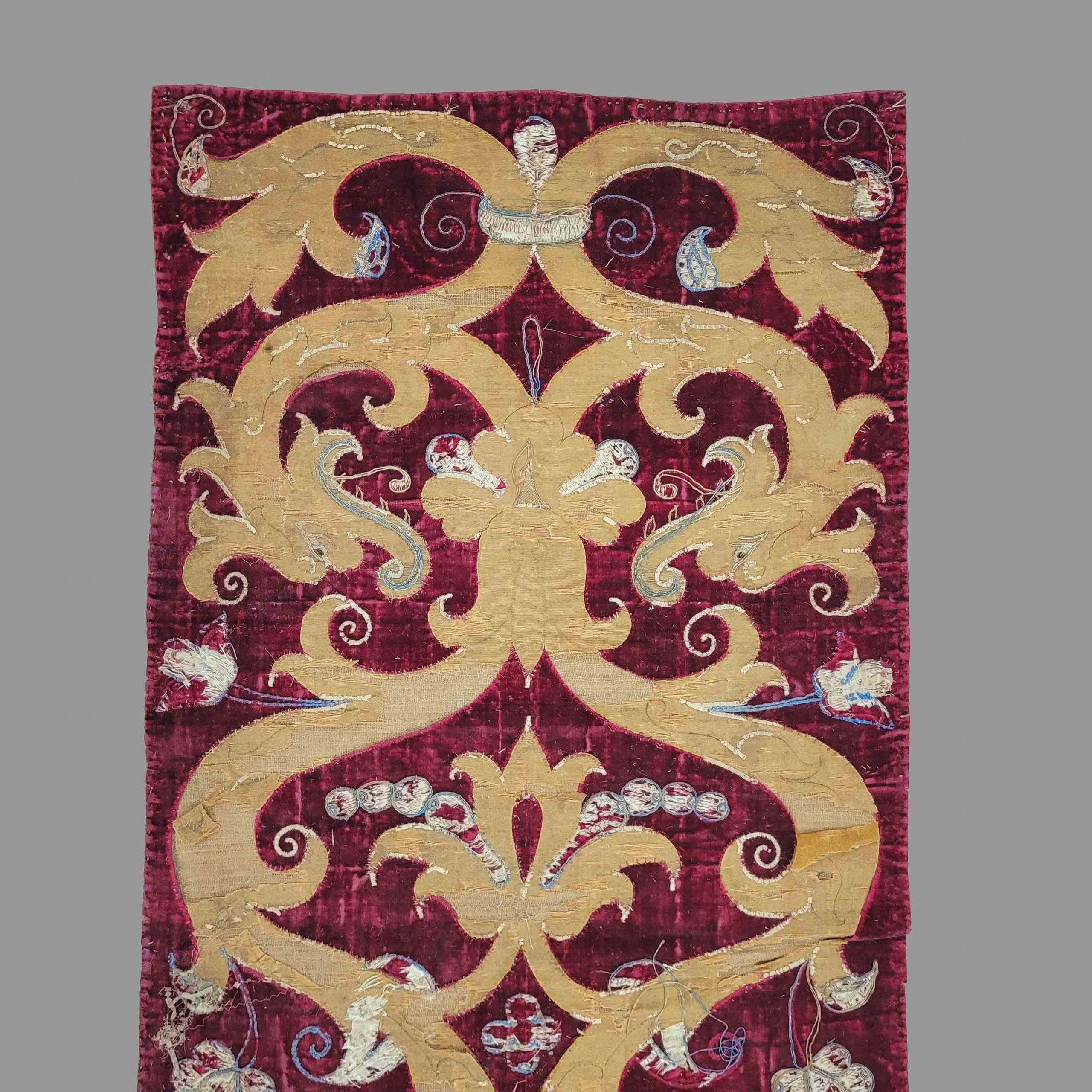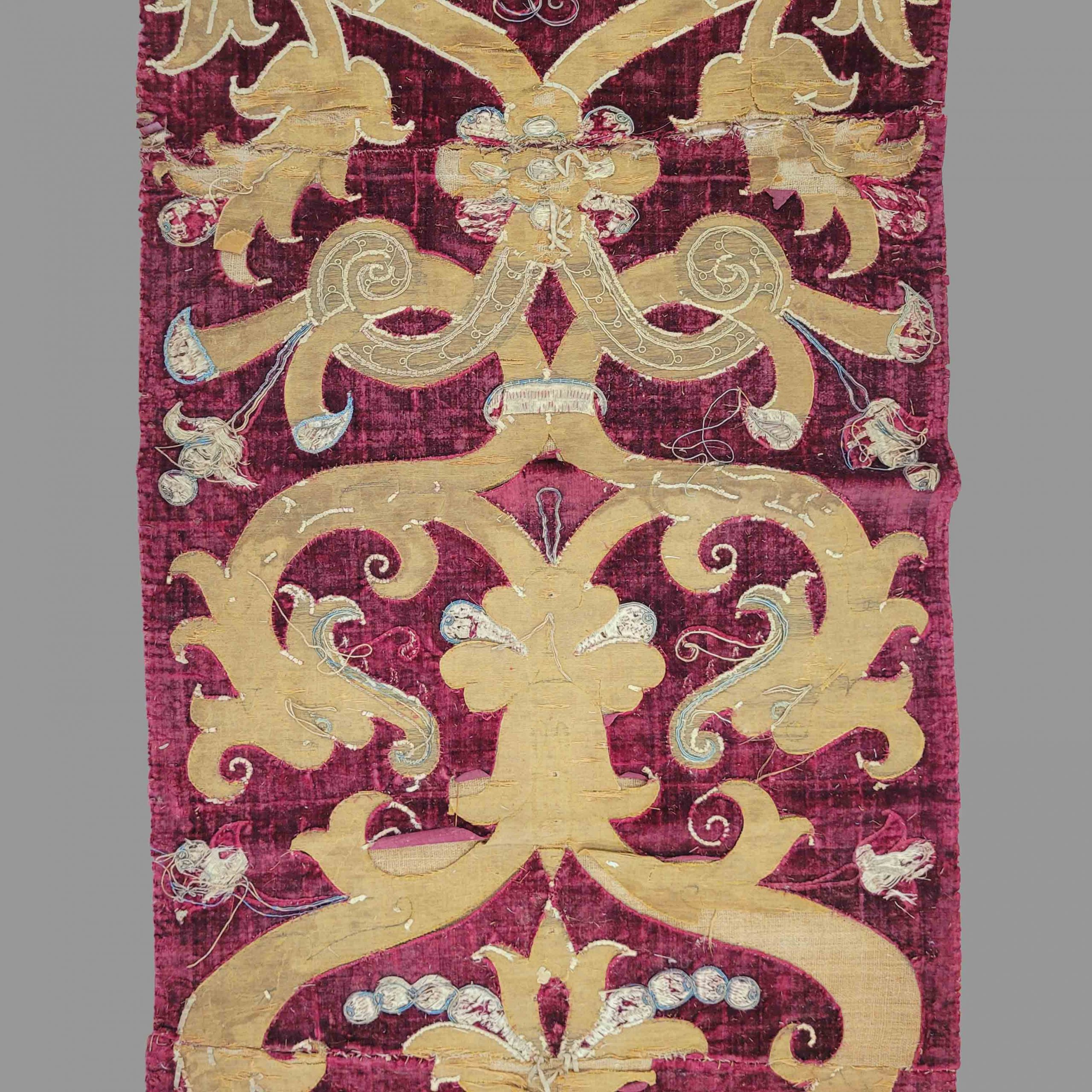 AntependiumSamt, Seide, Metallfäden, Italien 17. Jahrhundert, 53 x 330 cm (stark beschädigt)