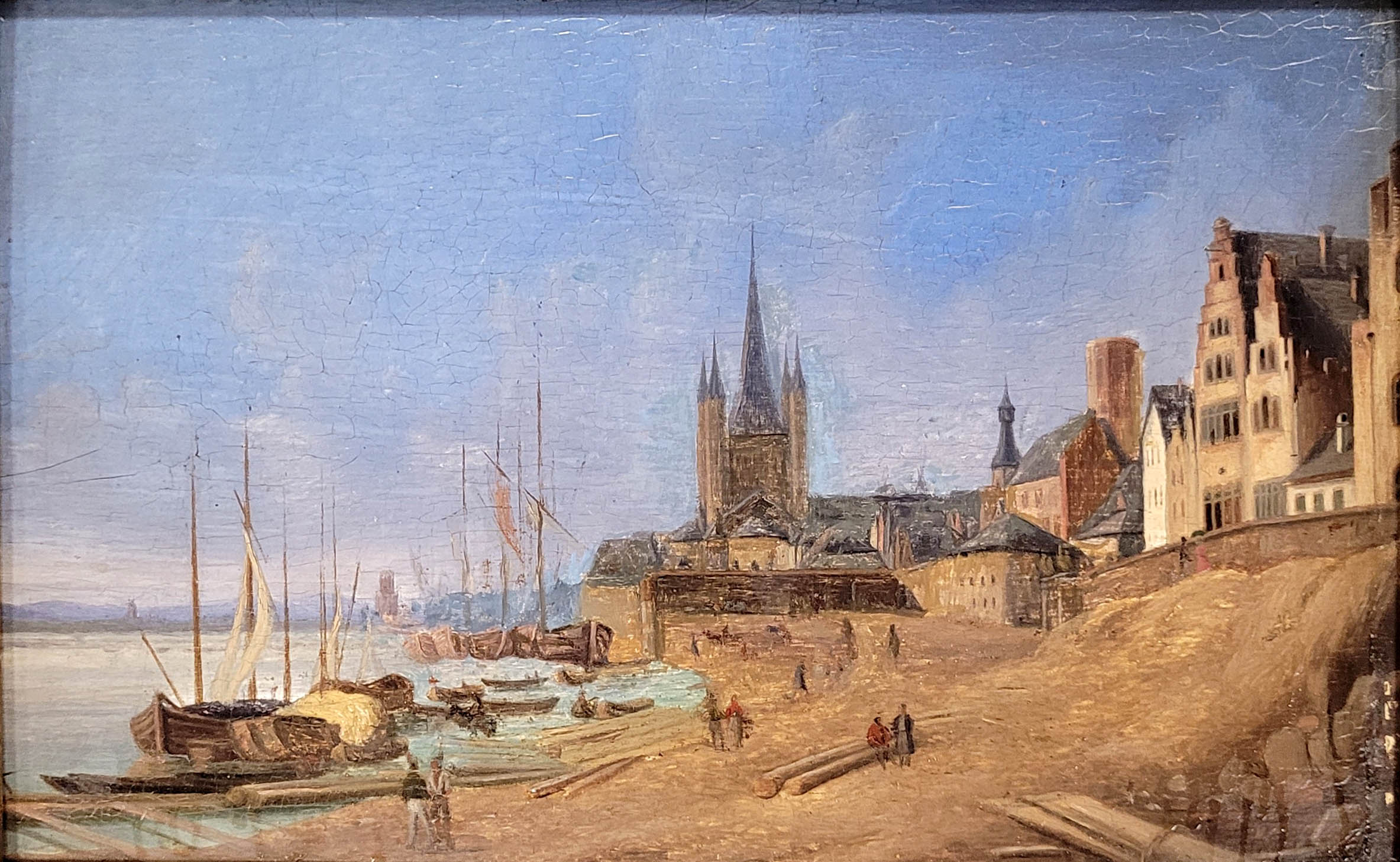 DEUTSCHER MEISTER (19. Jh.): Ansicht auf Groß St. Martin in KölnÖl auf Holz, 17 x 27 cm, Rahmen