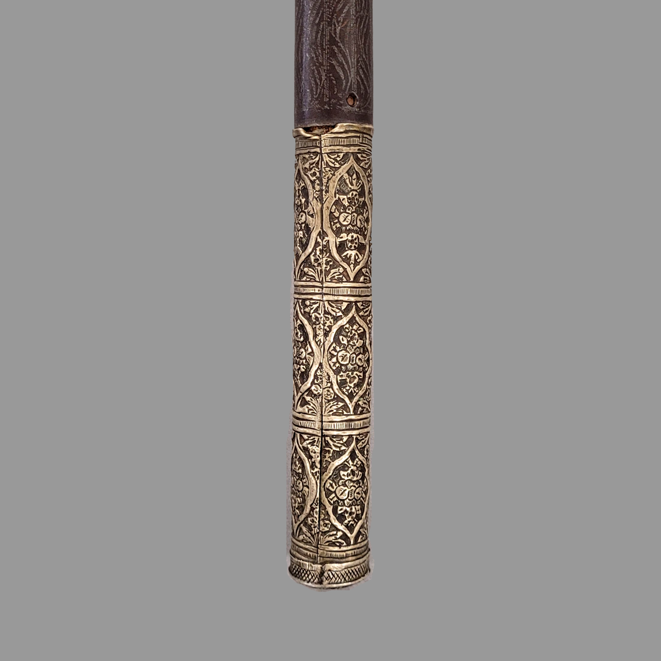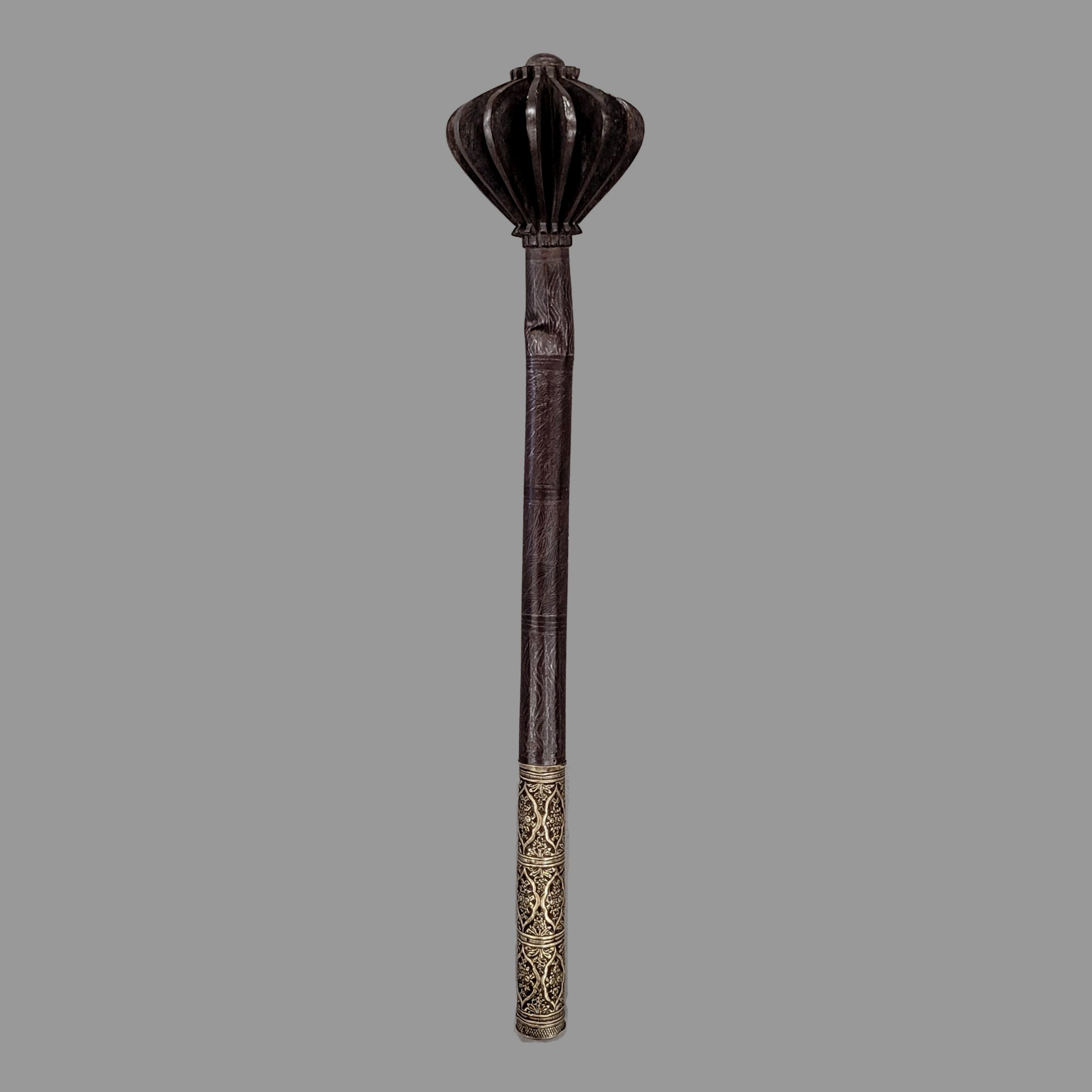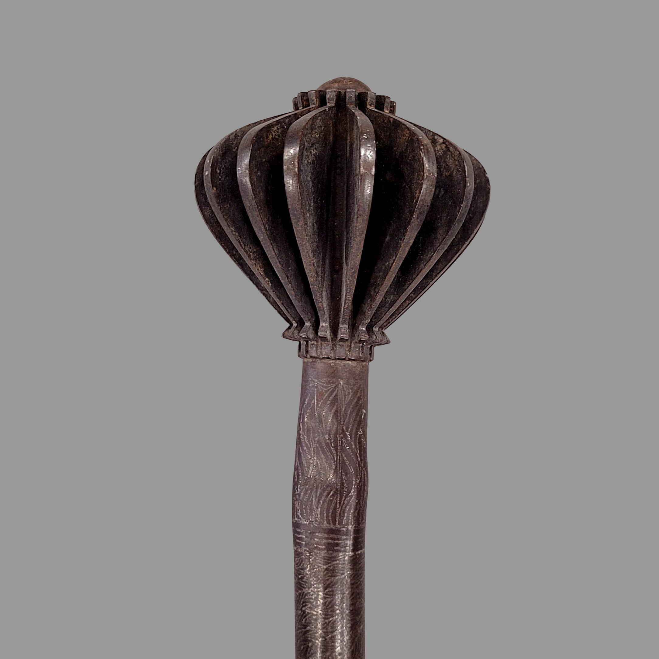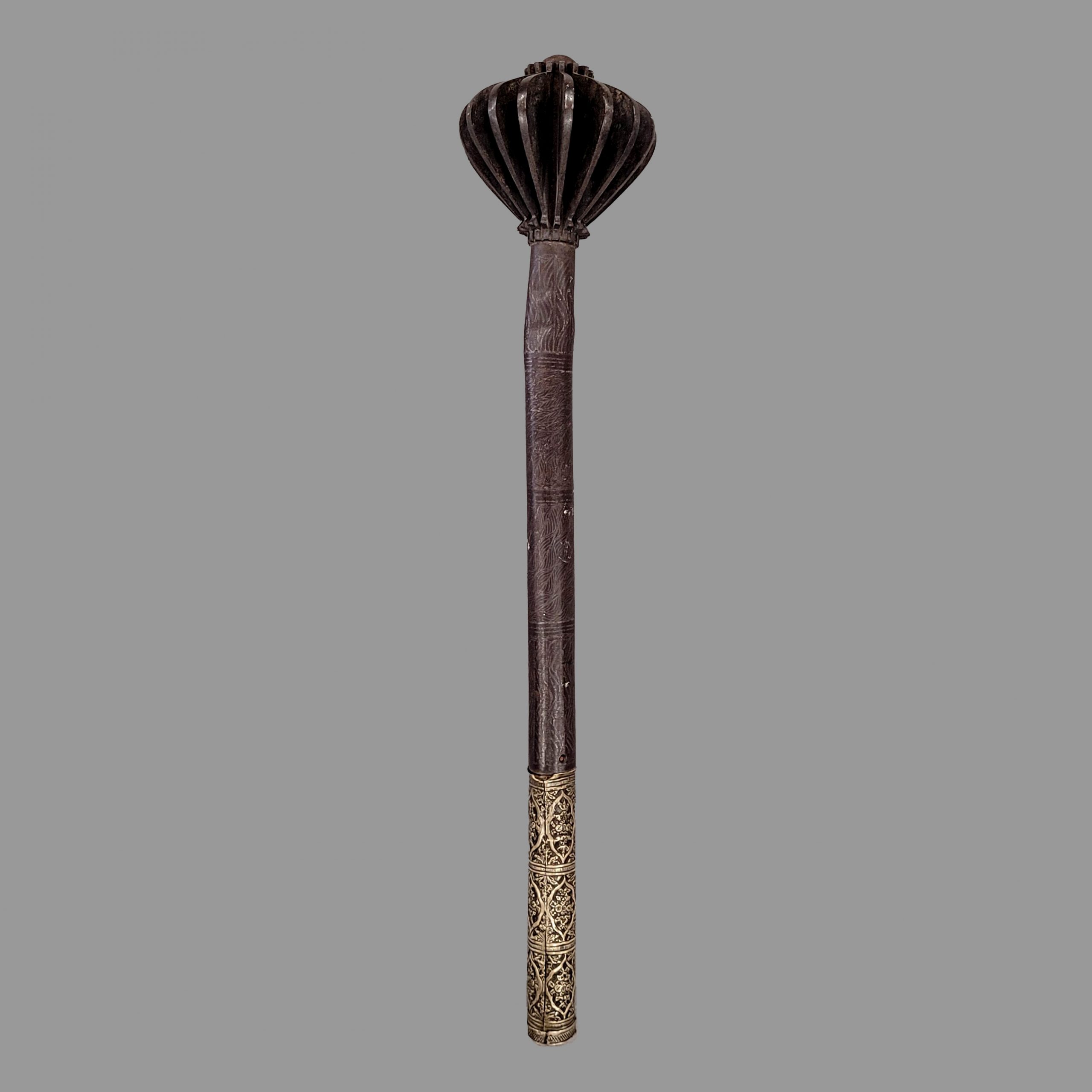 StreitkolbenEisen, Griff, silbertauschiert mit dekoriertem Silberblech, wohl Balkan 19. Jahrhundert, Länge 57 cm (Griff am oberen Ende leicht verbogen mit Schlagspuren)