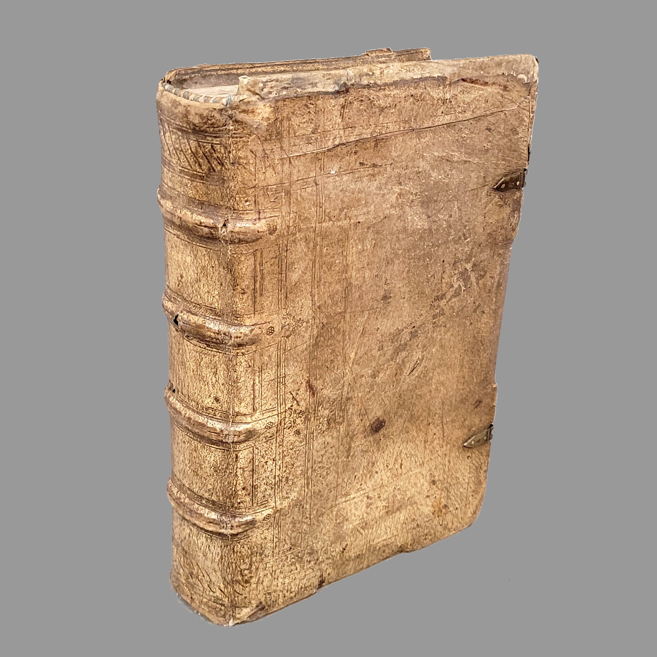 Frankfurt 1561 (geprägter Pergamenteinband über Holzdeckeln der Zeit [Metallschließen verloren] im hinteren Buchdeckel Abschrift des Anfangs eines [fiktiven?] Briefes von Soldan Balthasar an Otto Herzog von Sachsen)