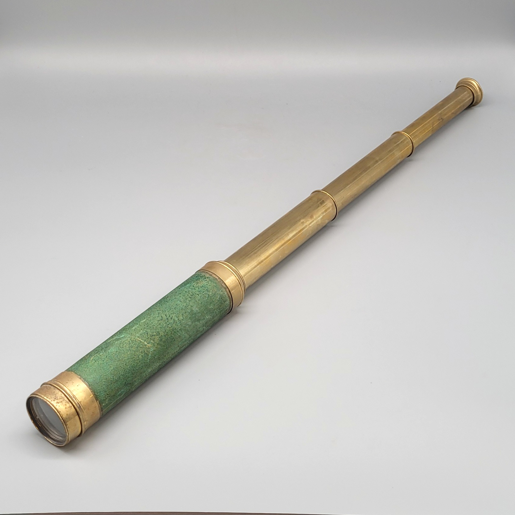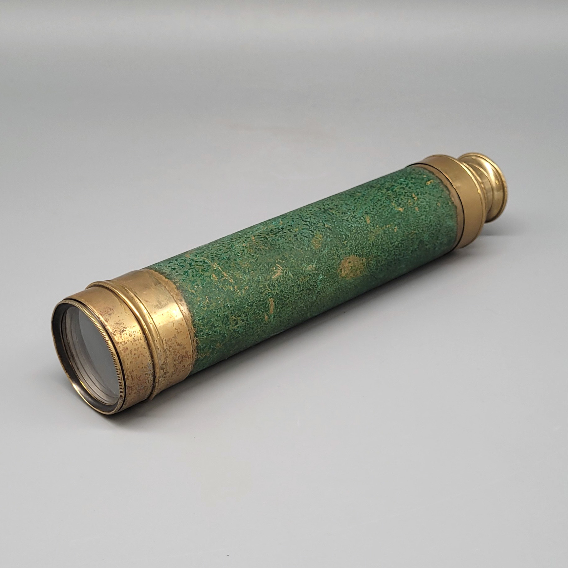 Teleskop-FernrohrMessing, Glaslinsen, grünes Leder(?), um 1900, Länge 59 cm