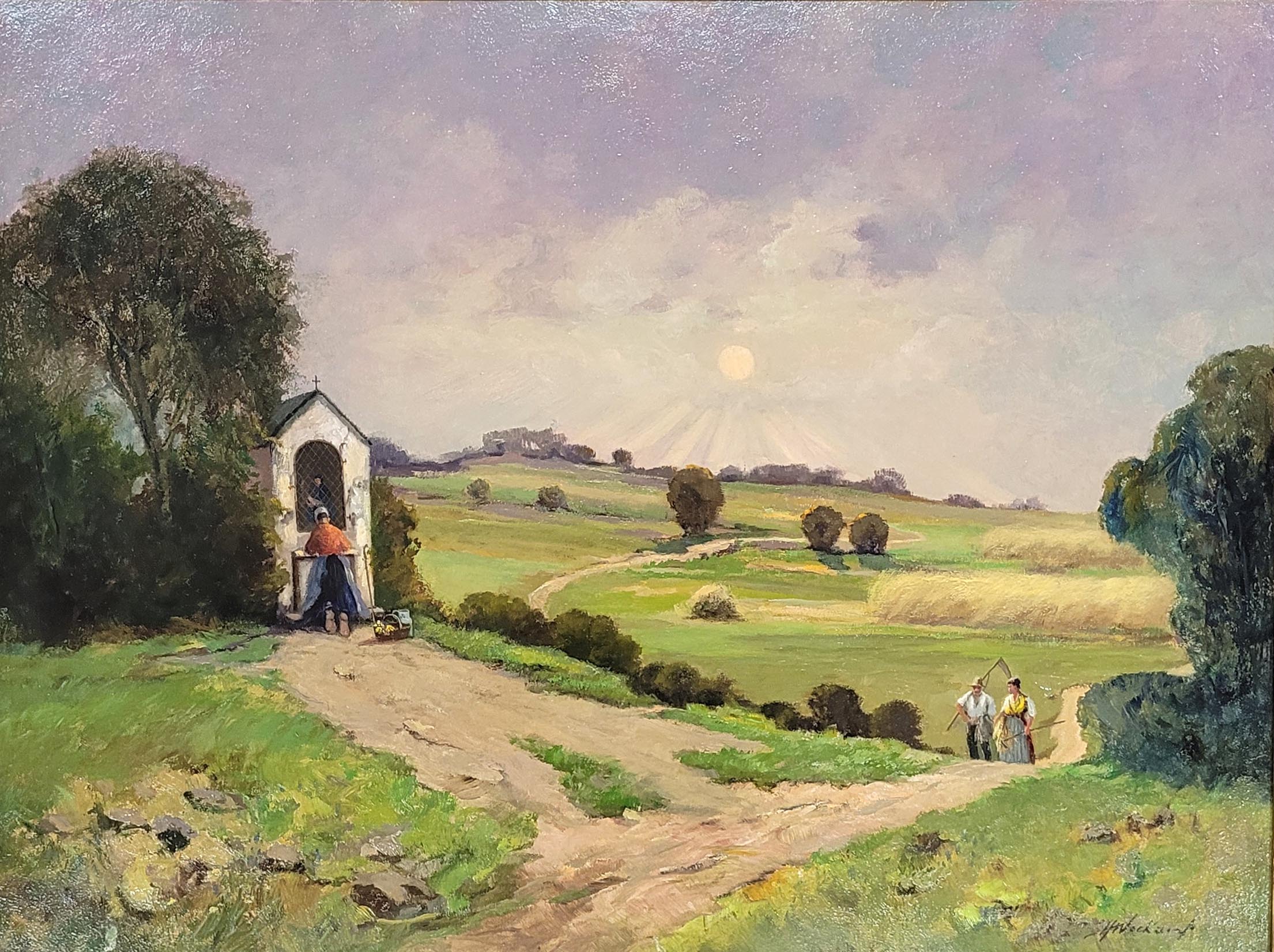 WECKAUF, Heinrich (1885-1963): Bildstock am FeldesrandÖl auf Malplatte, signiert unten rechts, 59 x 79 cm, Rahmen