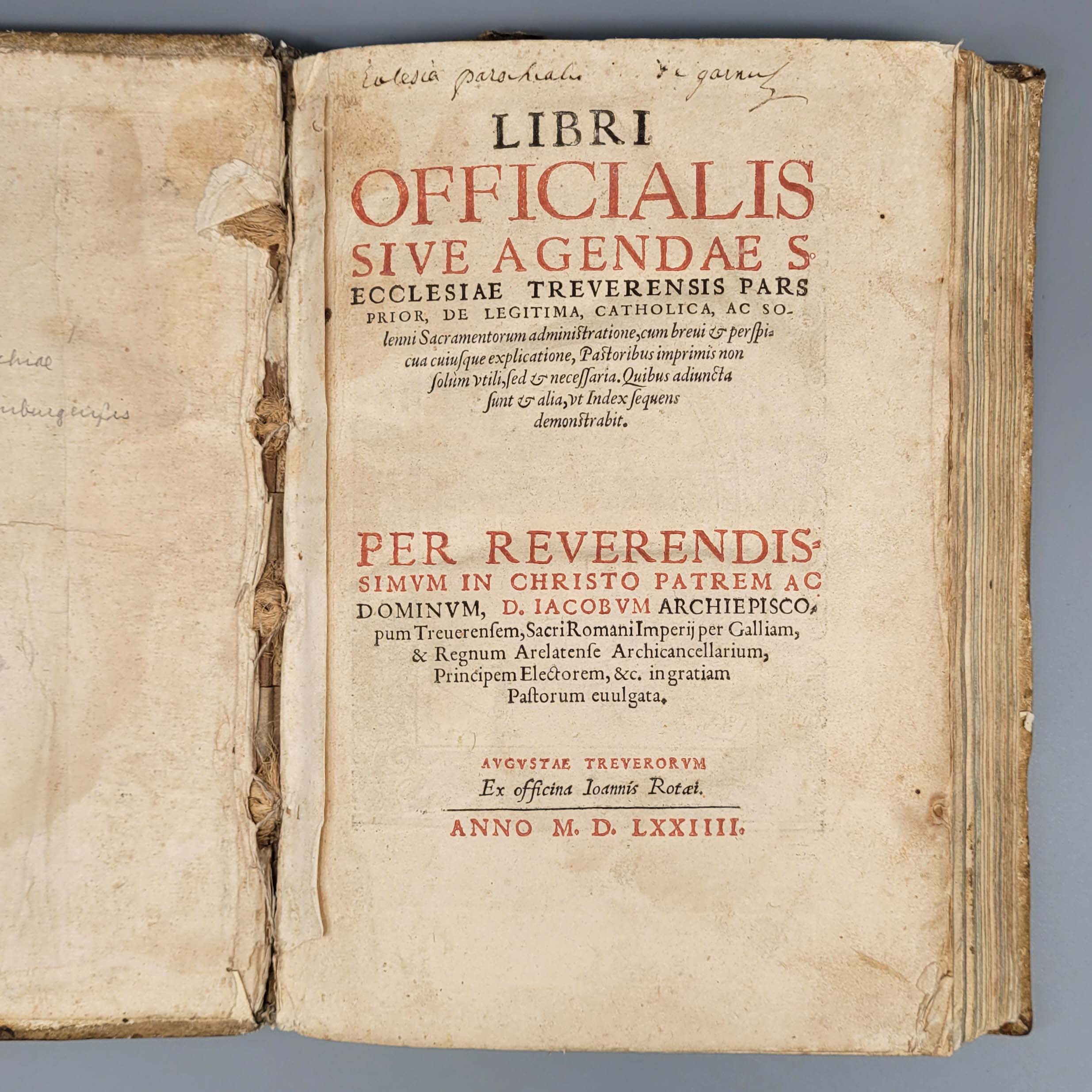 JAKOB III., Erzbischof von Trier: Libri officialis sive agendae S. ecclesiae Treverensis pars prior, de legitima, catholica, ac solenni sacramentorum administratione…