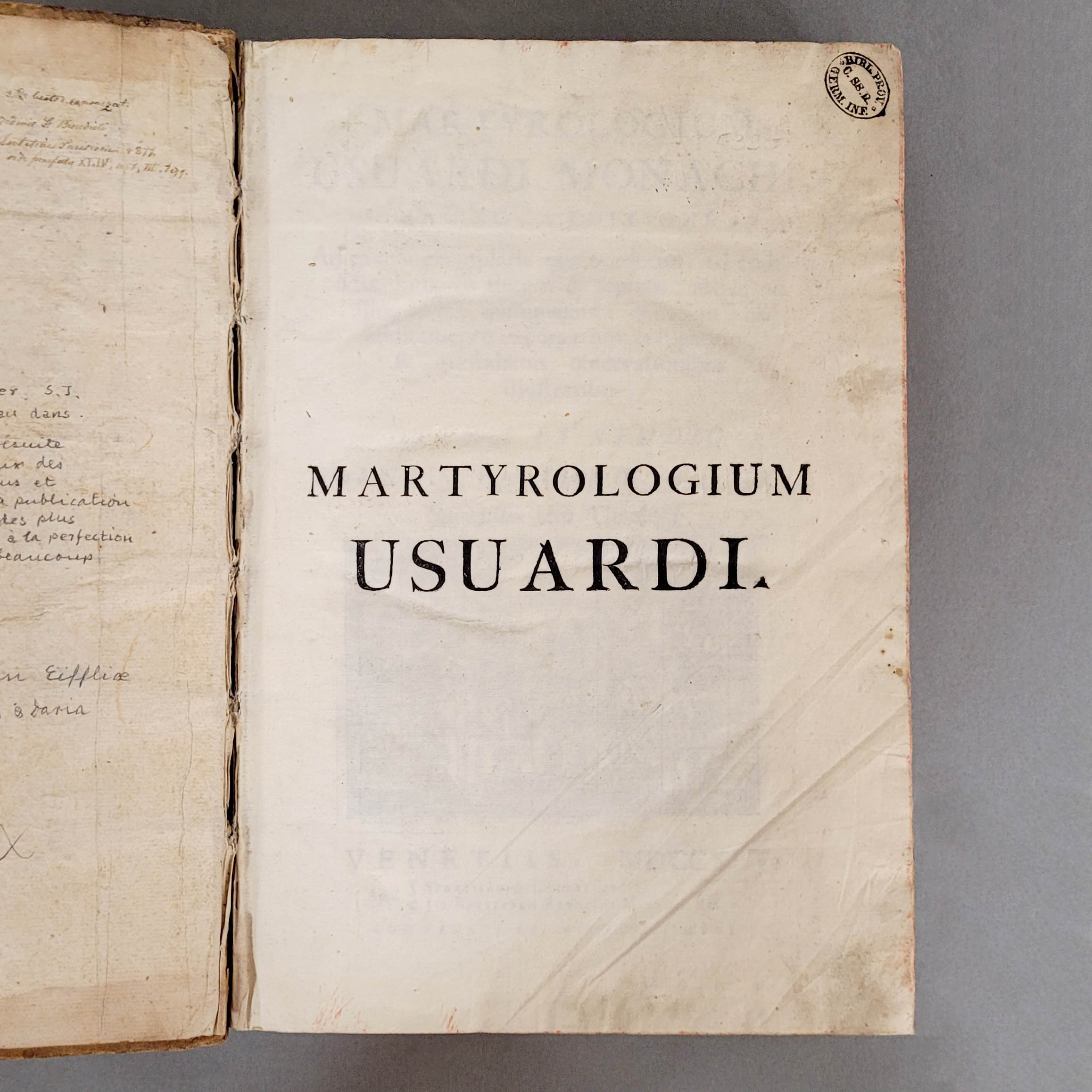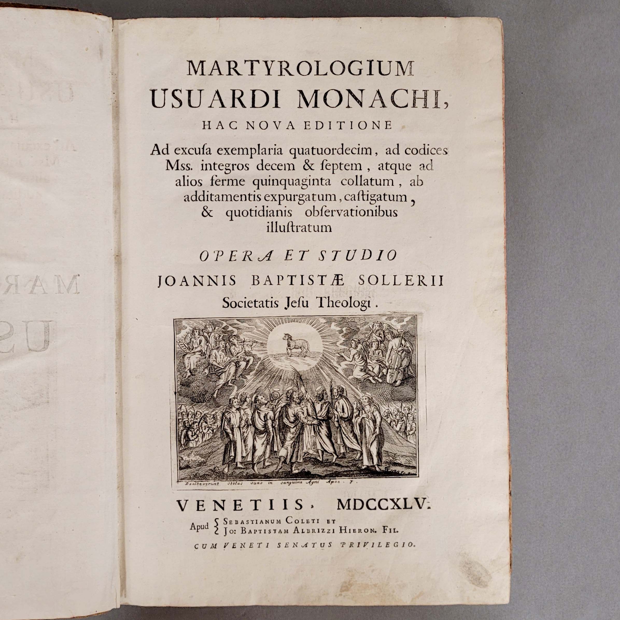 SOLLER, Johann Baptist: Martyrologium Usuardi monachiVenedig (Coleti / Albrizzi) 1745 (Ledereinband der Zeit)Wir weisen darauf hin, dass das Buch nicht kollationiert ist