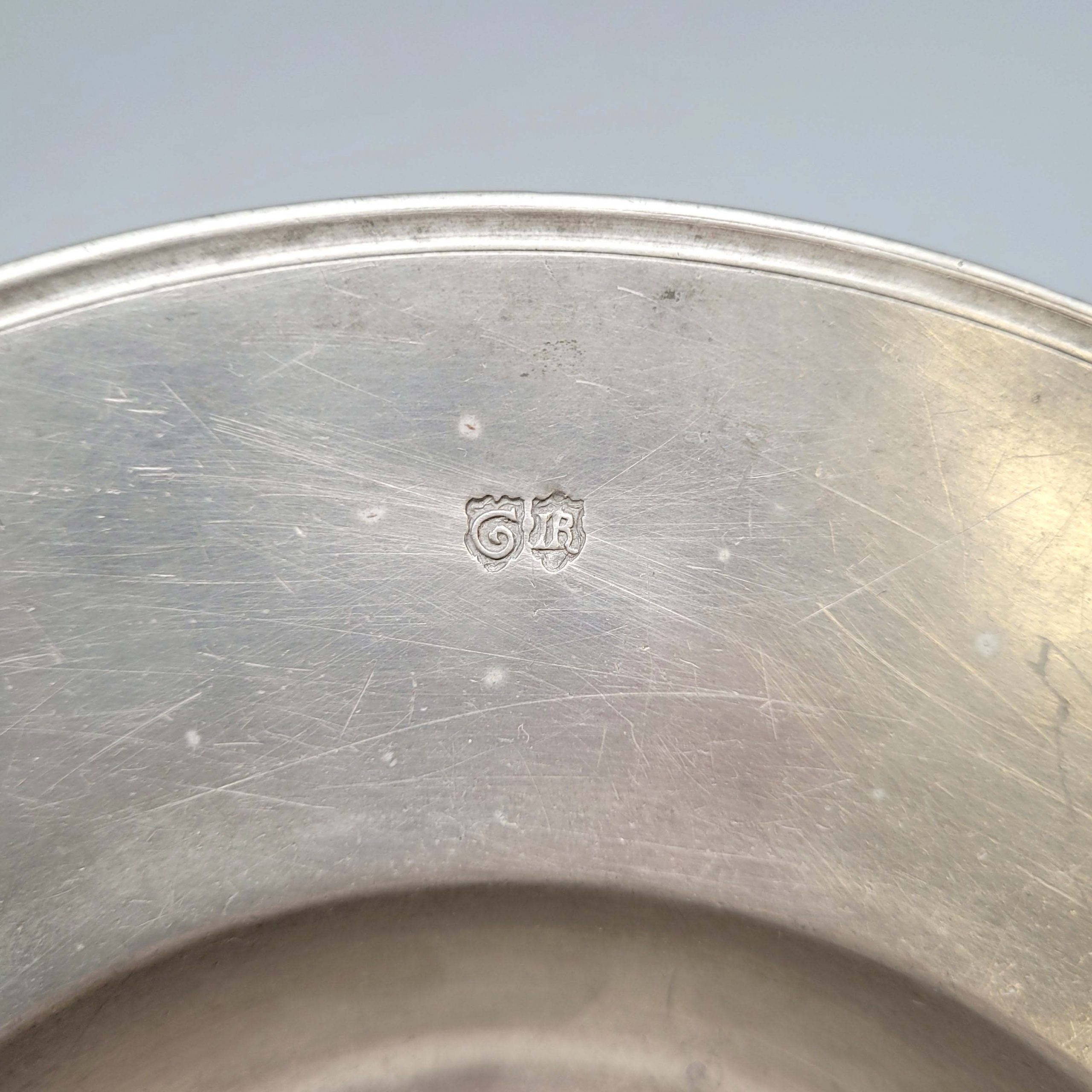 Zinn, graviertes Monogramm mit Hausmarke, Stadtmarke St. Gallen, Meistermarke „IR“ (= Johannes Reutiner [1636-1699]), Durchmesser 27,8 cm